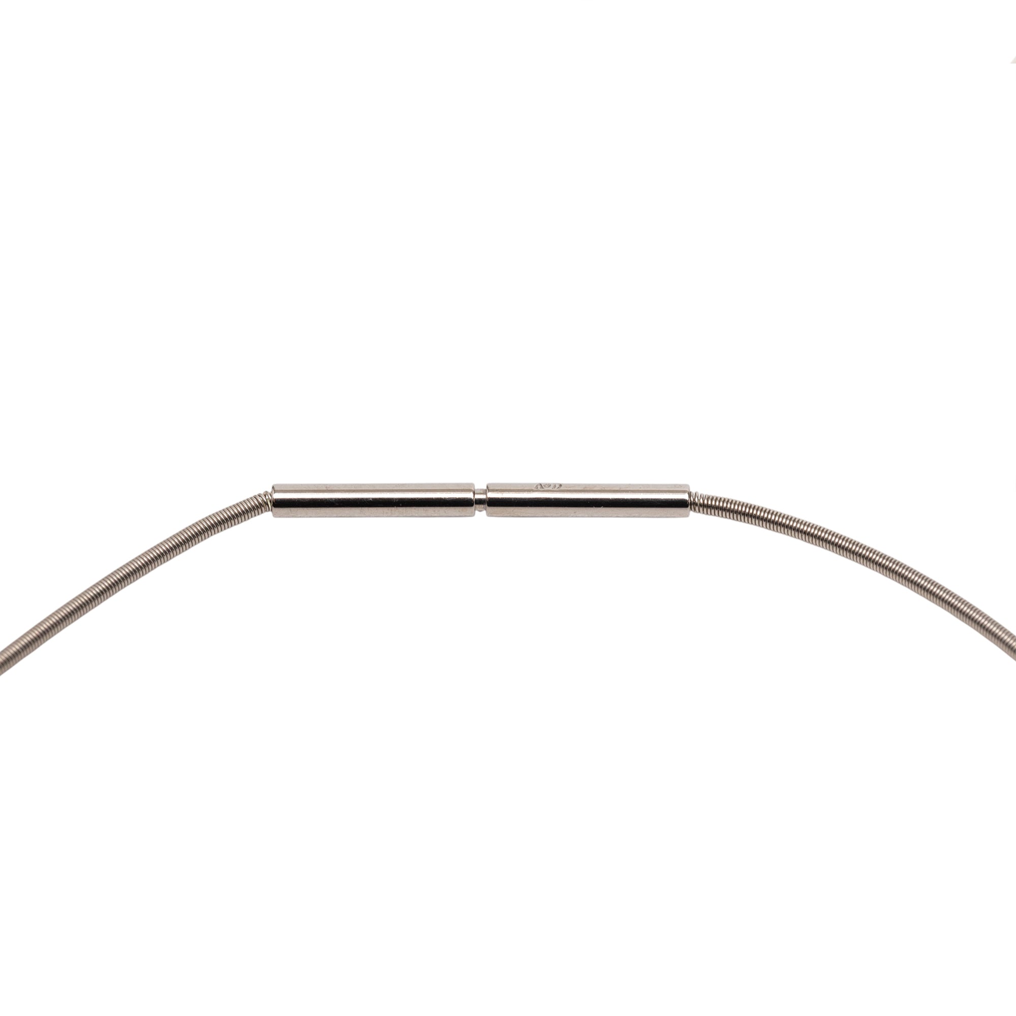 This necklace features a pendant with enamel detail, a palladium plated snake chain, and a slide-lock closure. Retail Price: 595.00