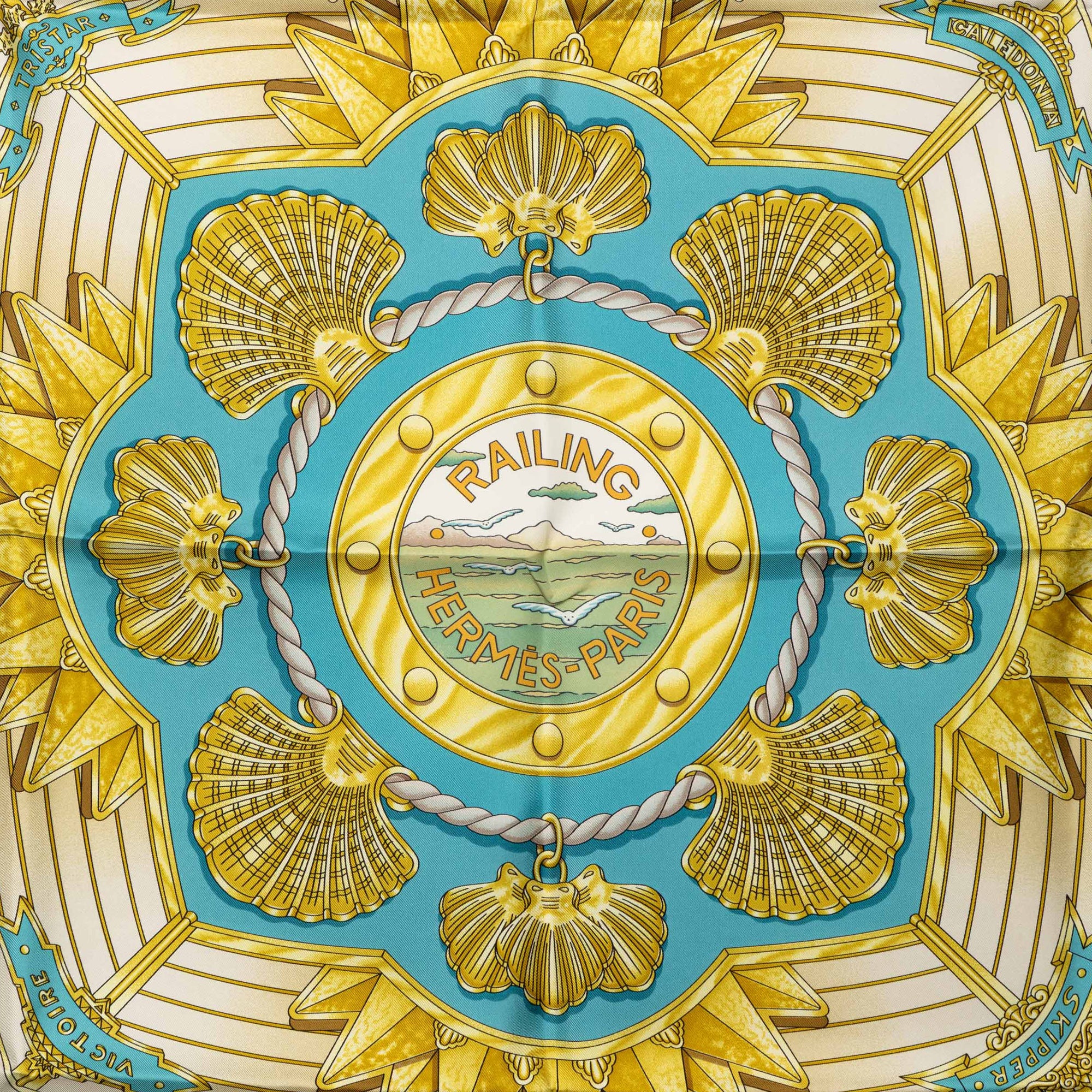 The Railing scarf features a print on 100% silk. Inclusion: box. Retail Price: 550.00