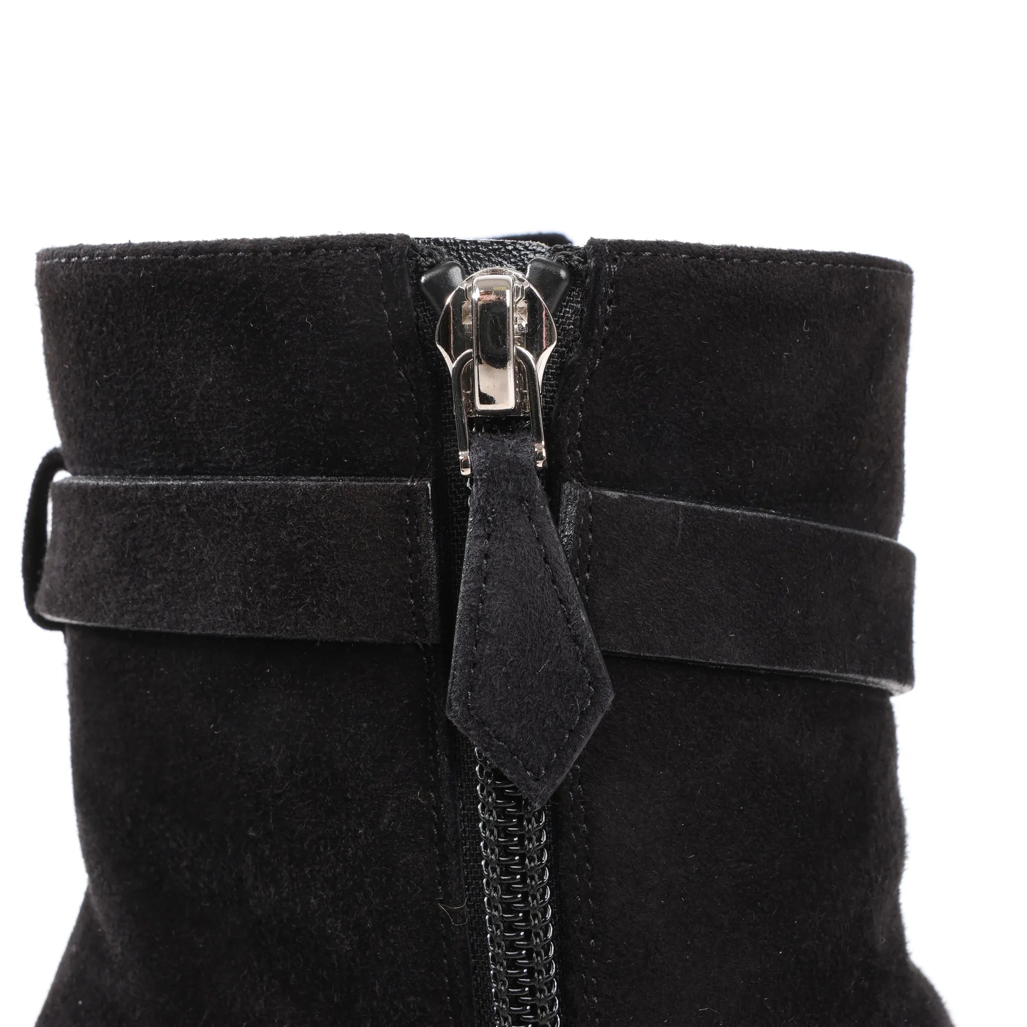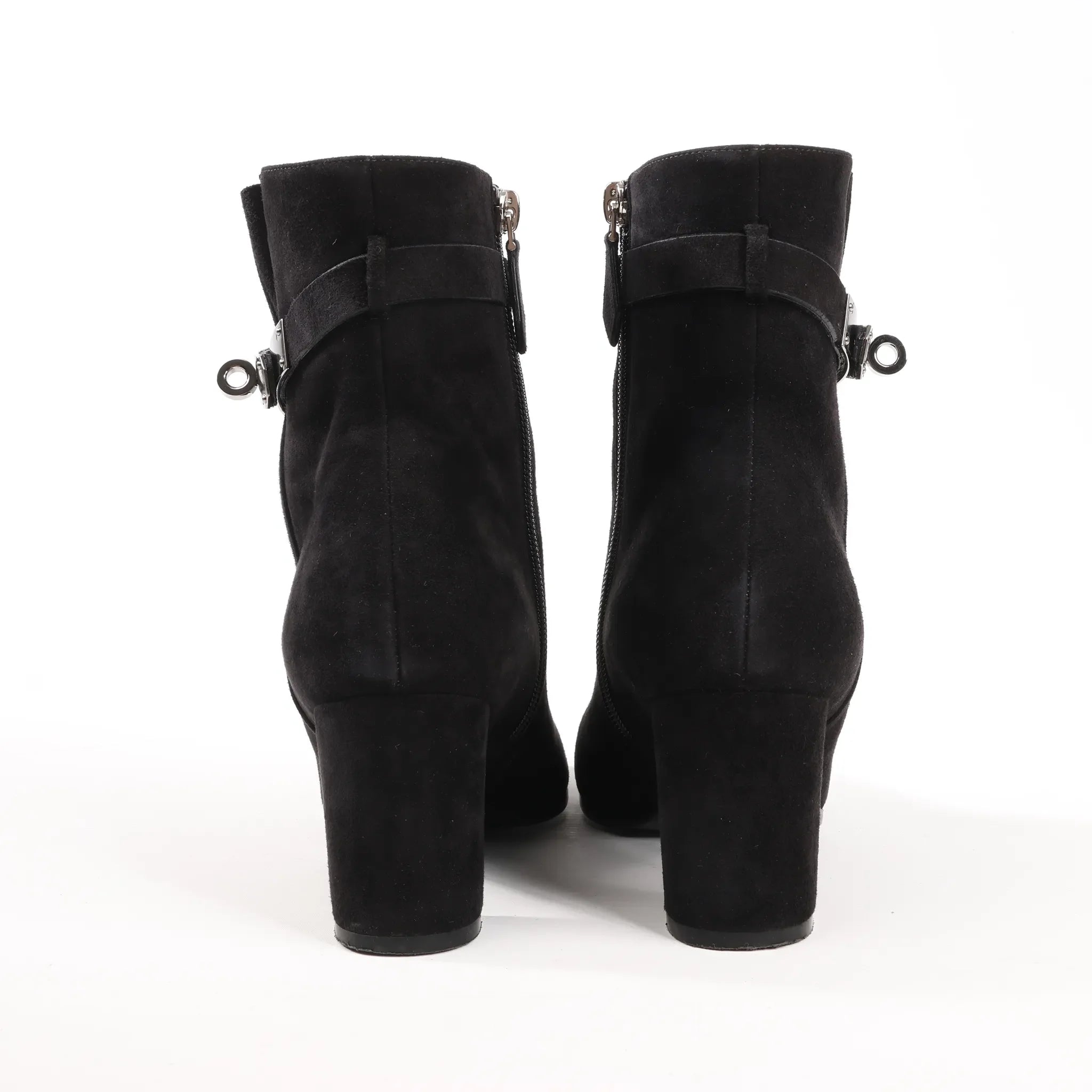 Hermes Saint Germain Kelly Metal Fittings Suede Ankle Boots in Black, Size 37 EU