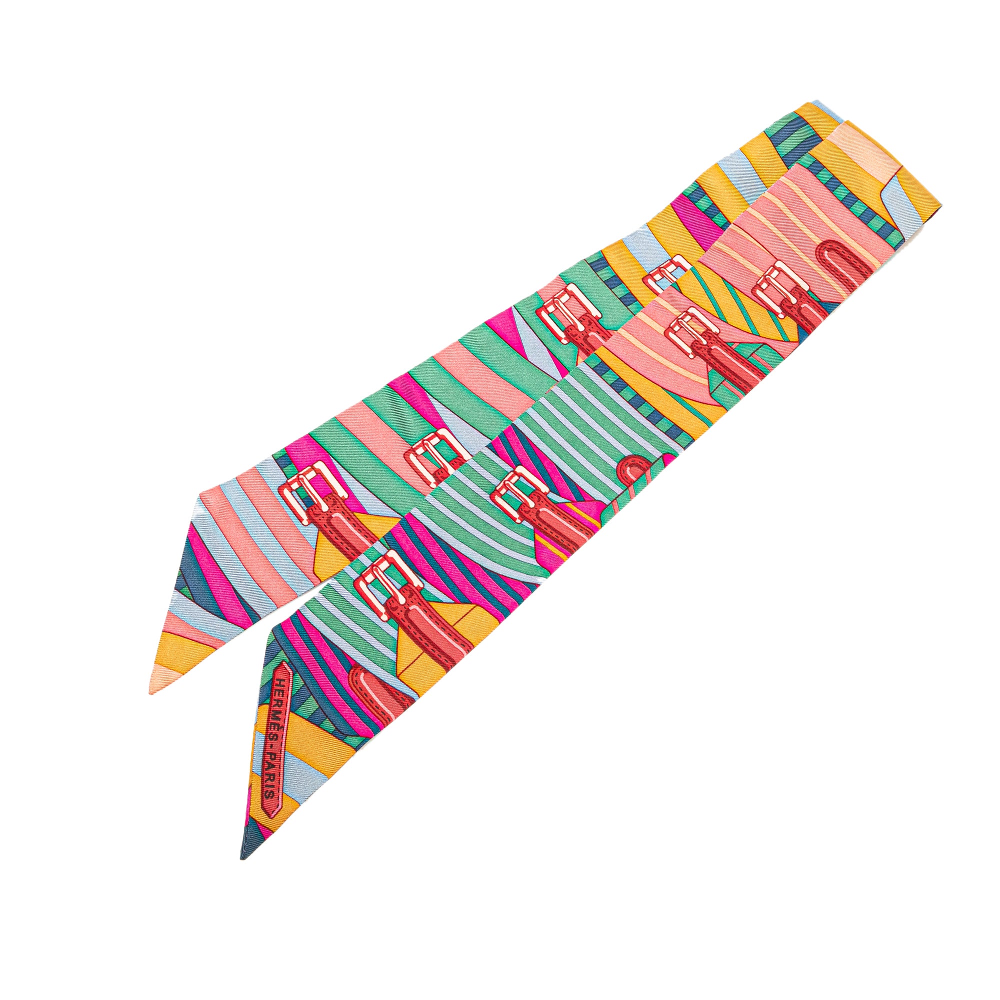 The Sangles twilly scarf features a print on 100% silk. Inclusion: box. Retail Price: 285.00