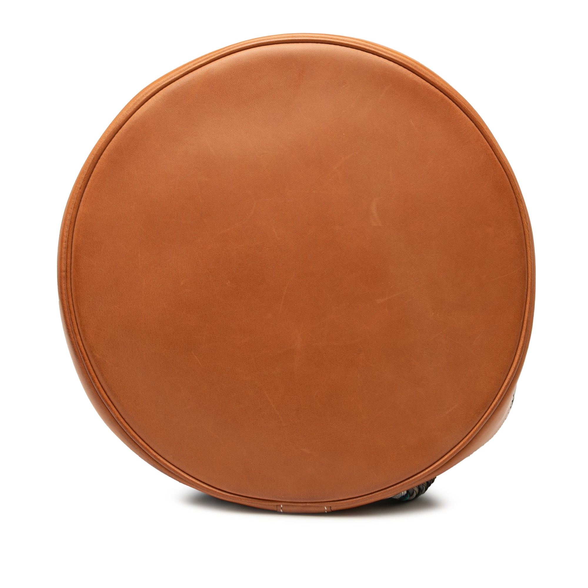 The Soie Cool features a printed silk body with leather trim, braided back straps, and an open top with drawstring closure. Retail Price: 1890.00