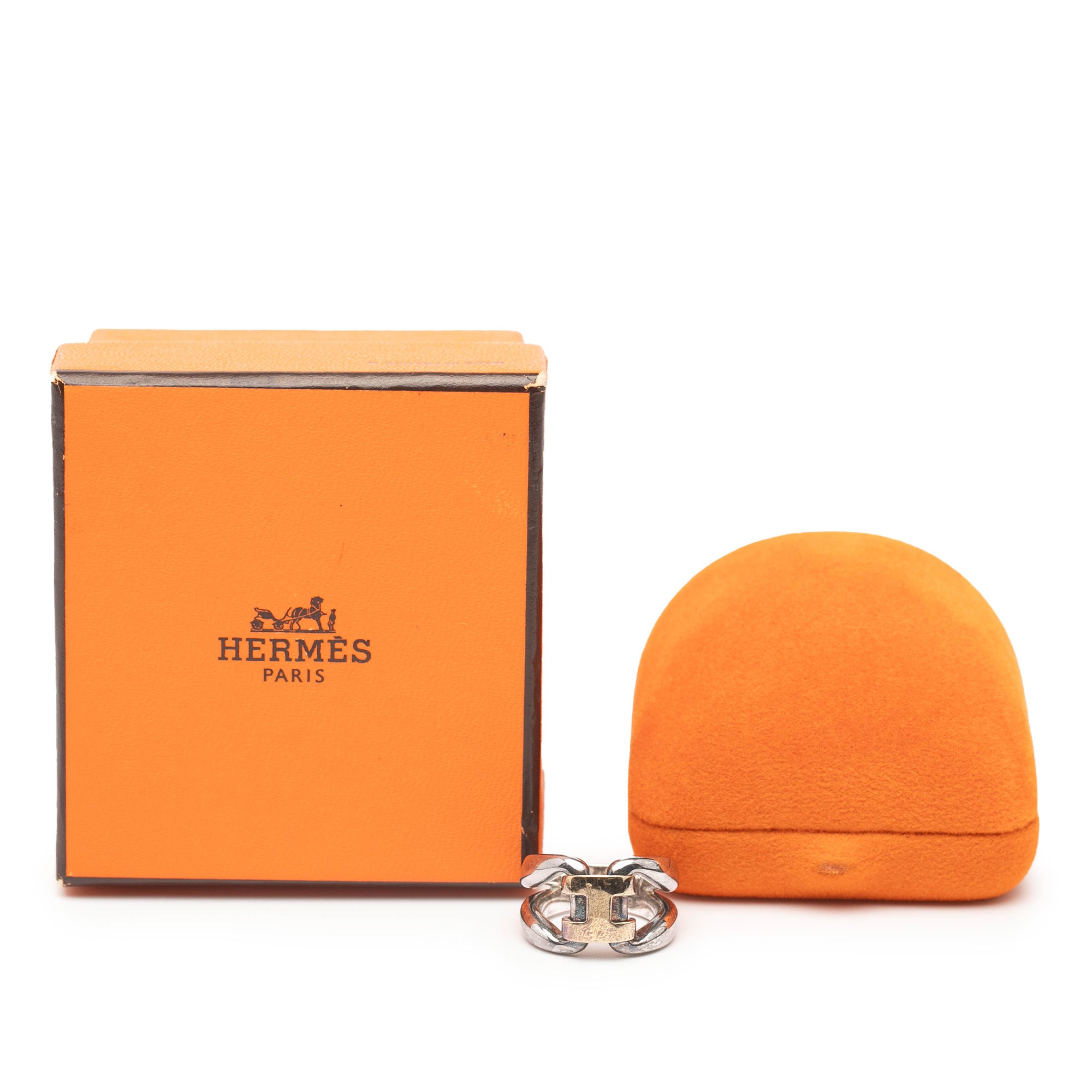 Hermès Sterling Silver and 18K Yellow Gold History Ring