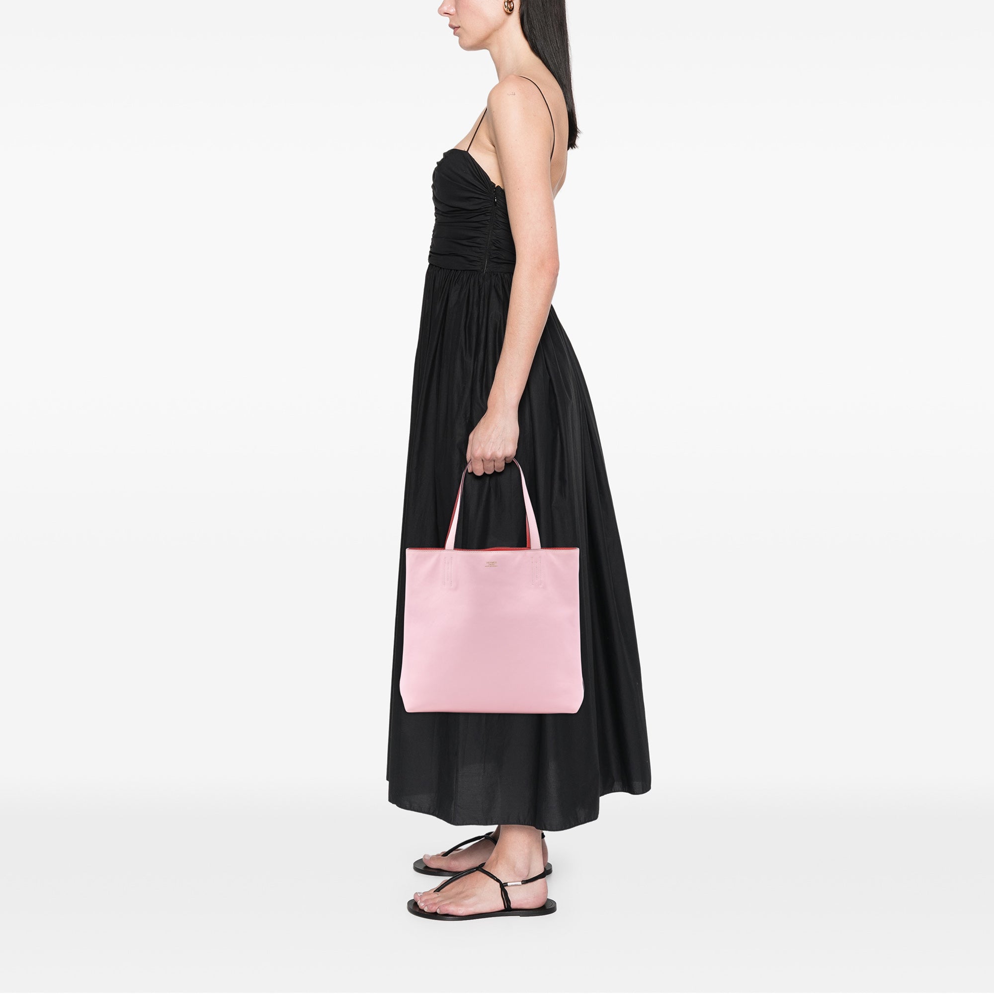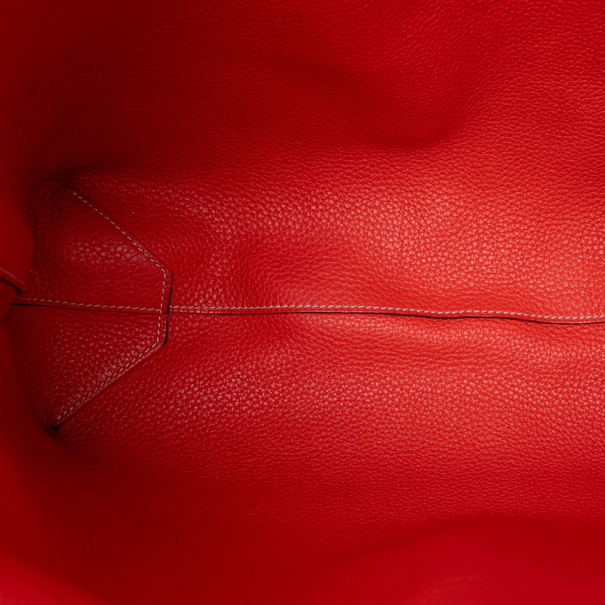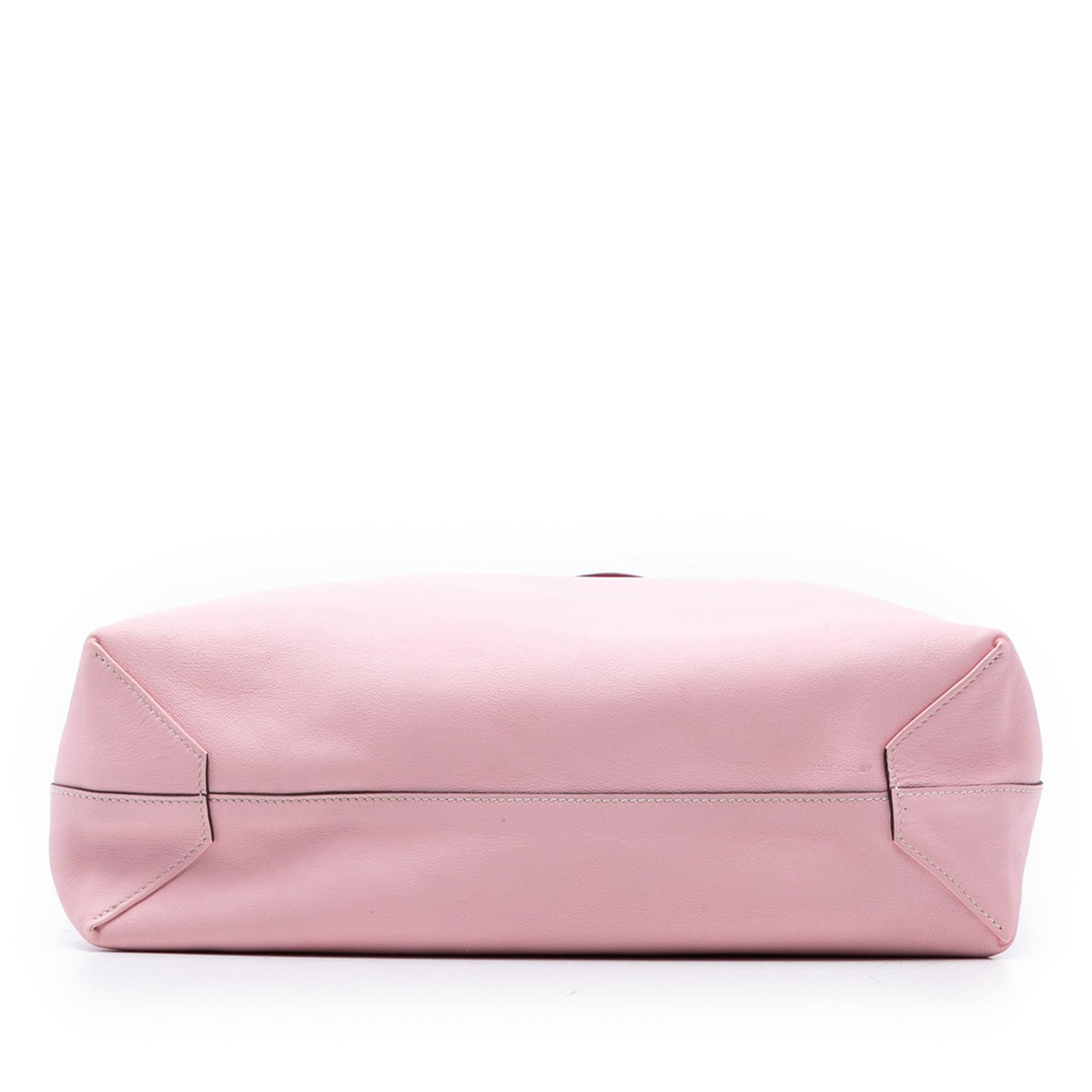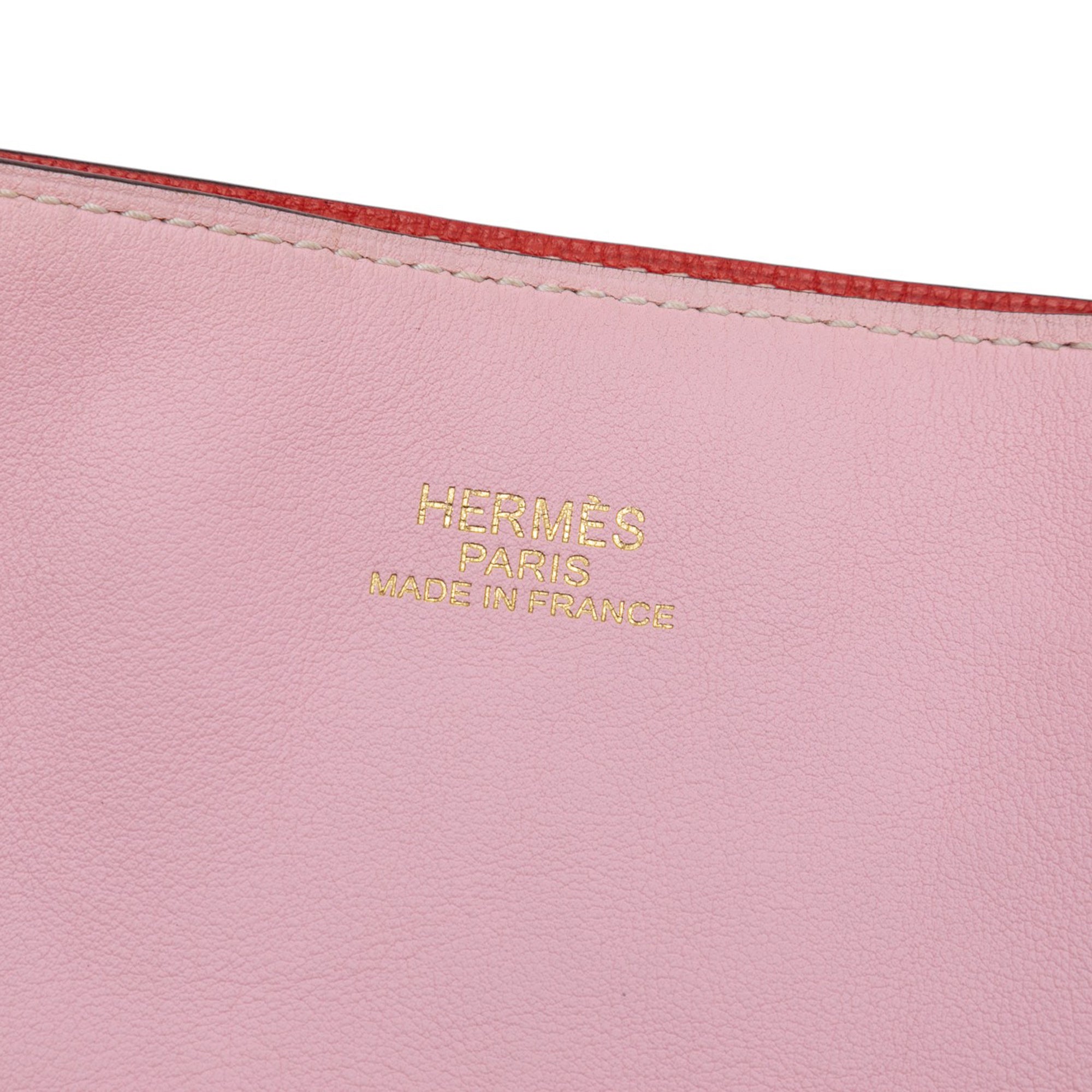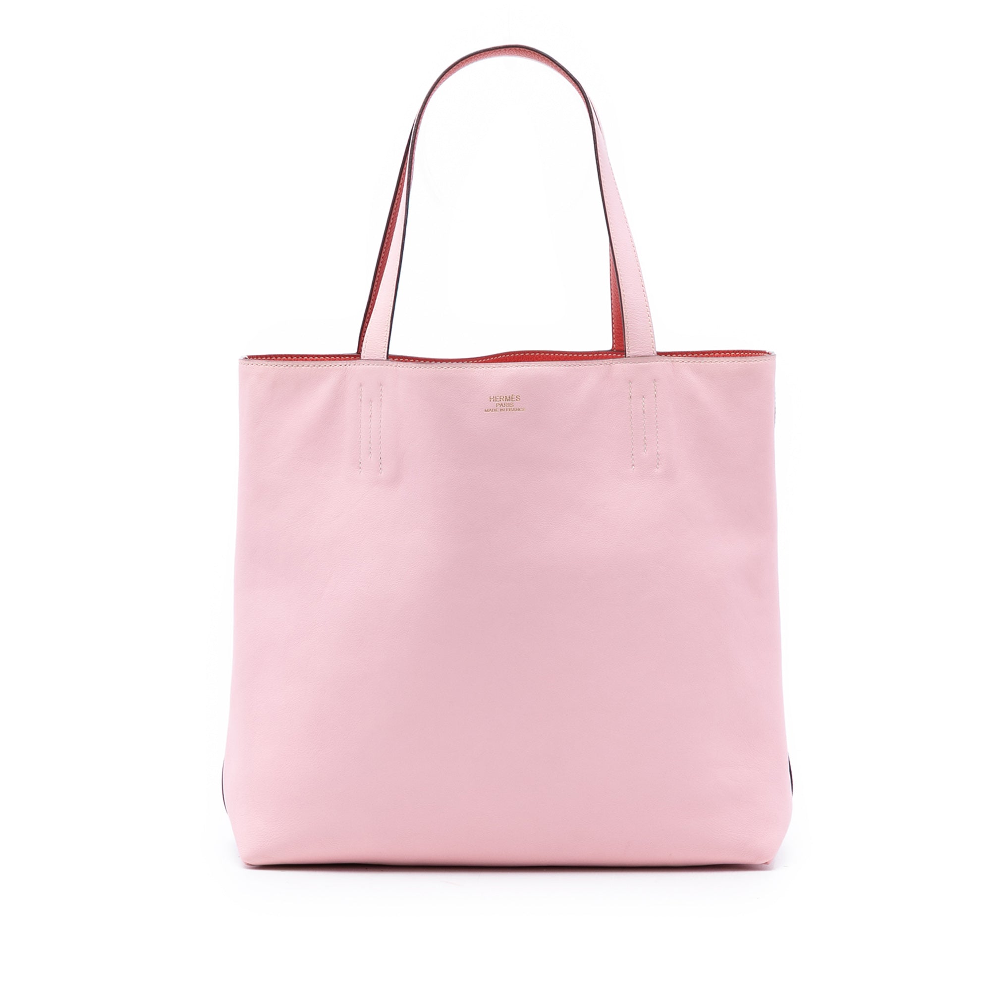 This Double Sens features a reversible Clemence leather body in Rose Sakura and Rouge Pivoine colors, flat leather straps, and an open top. Retail Price: 3800.00