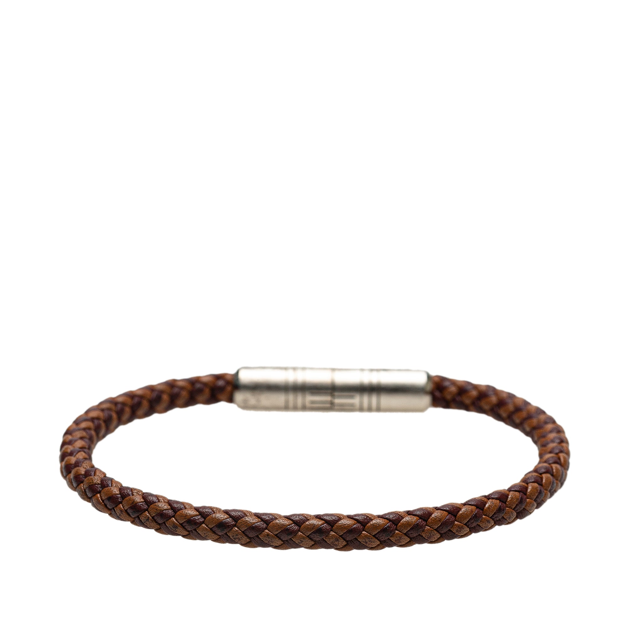 This bracelet features a braided leather body and a silver-tone clasp closure. Retail Price: 410.00