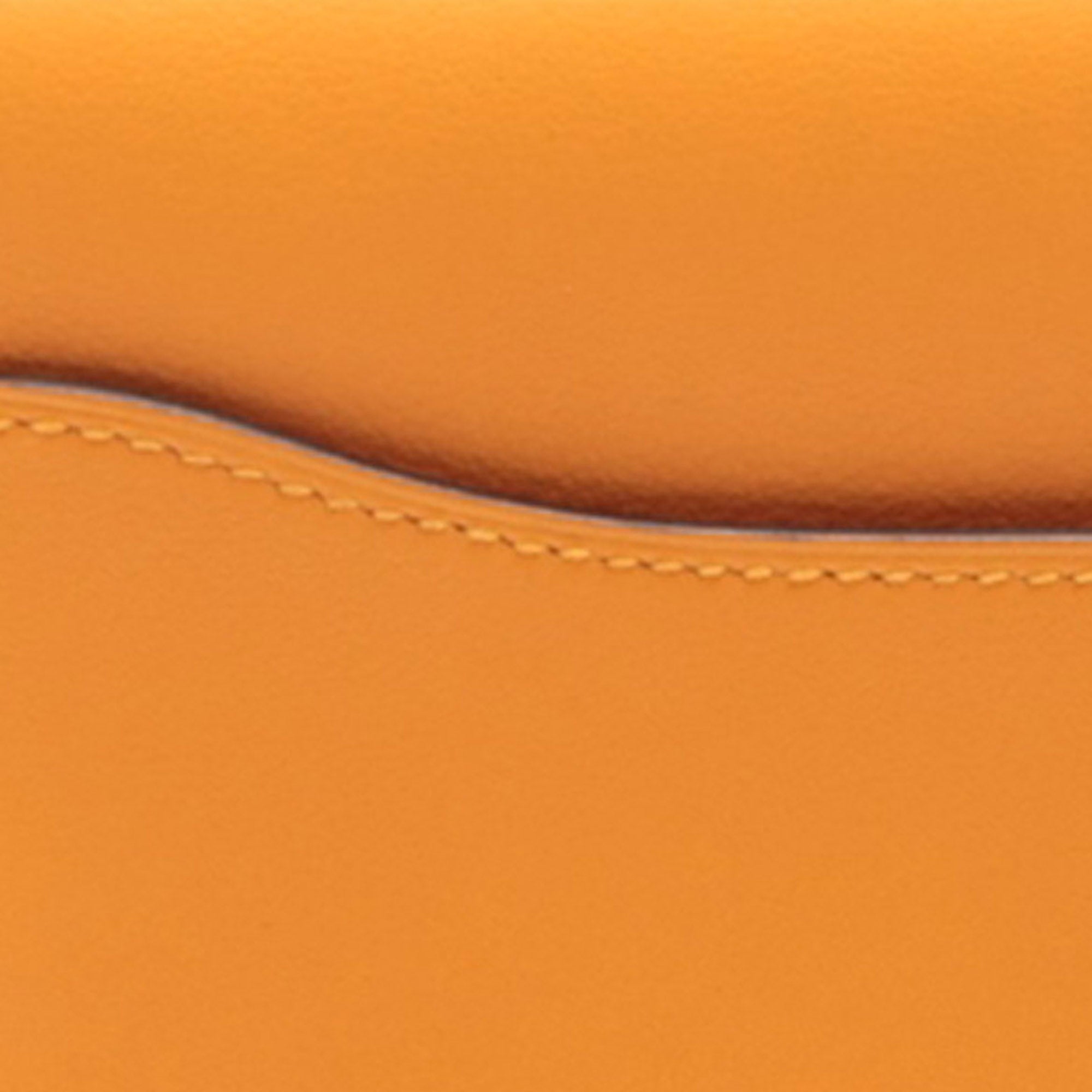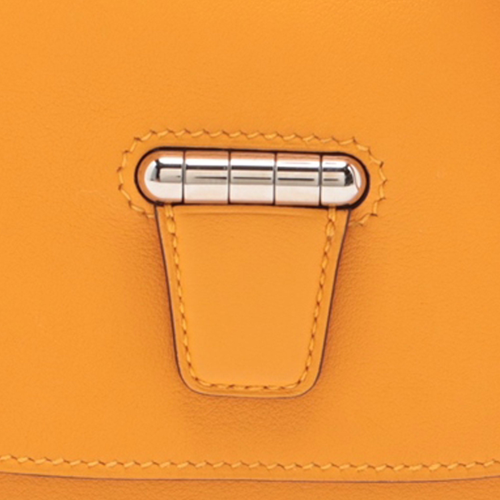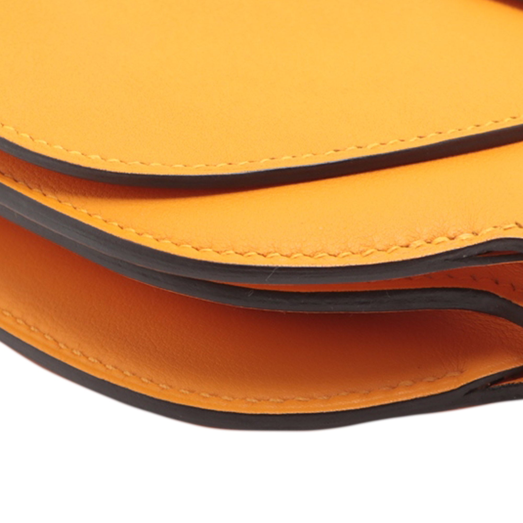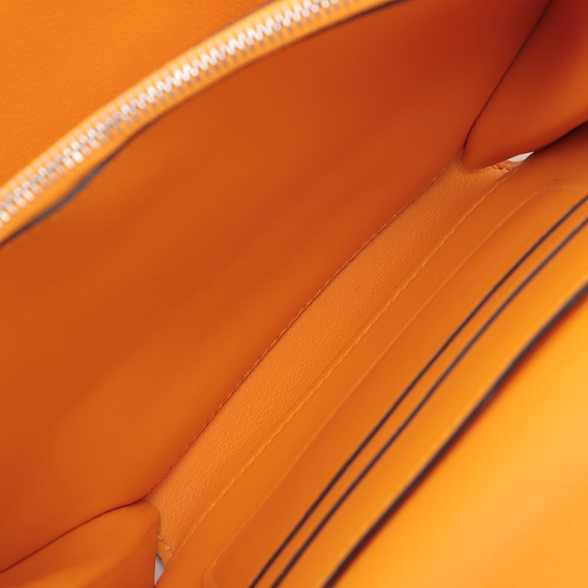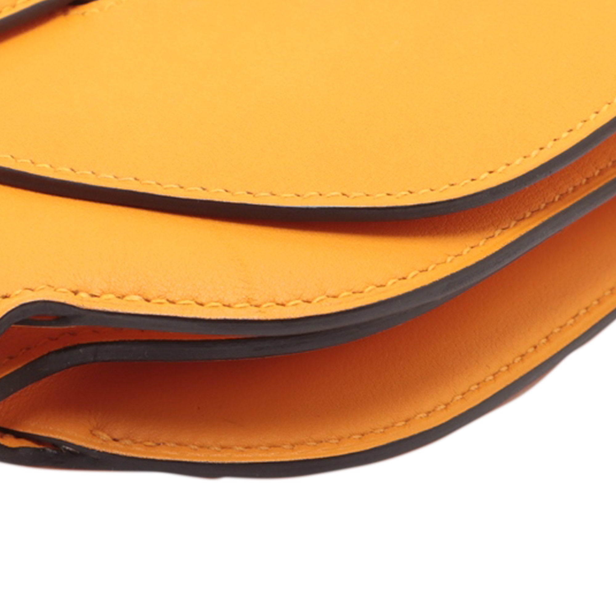 This Mini Convoyeur features a leather body in Moutarde color, a flat leather shoulder strap, a front flap with strap closure with metal hardware, interior zip and open compartments, and interior slip pockets. Inclusion: Dust bag, box. Retail Price: 3875.00