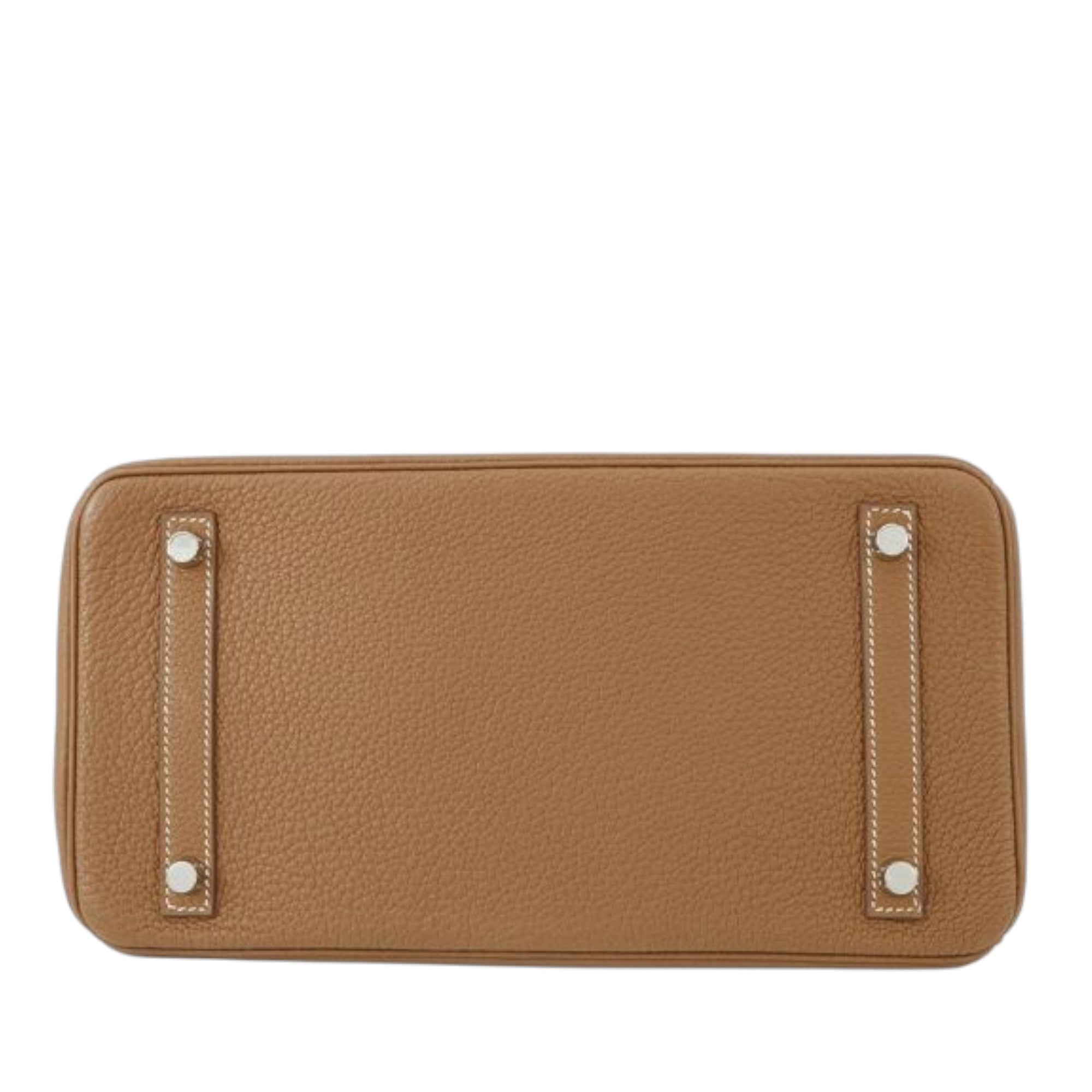 This Birkin 30 features a Togo leather body in Gold color, rolled leather handles, a front flap with a metal lock closure, and interior zip and slip pockets. Inclusion: Dust bag. Retail Price: 28000.00