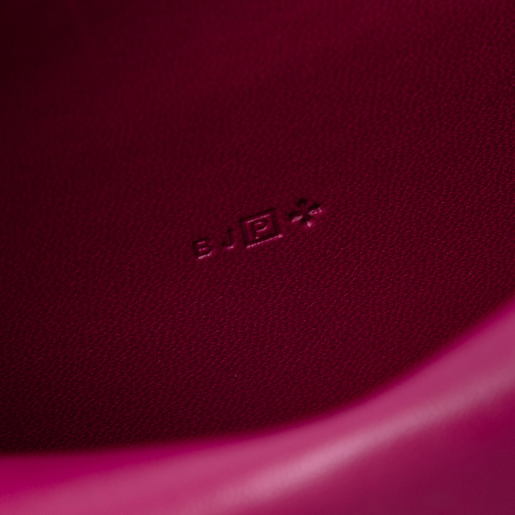 This Dogon Duo wallet features a Togo leather body in Rose Pourpre color, a strap with clou de selle closure, interior slip pockets, an a removable zip pouch. Inclusion: box. Retail Price: 1900.00