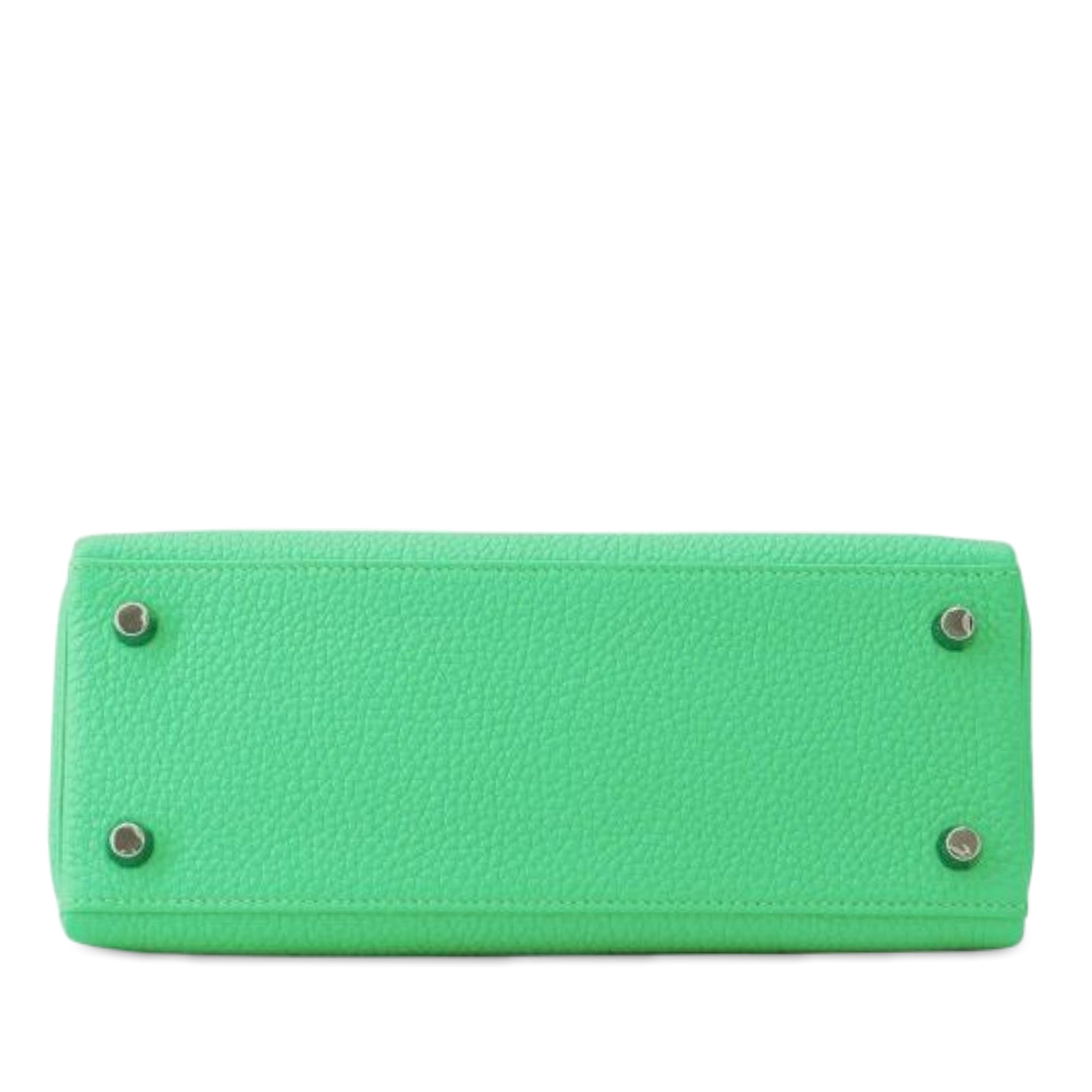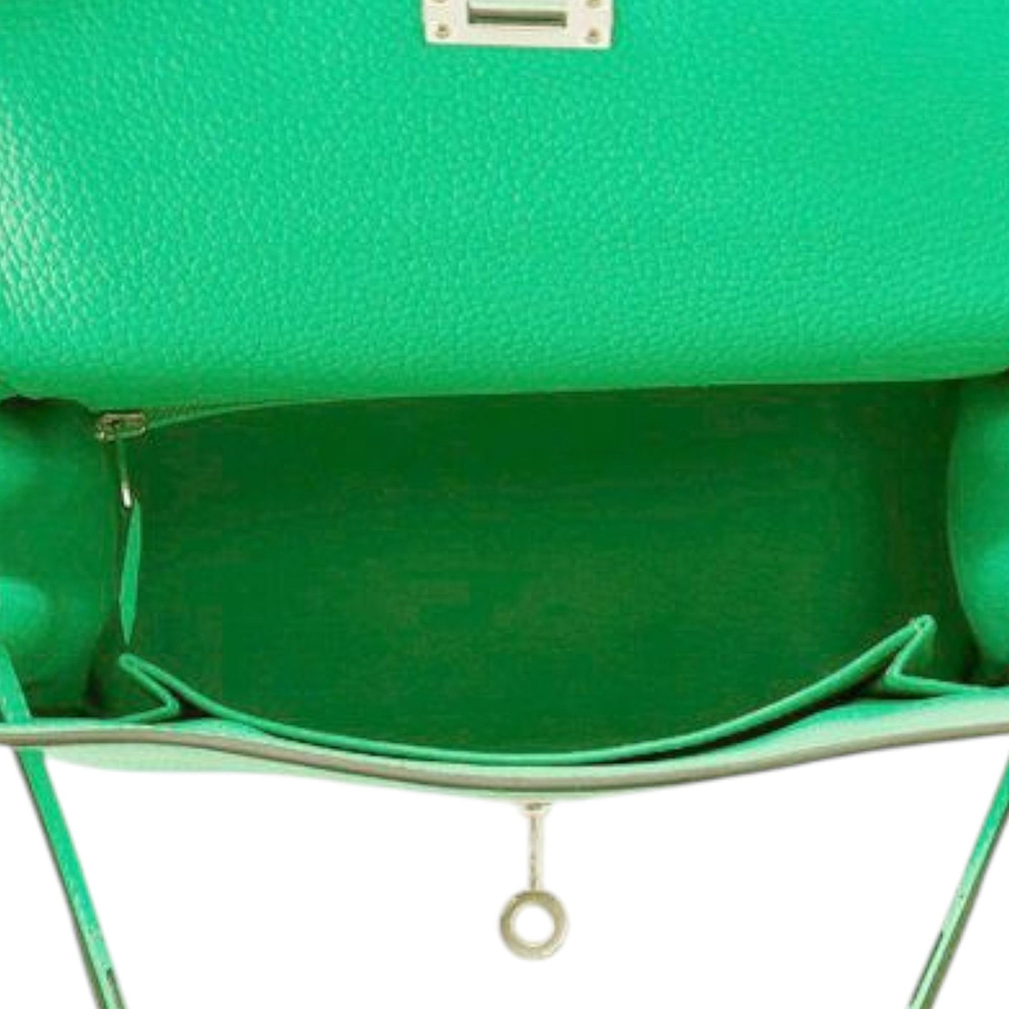 This Kelly features a Togo leather body in Vert Comics color, a flat leather top handle, a detachable flat leather shoulder strap, a front flap with twist lock closure, and interior zip and slip pockets. Inclusion: Dust bag, box. Retail Price: 28500.00