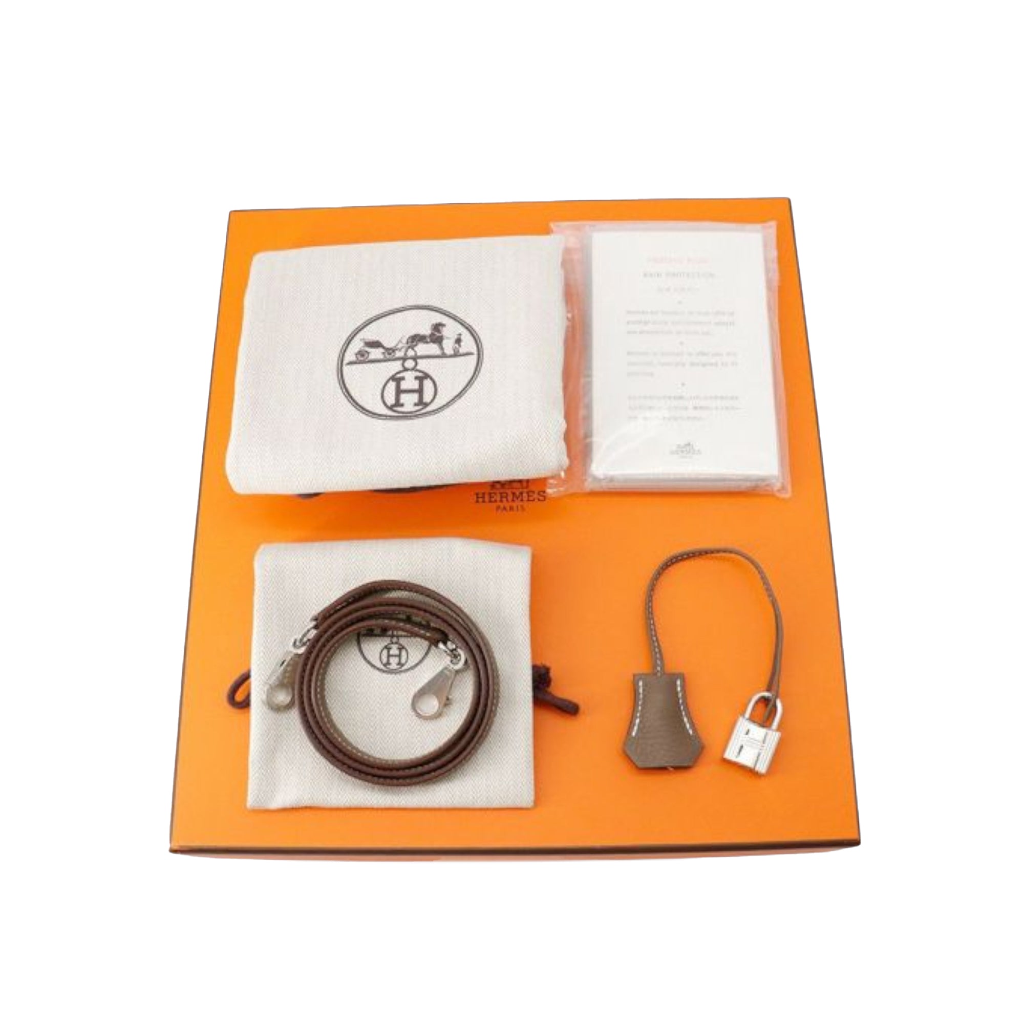 The Kelly 25 features a togo leather body in Etoupe color, a flat leather top handle, a detachable flat leather shoulder strap, a front flap with twist lock closure, and interior zip and slip pockets. Inclusion: Dust bag, box. Retail Price: 28500.00
