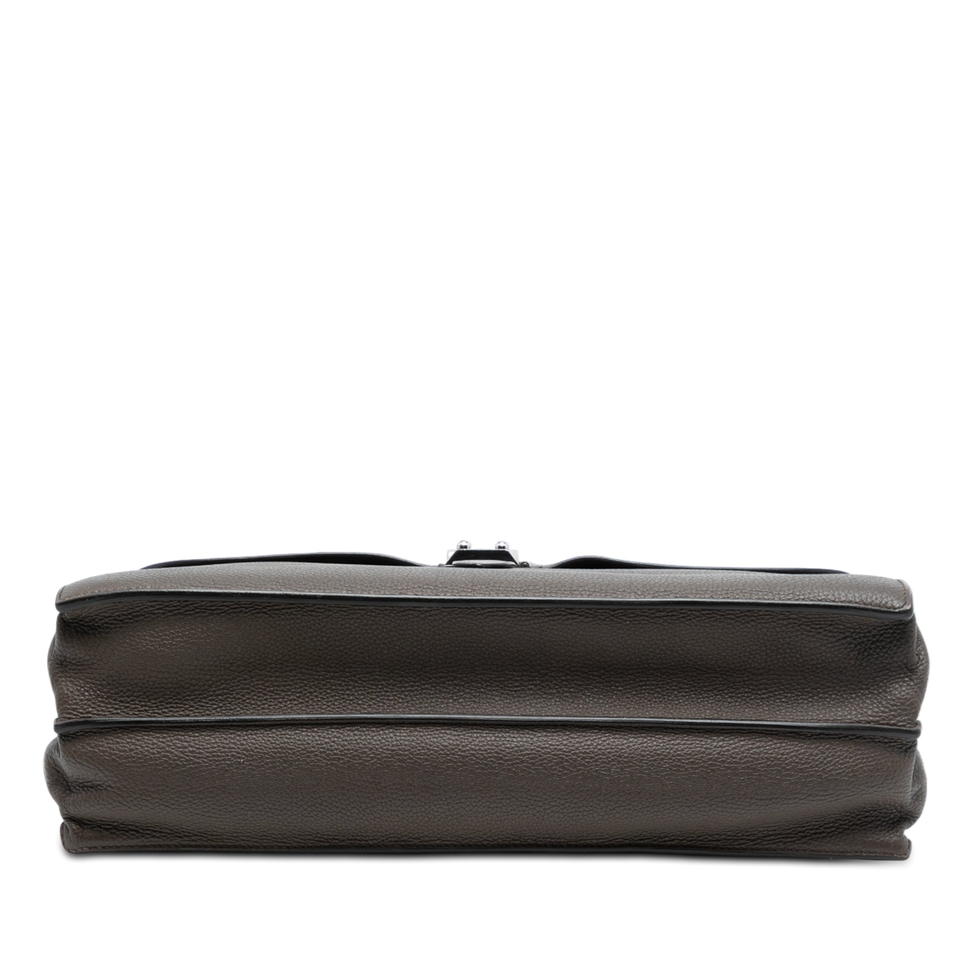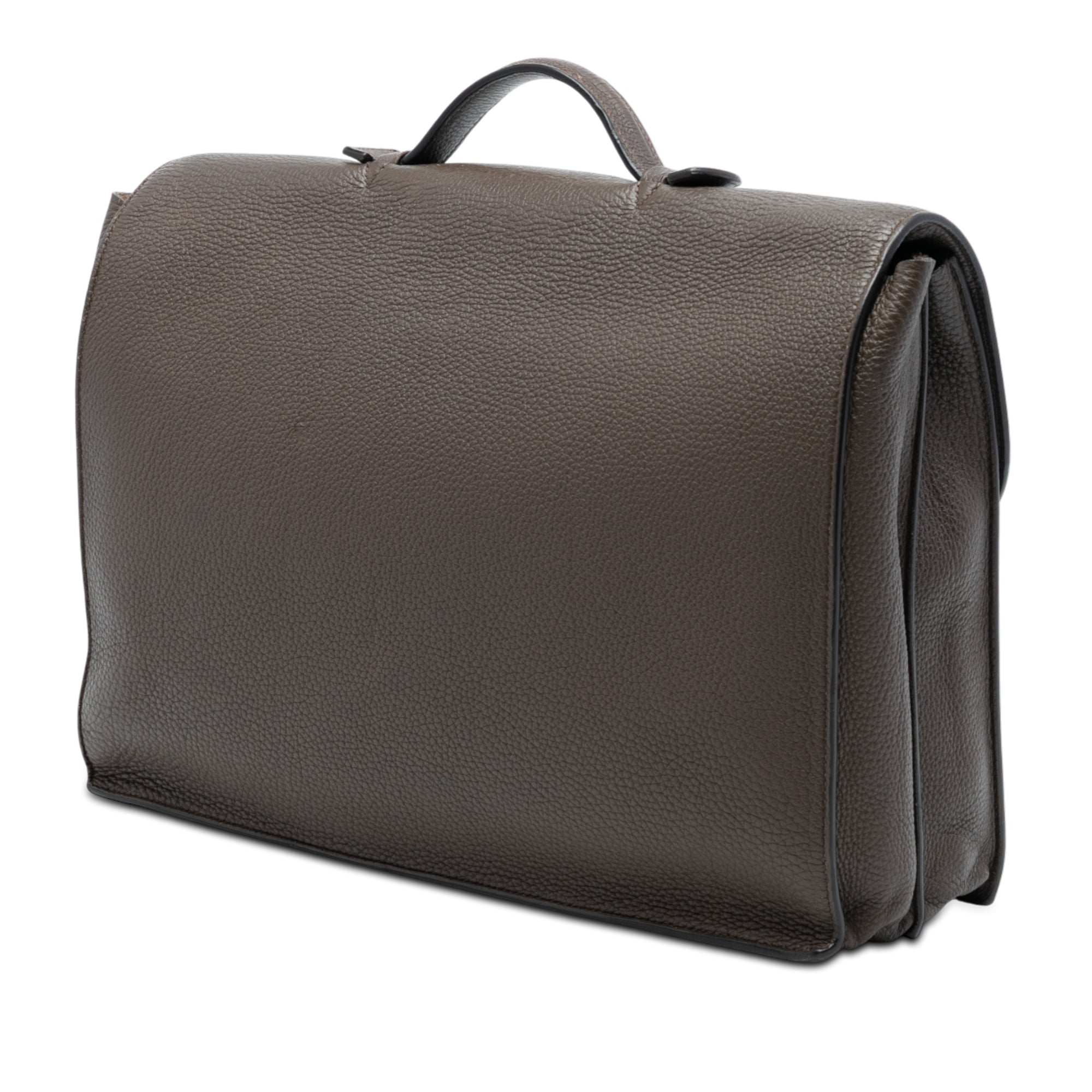 This business bag features a Togo leather body in Ebene color, a flat top handle, a top flap with push lock closure, and interior slip pocket. Retail Price: 5000.00