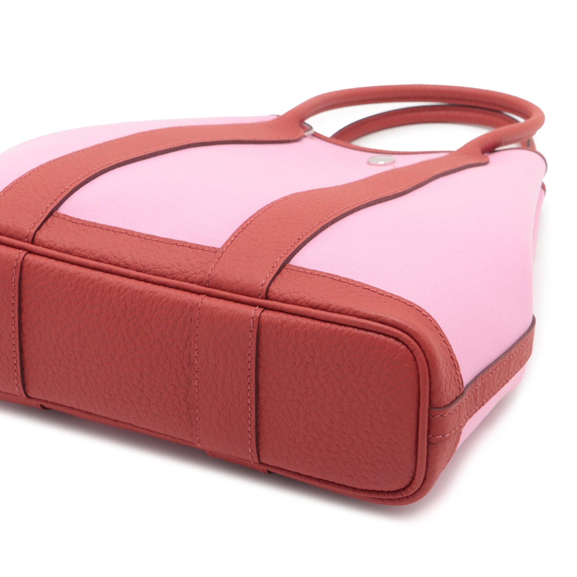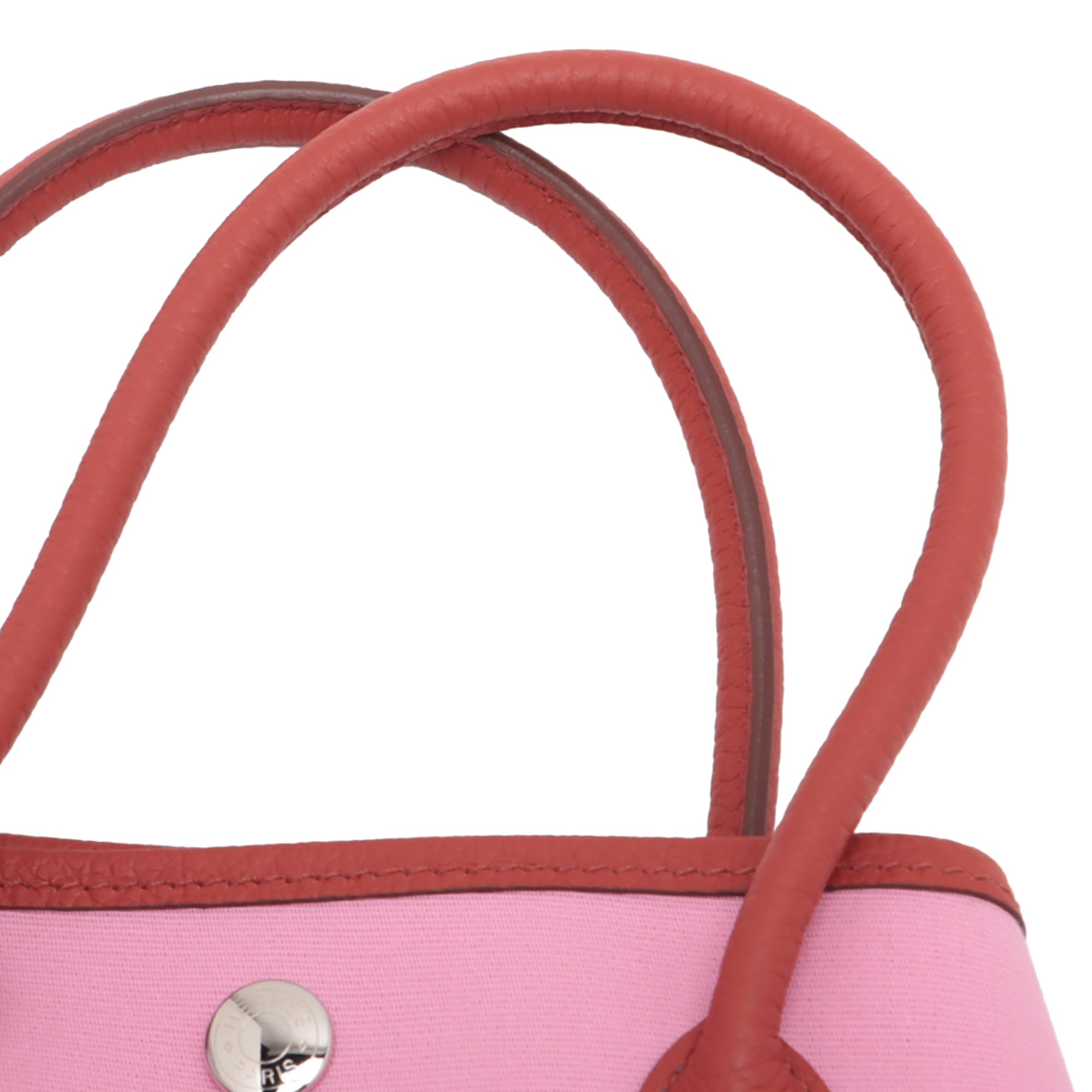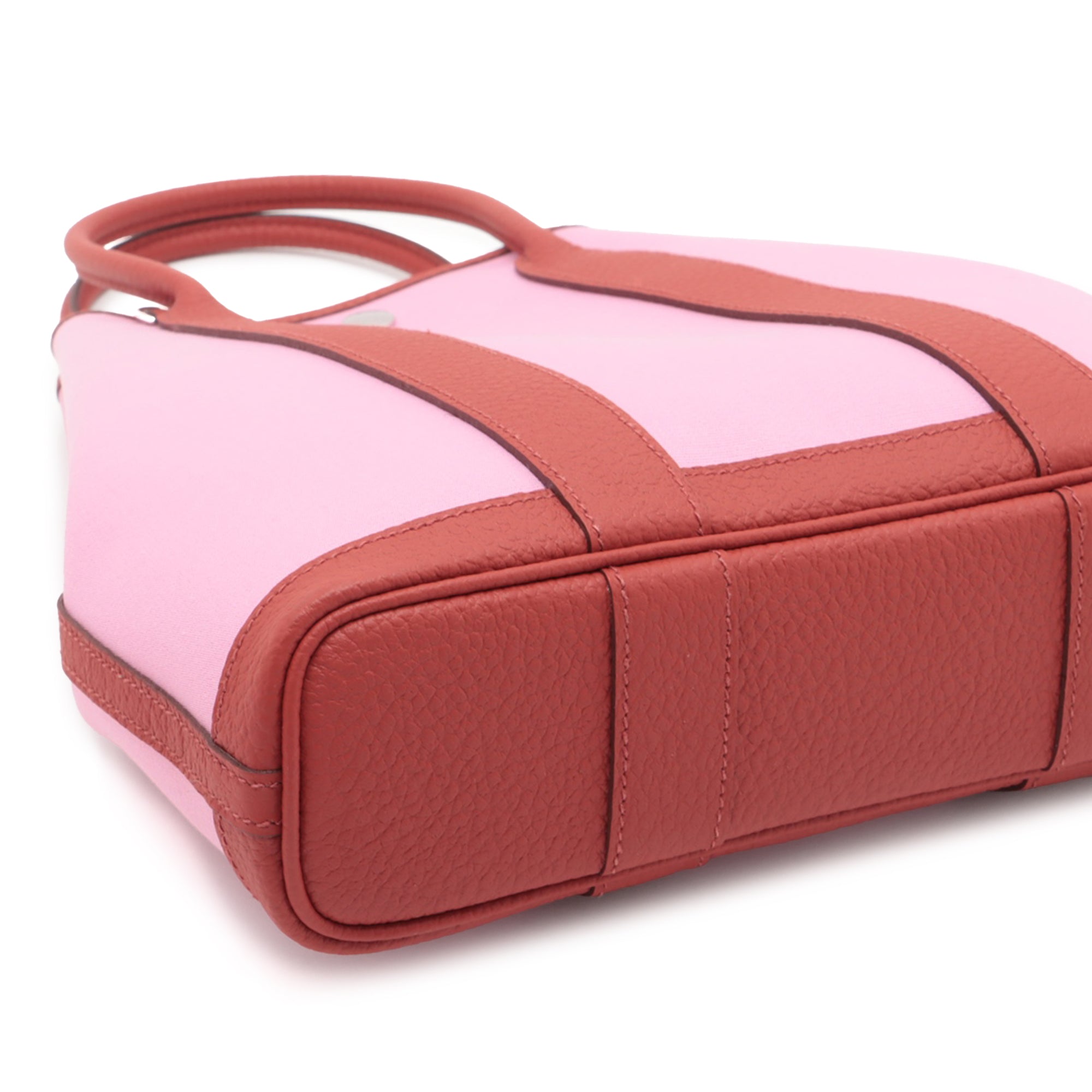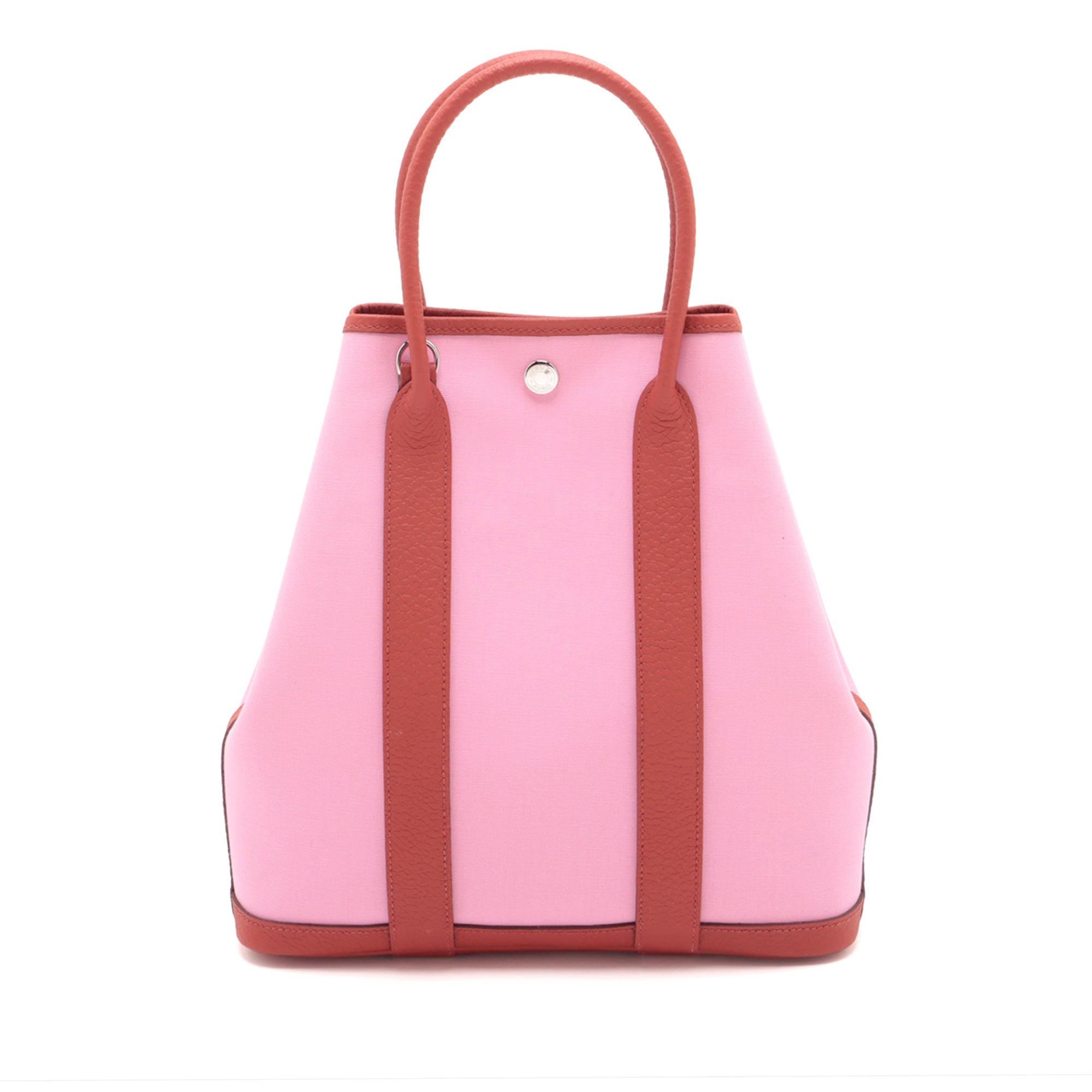The Garden File 28 features a canvas body with leather trim, rolled leather handles, a detachable flat strap, and an open top with a snap button closure. Retail Price: 2450.00