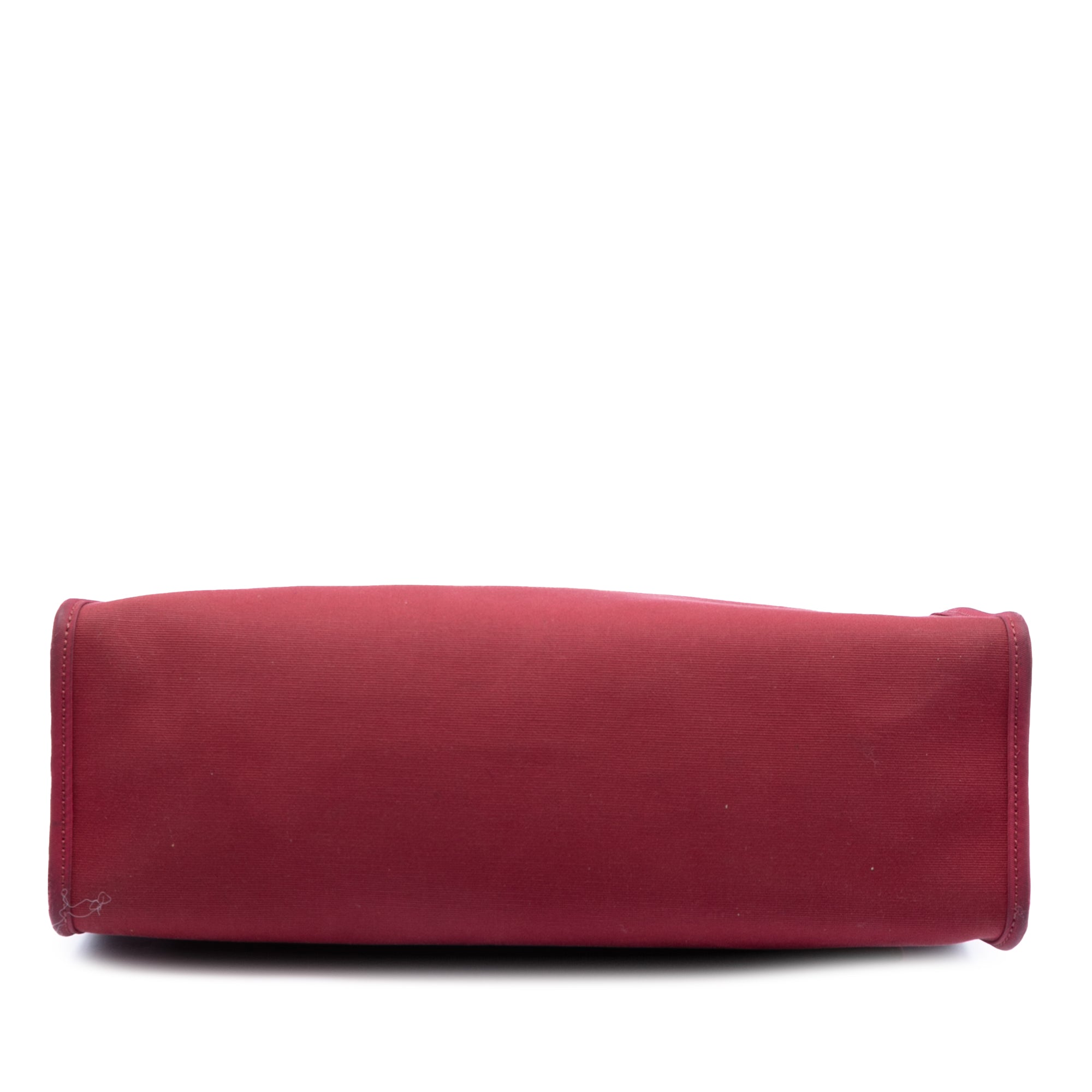 The Herbag Zip 31 features a canvas body with leather trim, a flat leather top handle, a flat leather shoulder strap, a front flap with pull-through strap closure, an exterior back zip pocket, and a detachable interior zip pouch. Retail Price: 5945.00