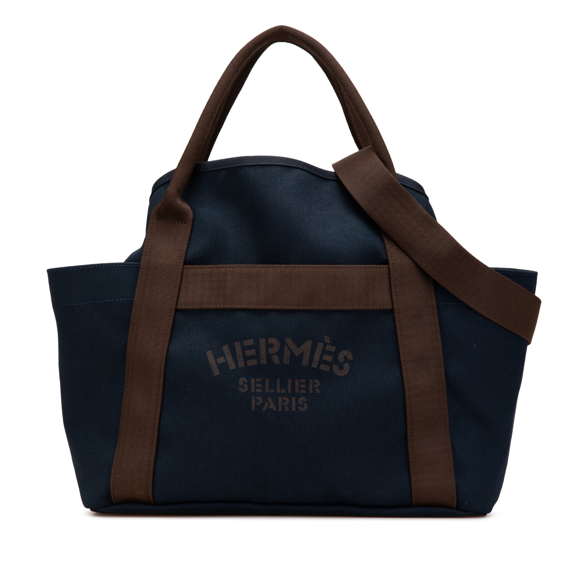 This satchel features a canvas body, rolled canvas handles, a detachable flat canvas strap, an open top, exterior slip pockets, and interior zip and slip pockets. Retail Price: 3000.00