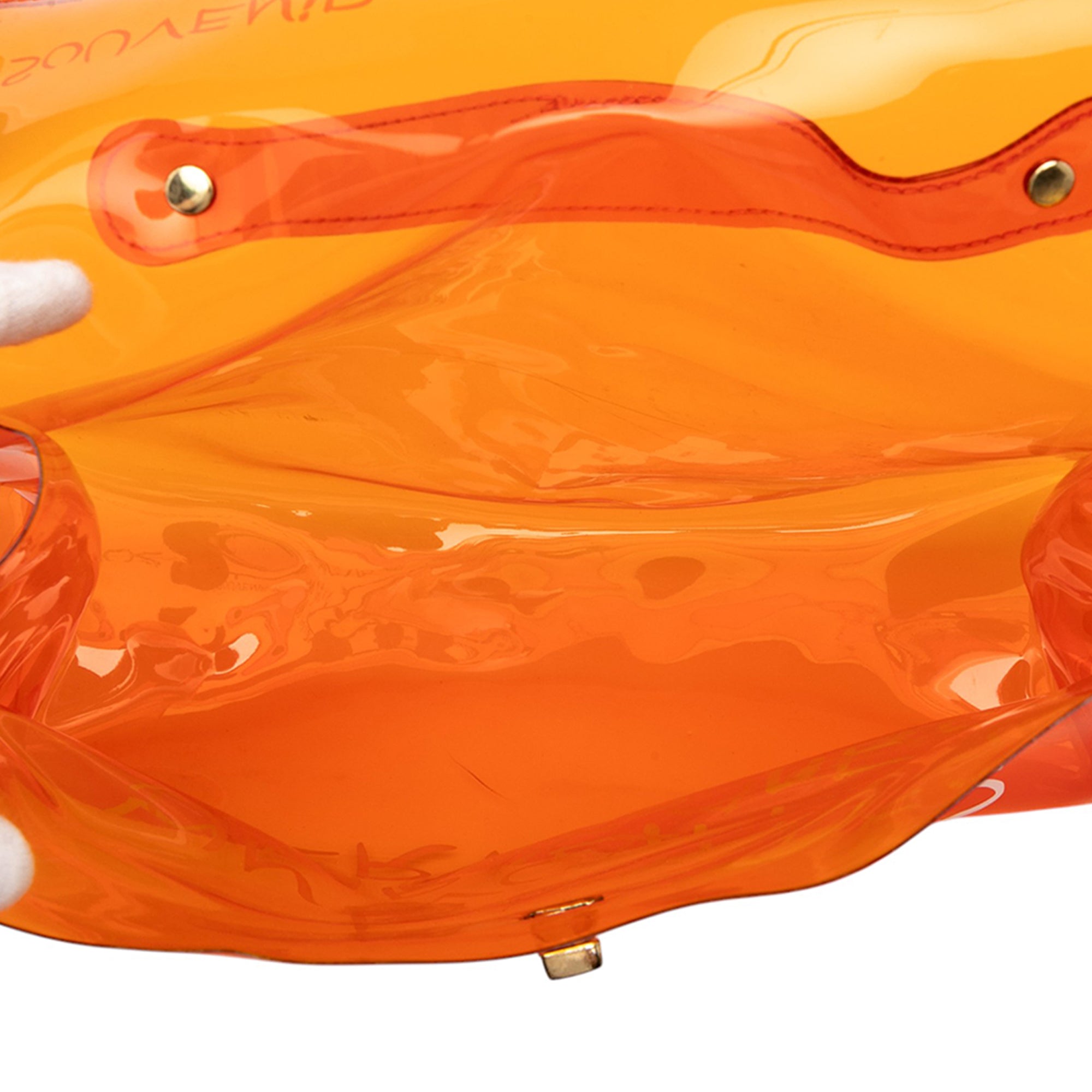 The Vinyl Kelly handbag features a see-through vinyl body, a flat top handle, and a front flap with a turn lock closure. Retail Price: 950.00