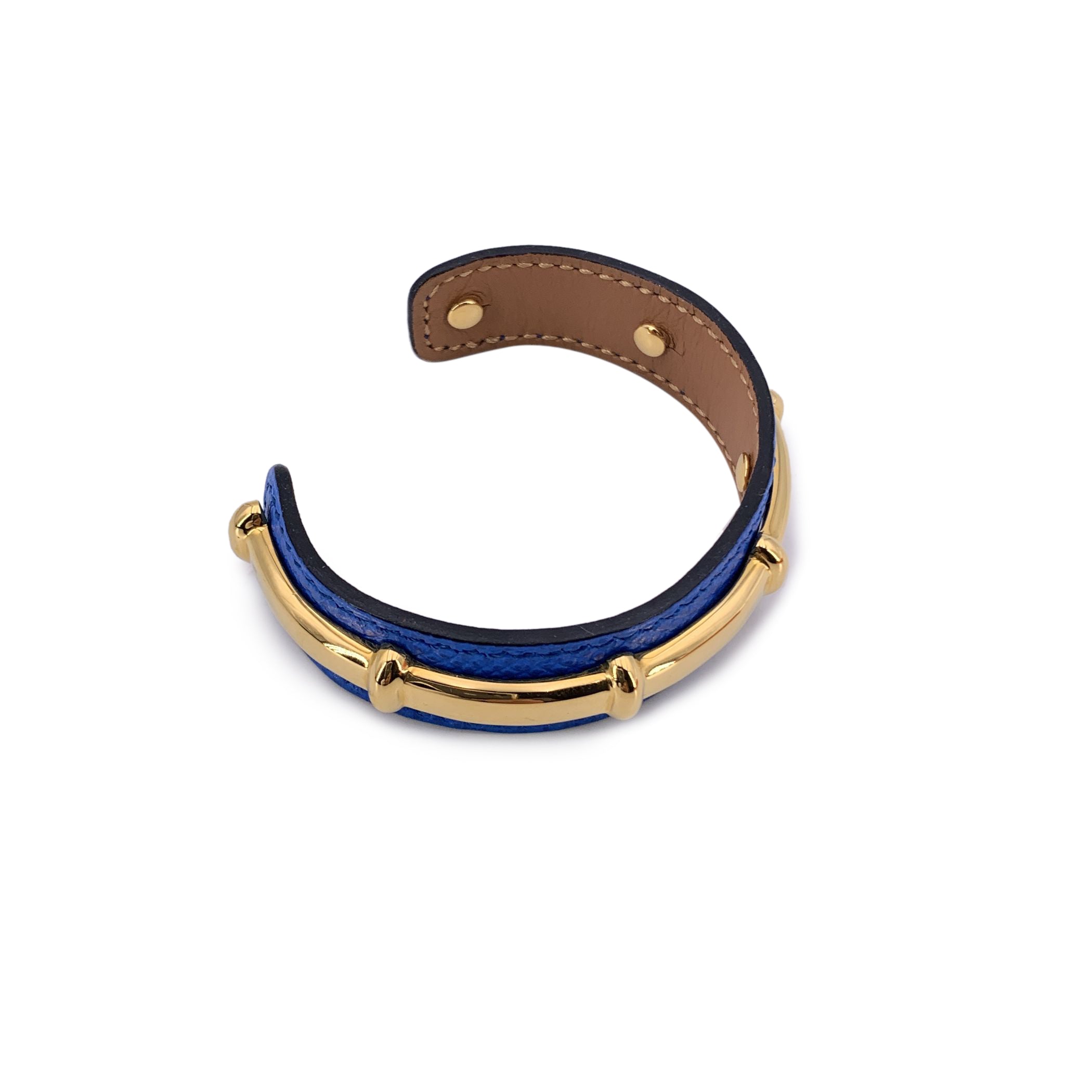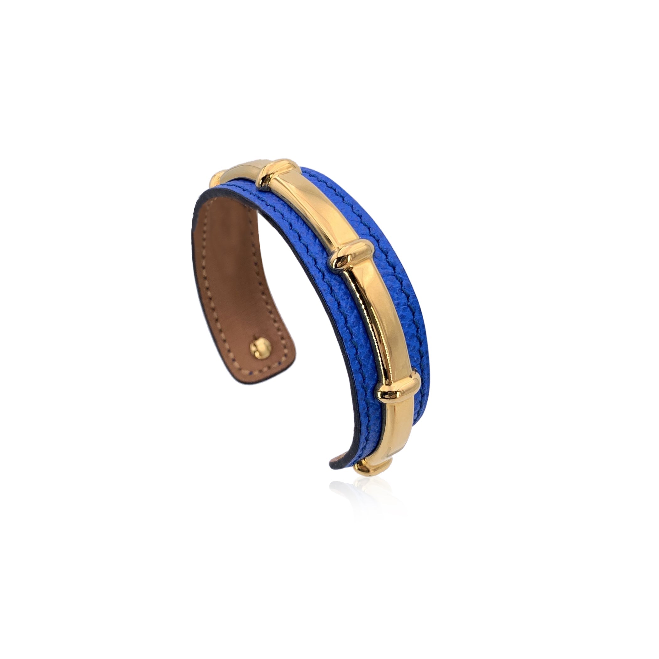 Elegant And Inventive, This Hermès 'Agatha' Bracelet Is a Refined Statement Piece That Captures The Brand's Signature Fusion Of Luxury And Design. Crafted In Vibrant Blue Leather And Accented With a Bamboo Motif Gold Metal Structure, It Offers Two Looks In One-the Leather Strap Can Be Removed, Allowing The Sculptural Metal Form To Shine On Its Own As a Standalone Bracelet. Subtle Yet Striking