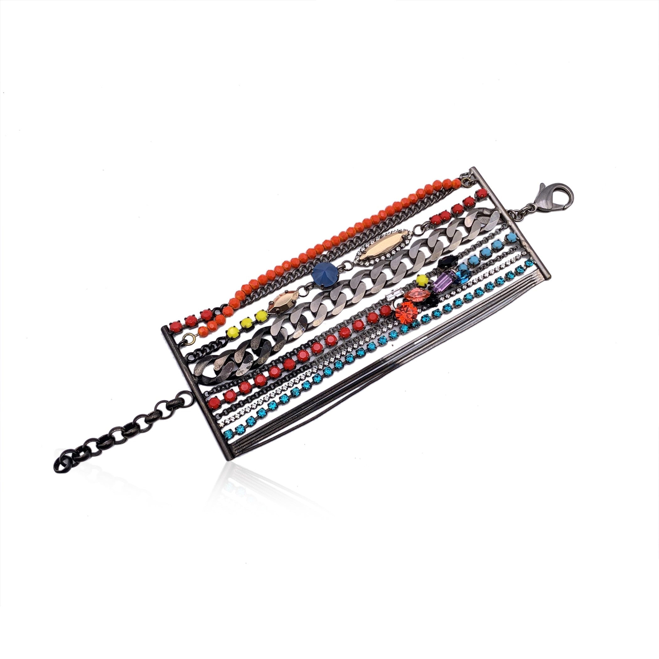 Chic And Eclectic, This Iosseliani Multistrand Chain Bracelet Embodies The Brand's Signature Fusion Of Glamour And Edge. Expertly Crafted In Silver-tone Metal, It Features An Array Of Multicolored Artificial Crystals And Stones, Creating a Striking Interplay Of Light And Texture. Designed With An Adjustable Lobster Clasp Closure, This Bracelet Offers Both Comfort And Versatility, Allowing It To Be Styled Effortlessly For Day Or Night. Measuring 8.5 Inches (21.6 Cm) In Total Length, It's a Bold Yet Refined Accessory That Captures Iosseliani's Distinctive Blend Of Modern Artistry And Bohemian Elegance.