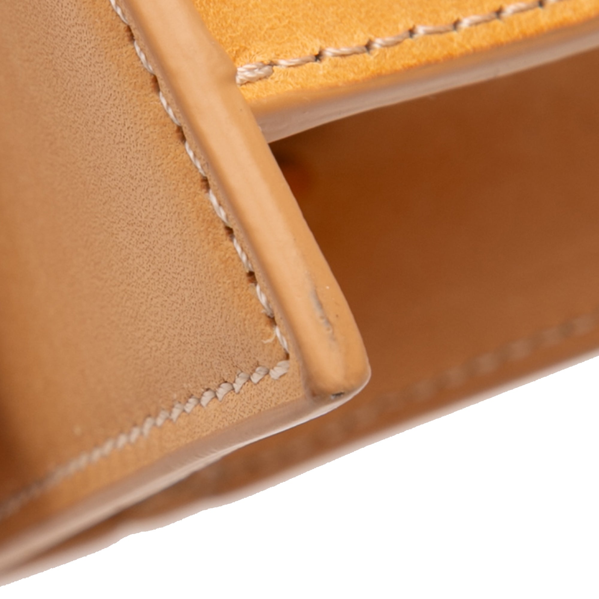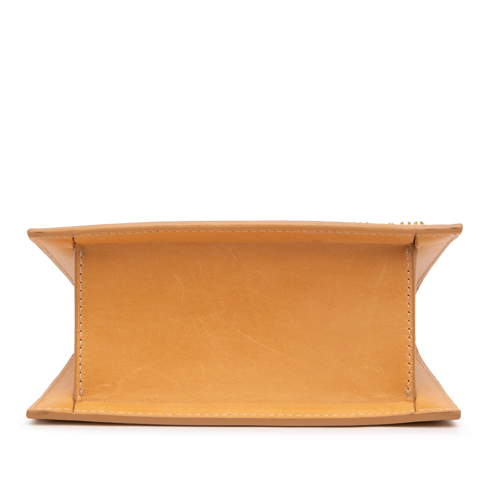 The Le Chiquito Moyen features a leather body, a rolled leather top handle, a detachable and adjustable flat leather strap, a front flap with magnetic snap closure, and an interior slip pocket. Inclusion: Dust bag. Retail Price: 980.00