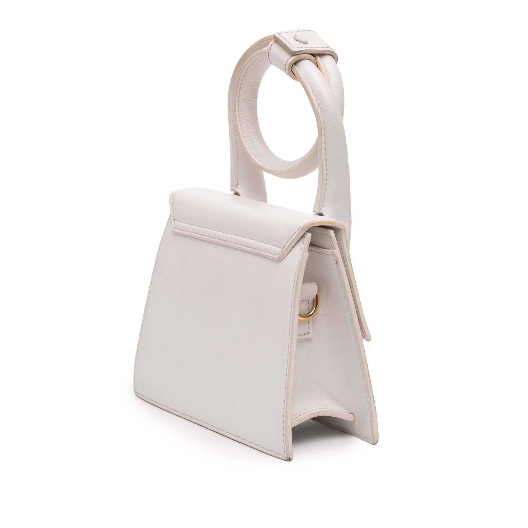 The Le Chiquito Noeud features a leather body, a rolled leather handle, a flat detachable shoulder strap, a flap with magnetic snap closure, and an interior slip pocket. Inclusion: Dust bag. Retail Price: 980.00