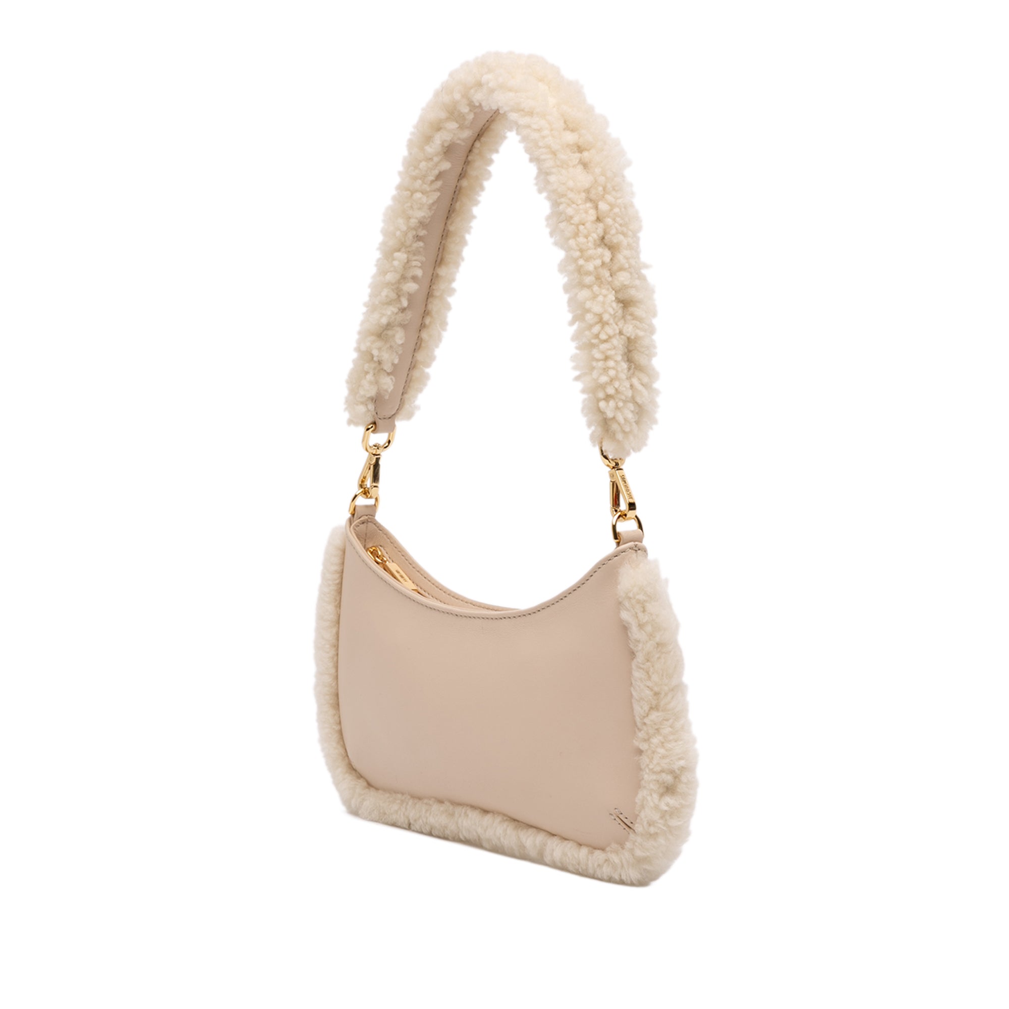The Le Bisou Doux features a leather body with shearling trim, leather with shearling shoulder strap, a top zip closure and an interior slip pocket. Inclusion: Dust bag. Retail Price: 822.00