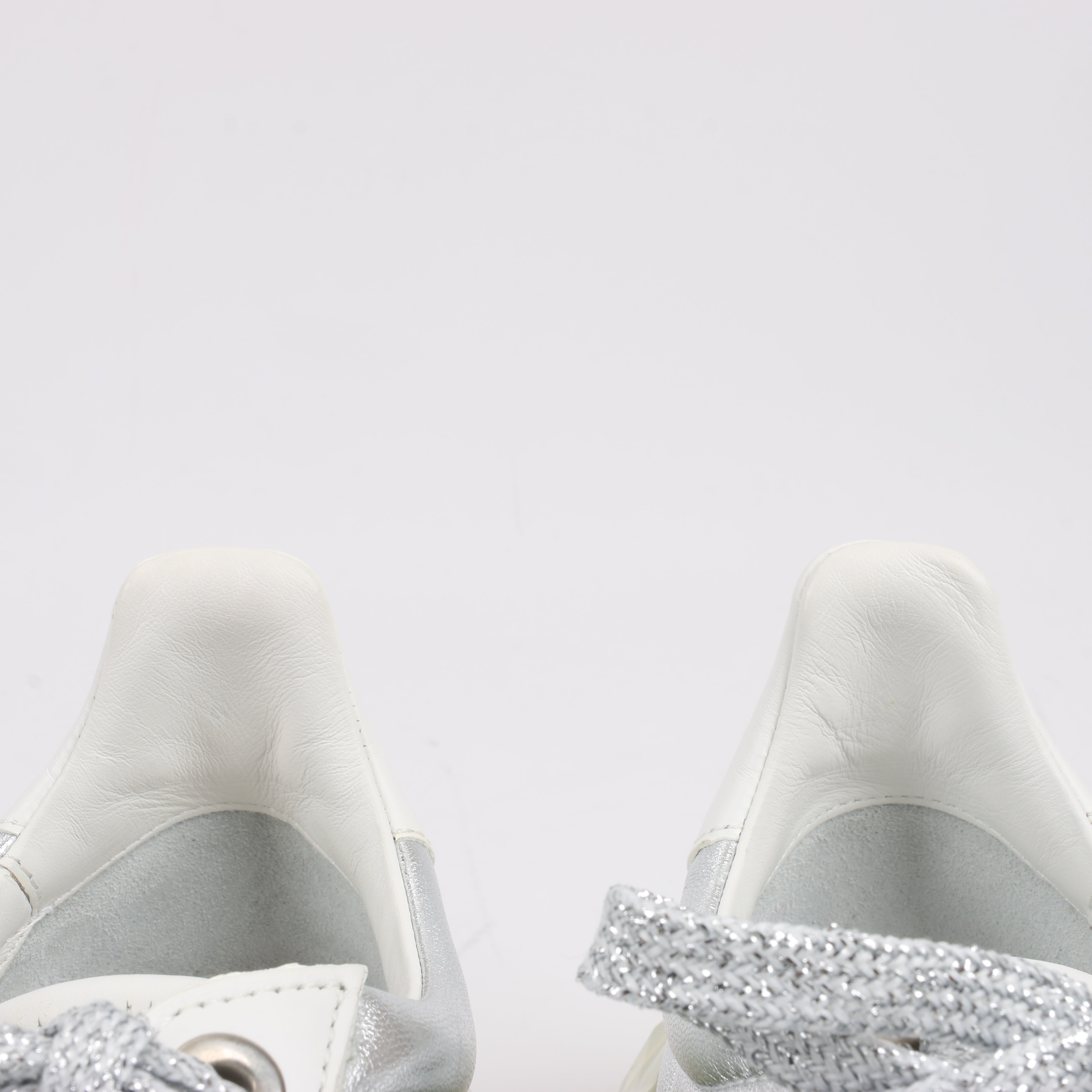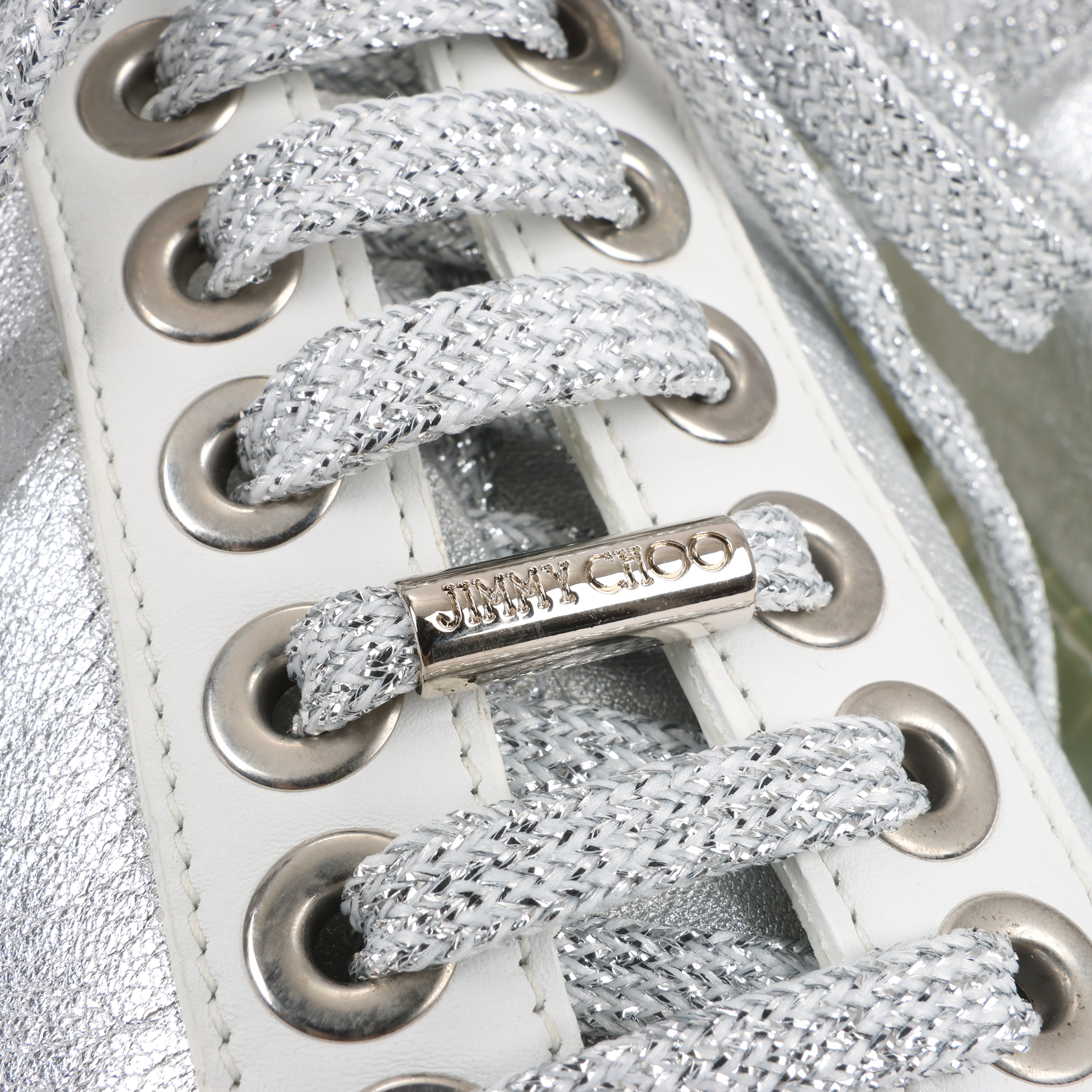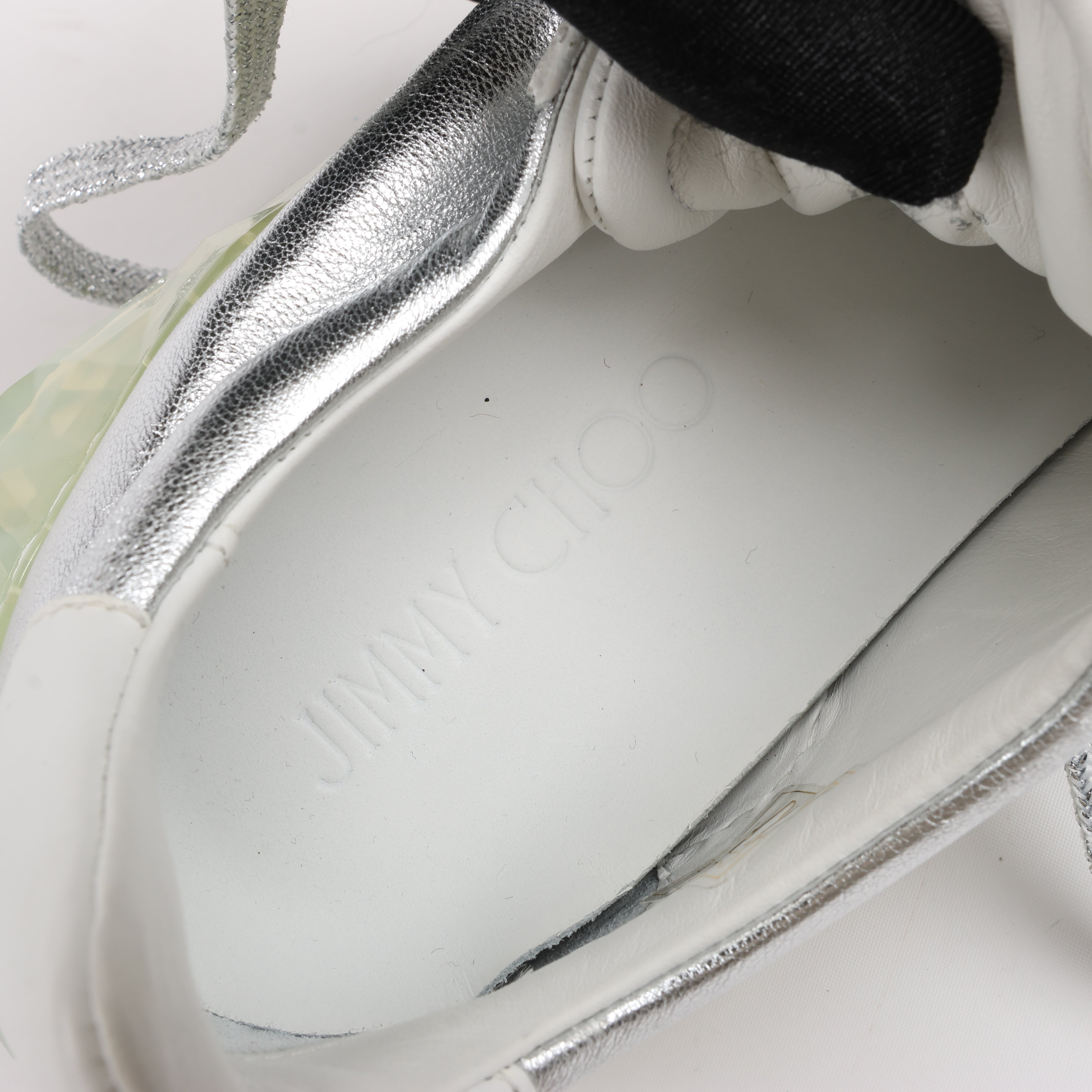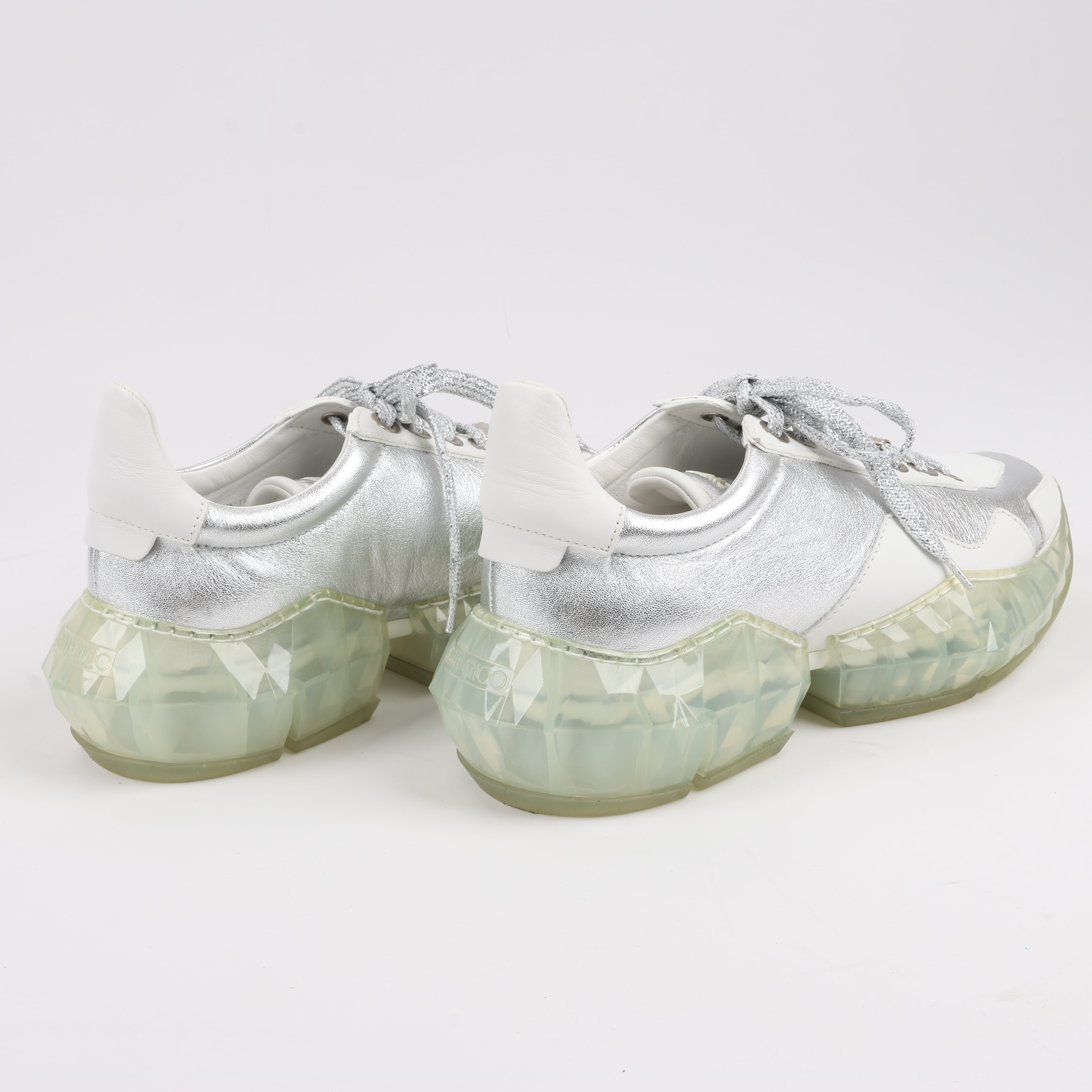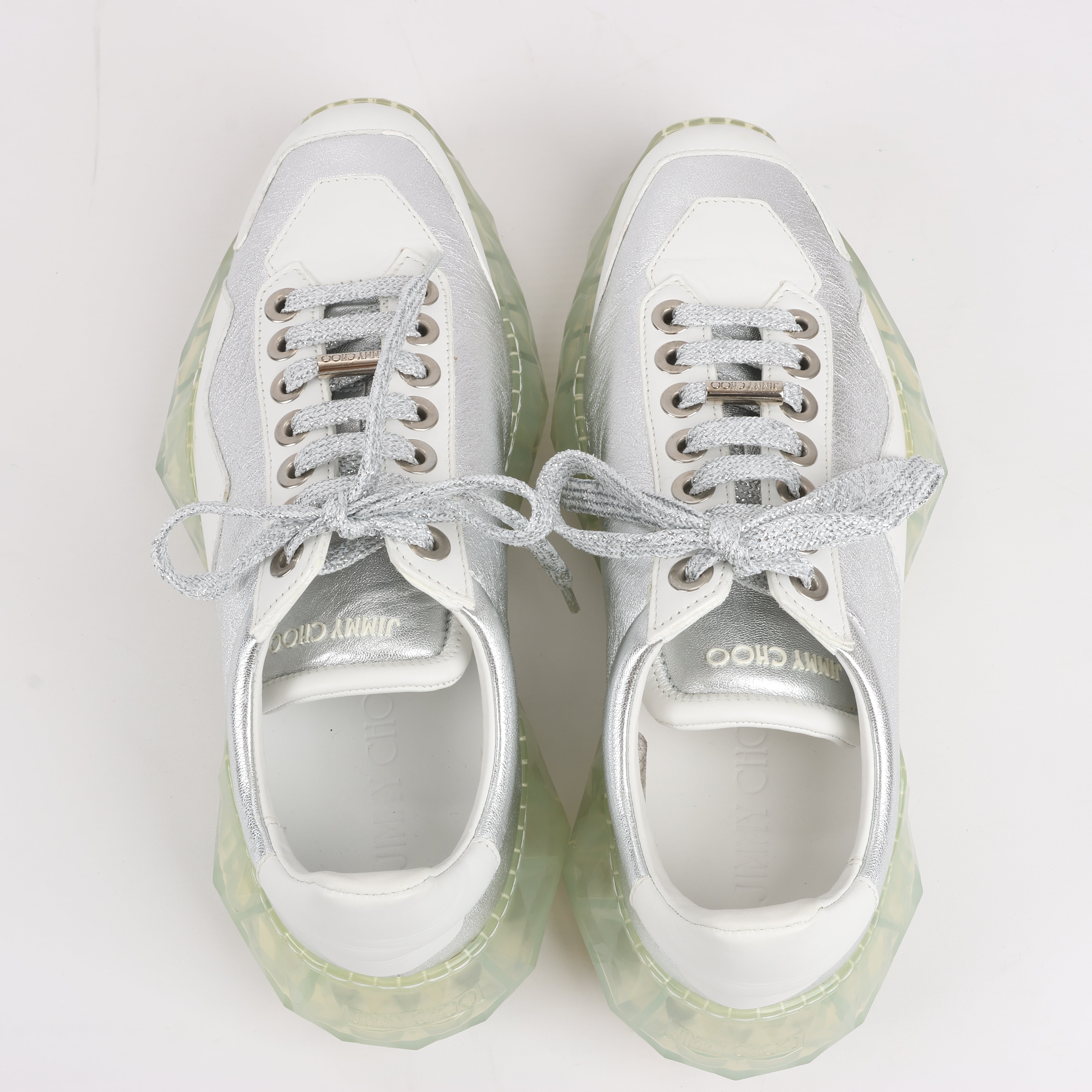 Jimmy Choo Jimmy Choo Diamond Leather Sneakers in White x Silver, Size 38 EU