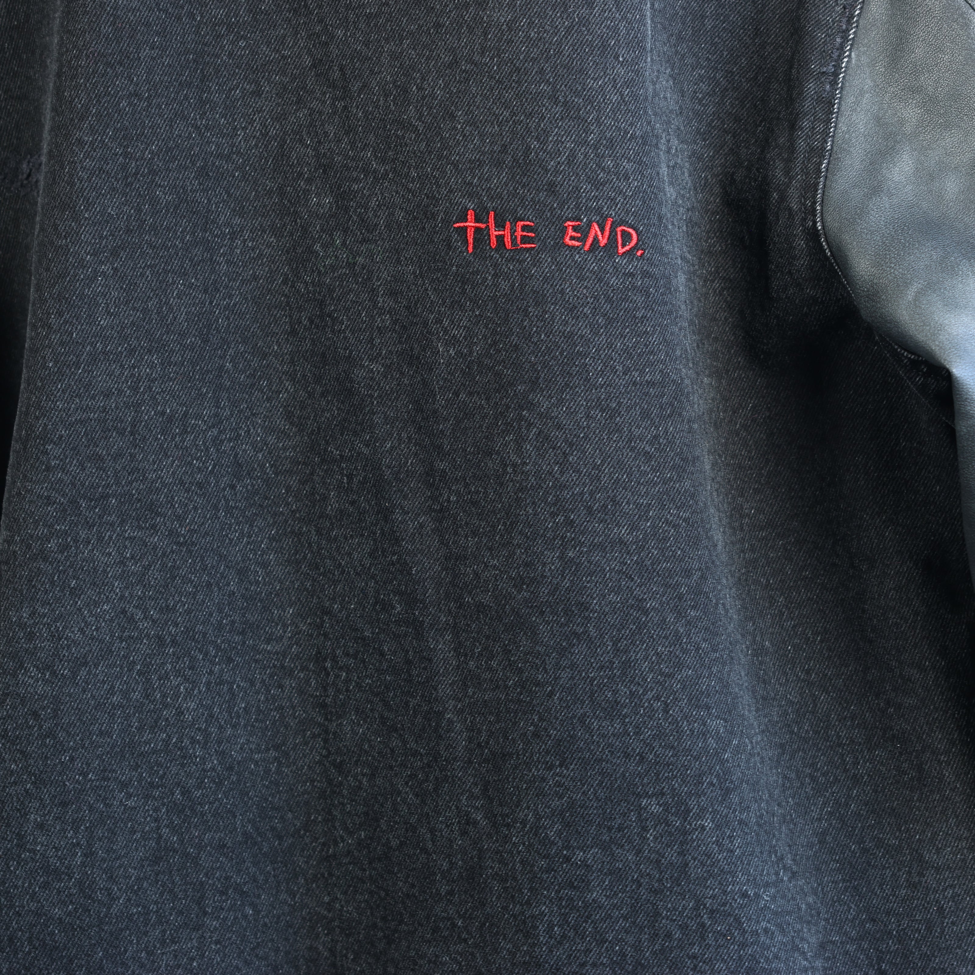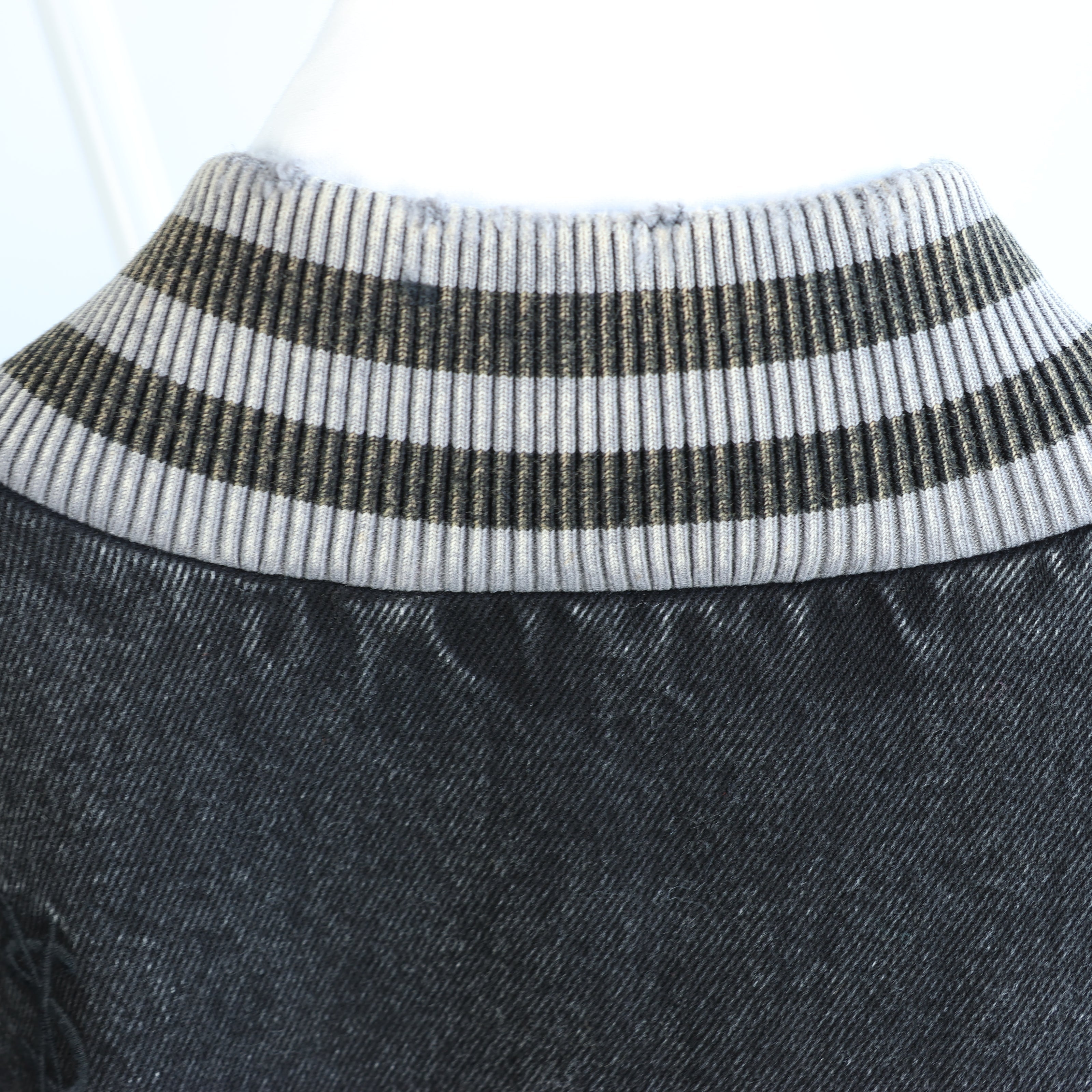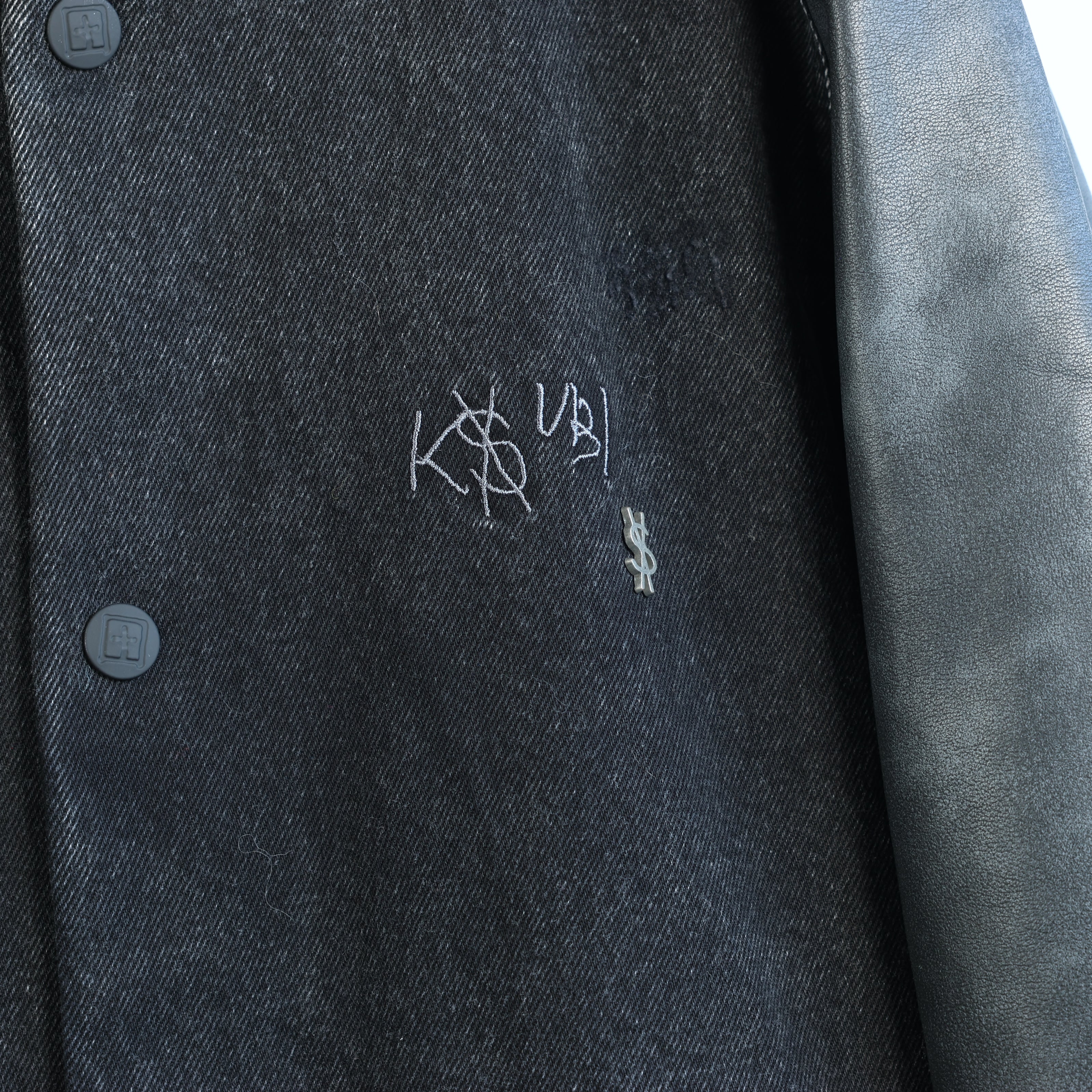 Ksubi Skribed King varsity jacket in black, size M. A statement piece with contrast grey sleeves, embroidered text details, and striped ribbed trims — the perfect fusion of rebellious streetwear and luxury craftsmanship.Brand: KsubiSize: MLength: 69 cm Shoulder width: 44 cmBust width: 56 cmSleeve lenght: 70 cmCondition: Never worn, with tagCondition Details: -Main colour: BlackColours: -Material: ClothComes With: Brand tag