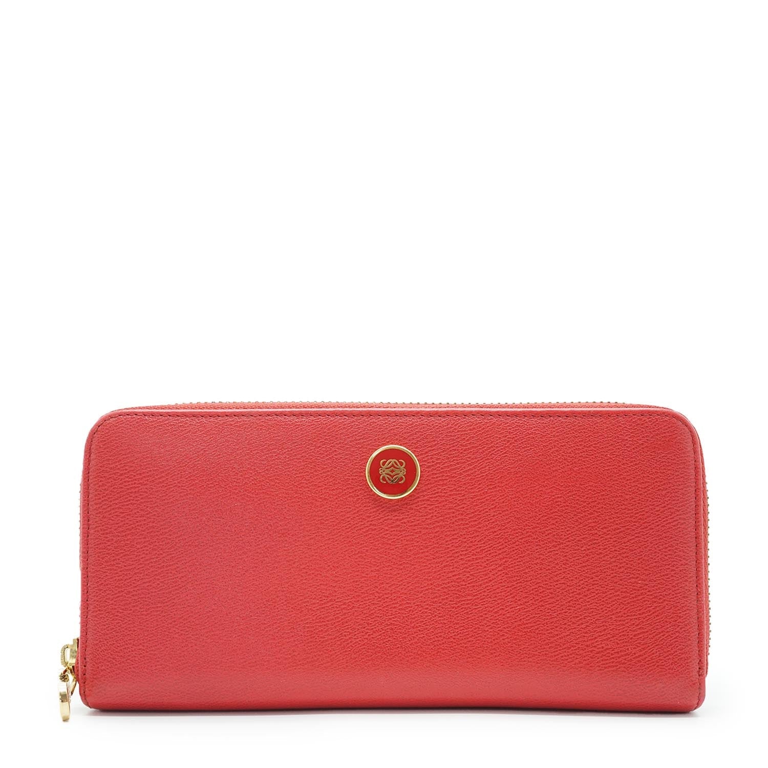 Loewe Anagram Red Leather Zip Around Long Wallet