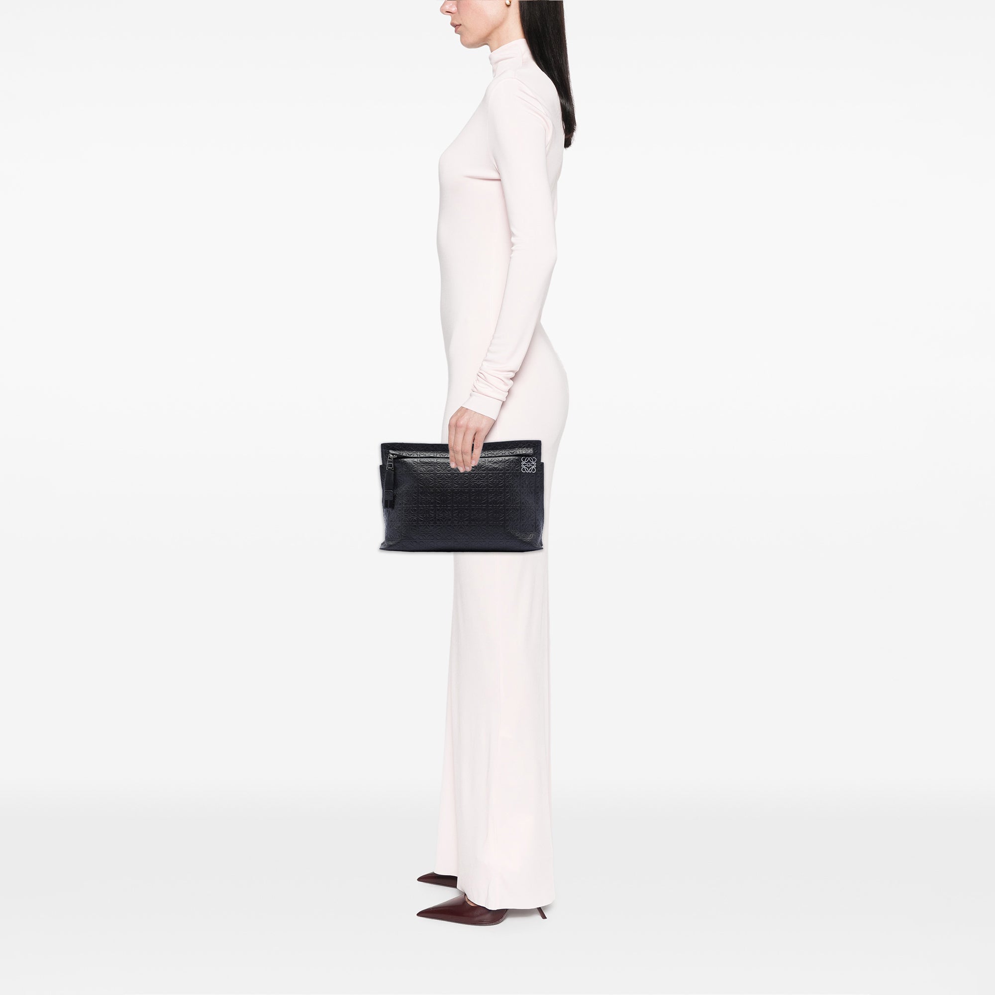 LOEWE Embossed Anagram Leather Repeat T Clutch