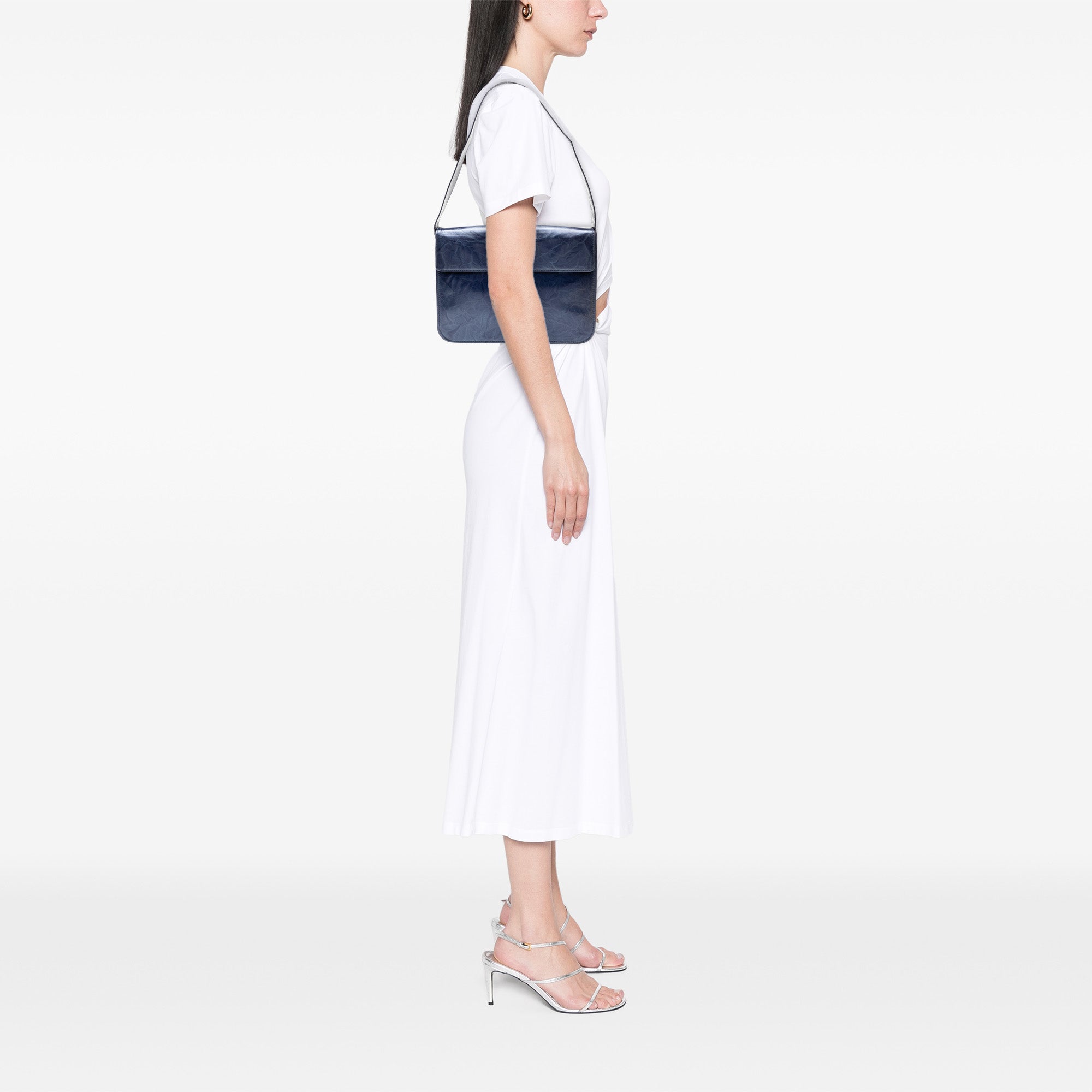 This shoulder bag features a leather body, flat leather strap, a top flap closure and an interior zip pocket. Retail Price: 760.00
