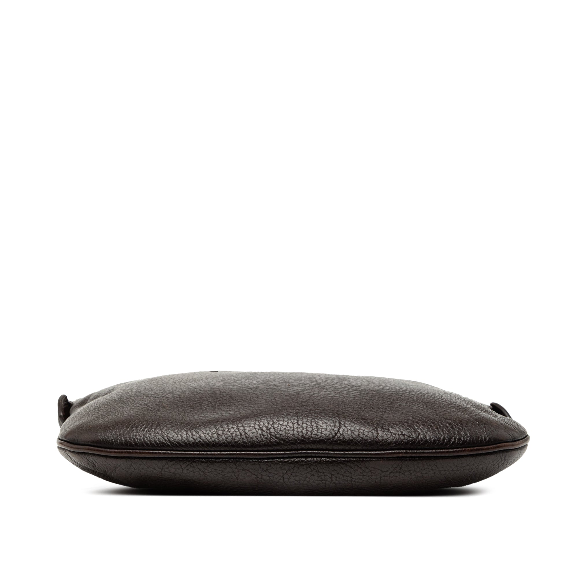 This crossbody bag features a leather body, a flat leather strap, a top zip closure, and an interior slip pocket. Retail Price: 1050.00