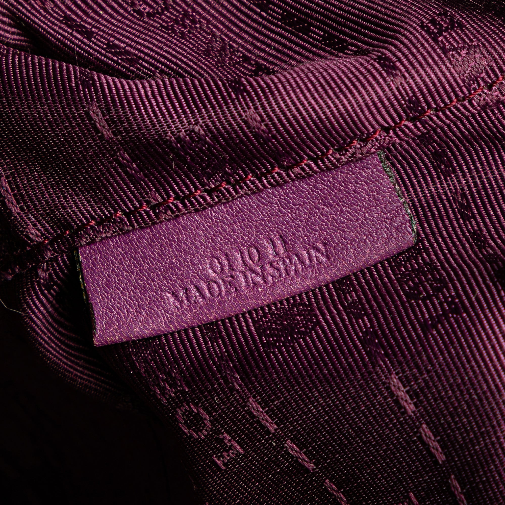 This tote bag features a leather body, flat leather handles, an open top with hook lock closure, exterior side pockets, and interior zip and slip pockets. Retail Price: 700.00
