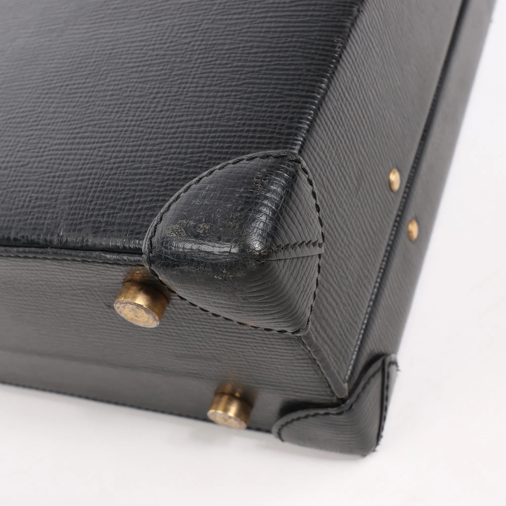 Brand: LoeweModel: AnagramSize: -Width: 44 cm Height: 32 cmExterior Condition: ExcellentInterior Condition: ExcellentCondition Details: The exterior is in very good condition, but has scratches and rubbings at the corners. The handle is firm in good condition. Gold hardware has darkened and has scratches. The interior is in very good condition, except one stain.Colour: BlackInterior Colour: GreenHardware Colour: BlackMaterial: LeatherComes With: -