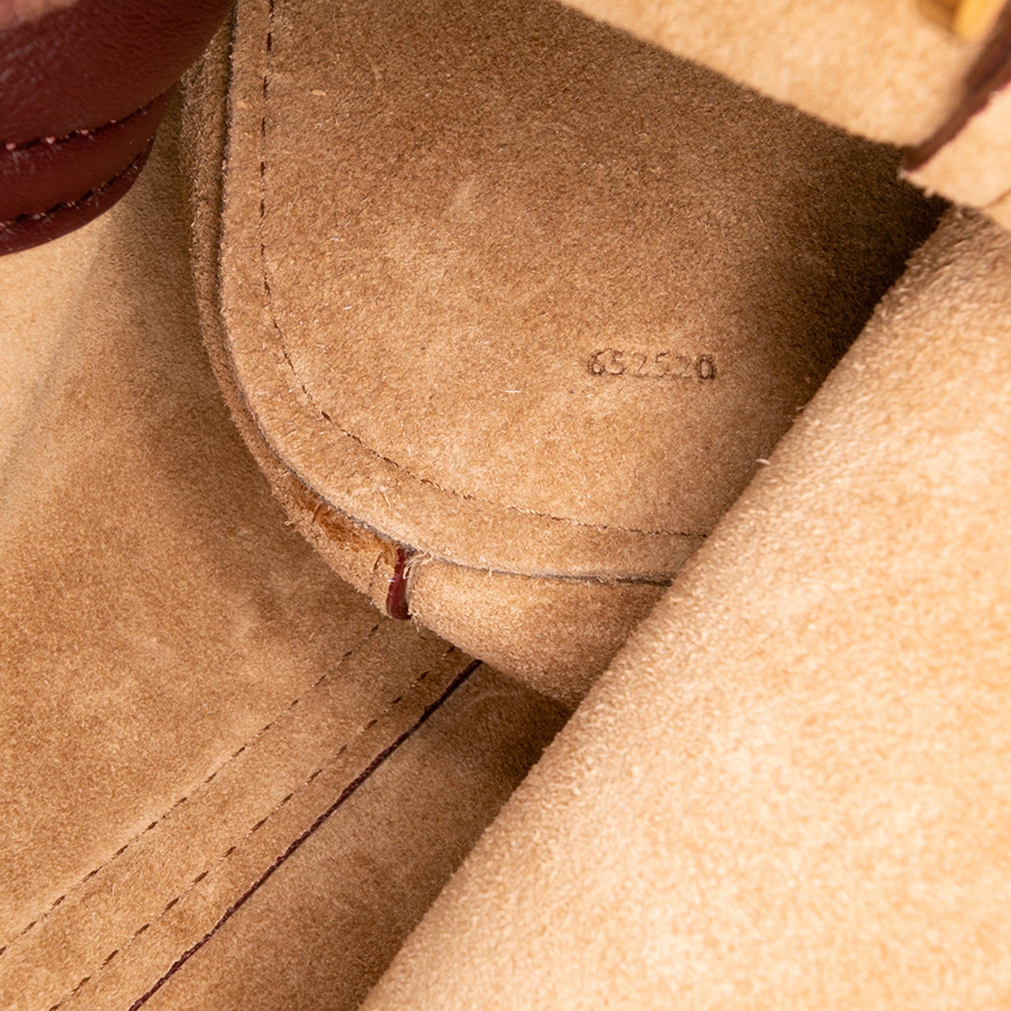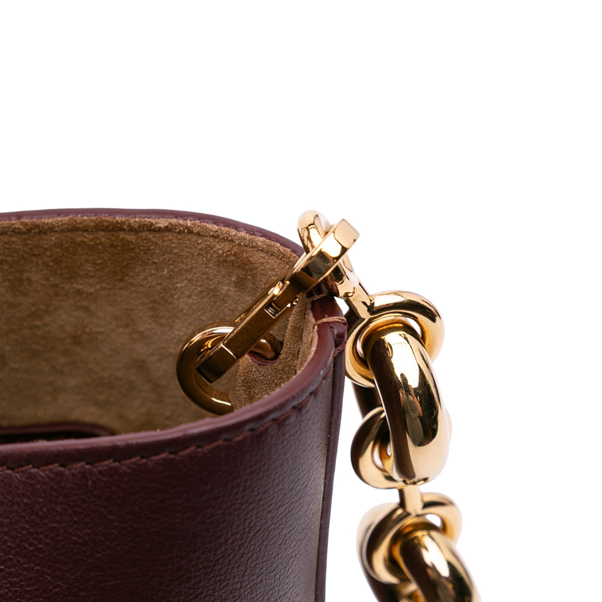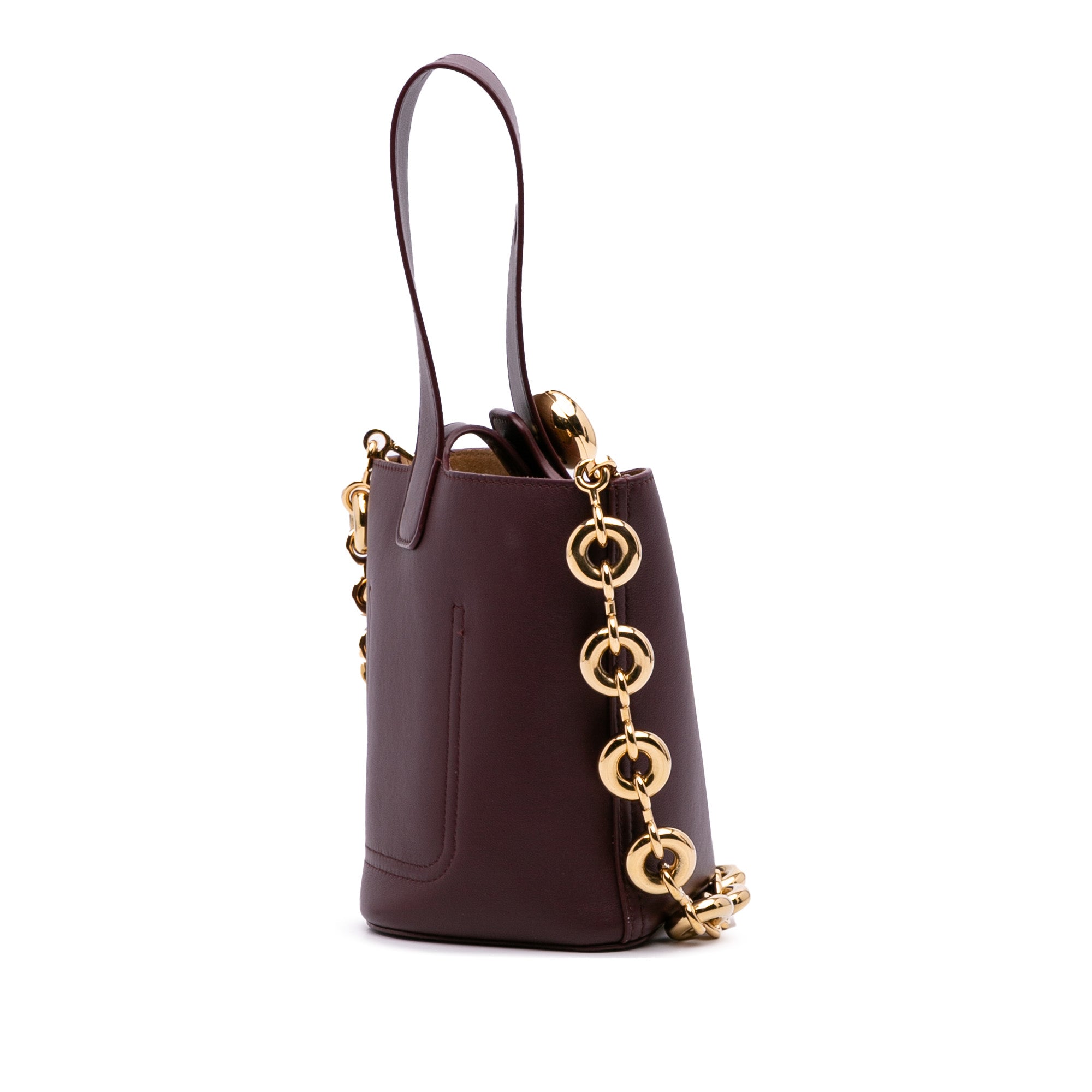 This bucket bag features a calfskin leather body, an adjustable flat leather handle, a gold-tone detachable chain link and leather shoulder strap, and an open top and interior slip pocket. Inclusion: Dust bag. Retail Price: 2600.00