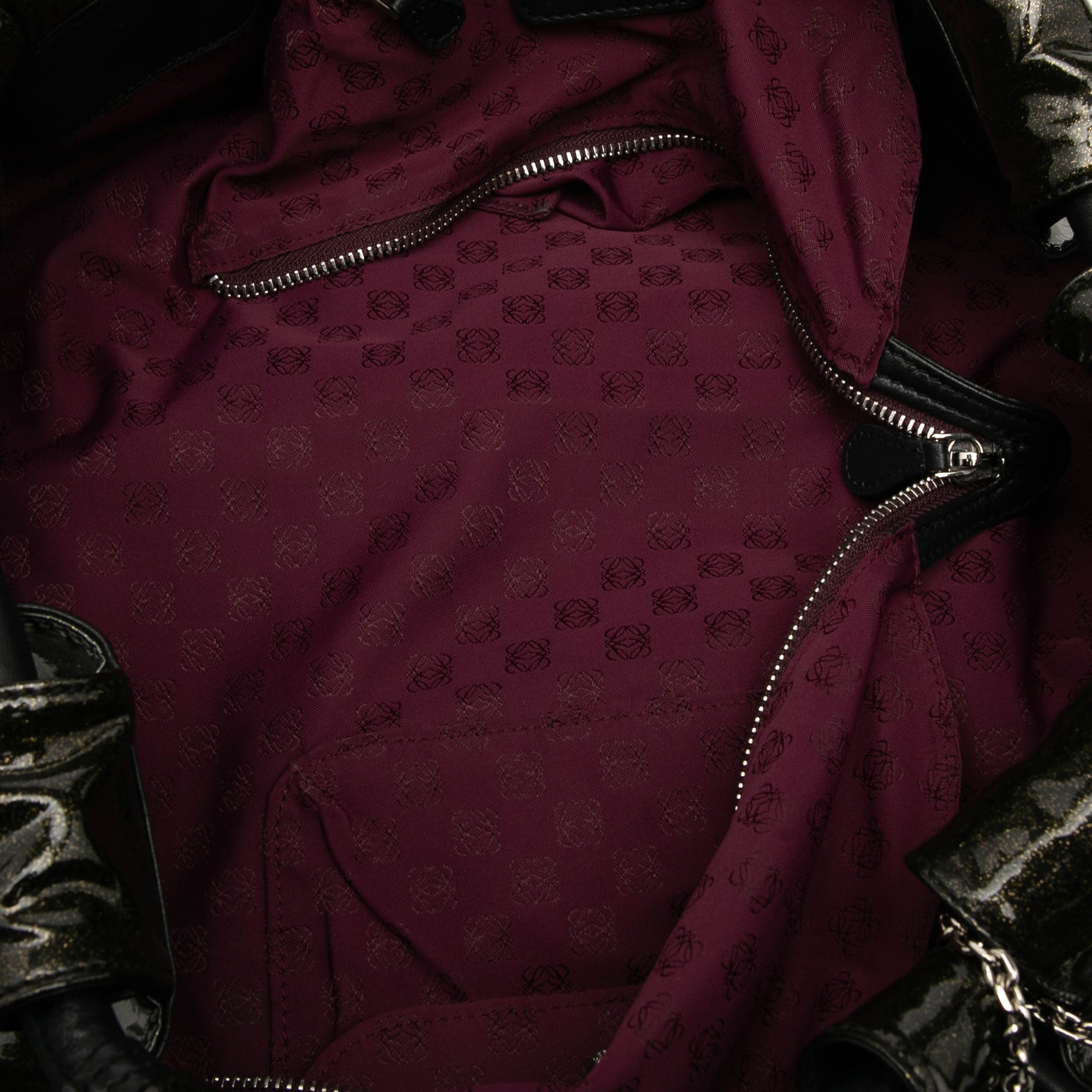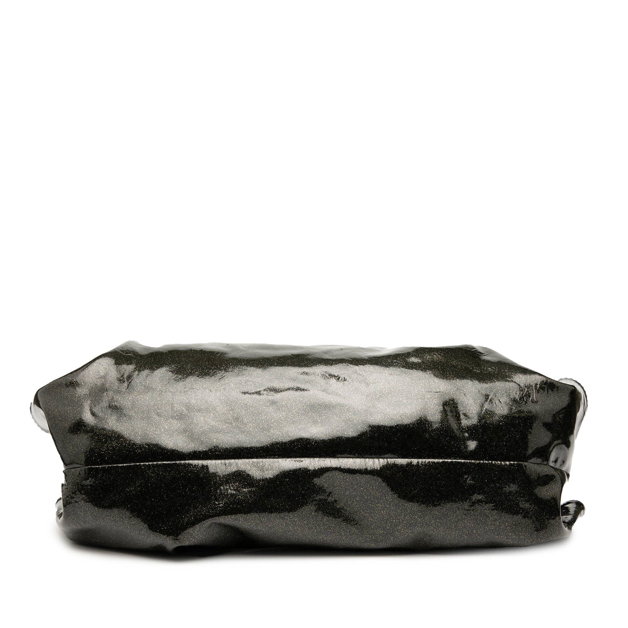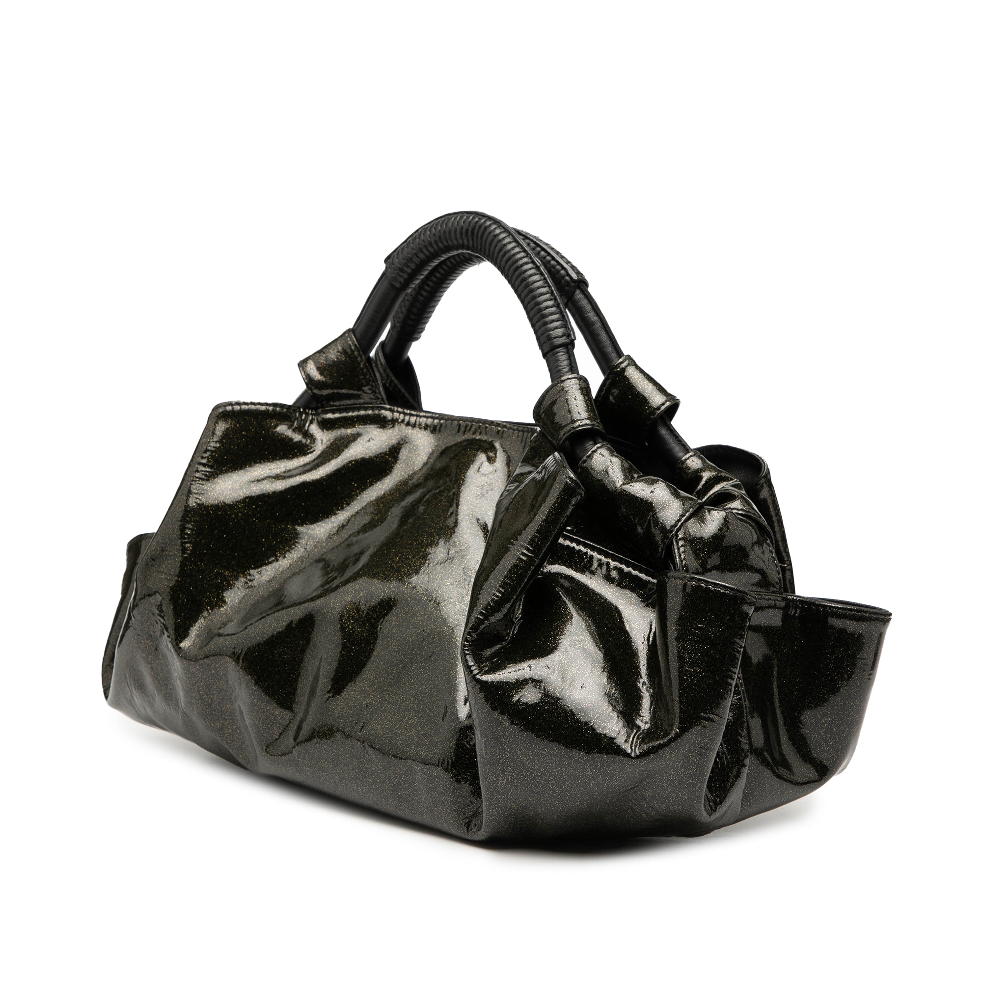 The Aire features a patent leather body, rolled leather handles, an open top, and interior zip pockets. Retail Price: 2200.00