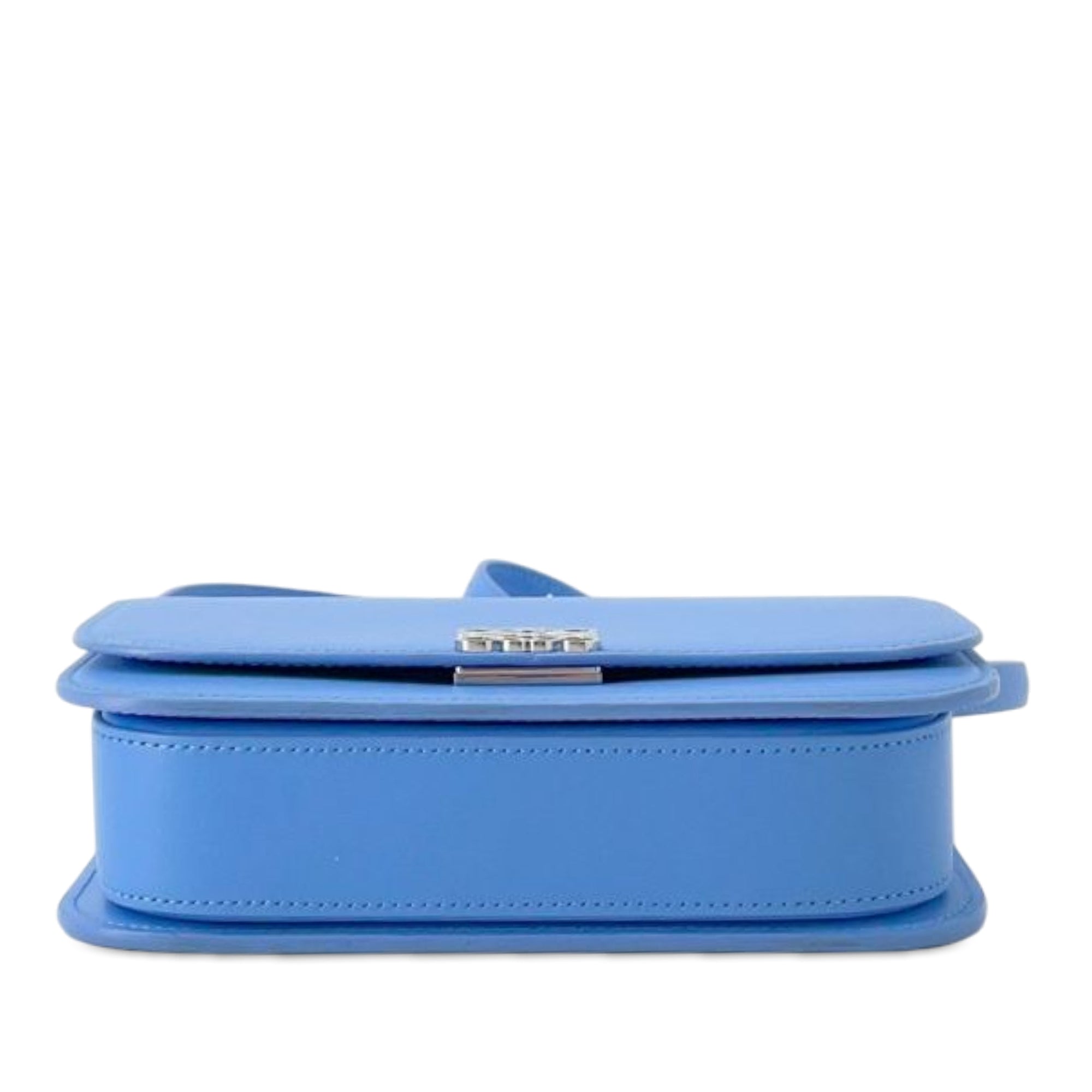 This crossbody bag features a leather body, a flat leather strap, a top flap with magnetic closure, and interior slip pockets. Retail Price: 3075.00