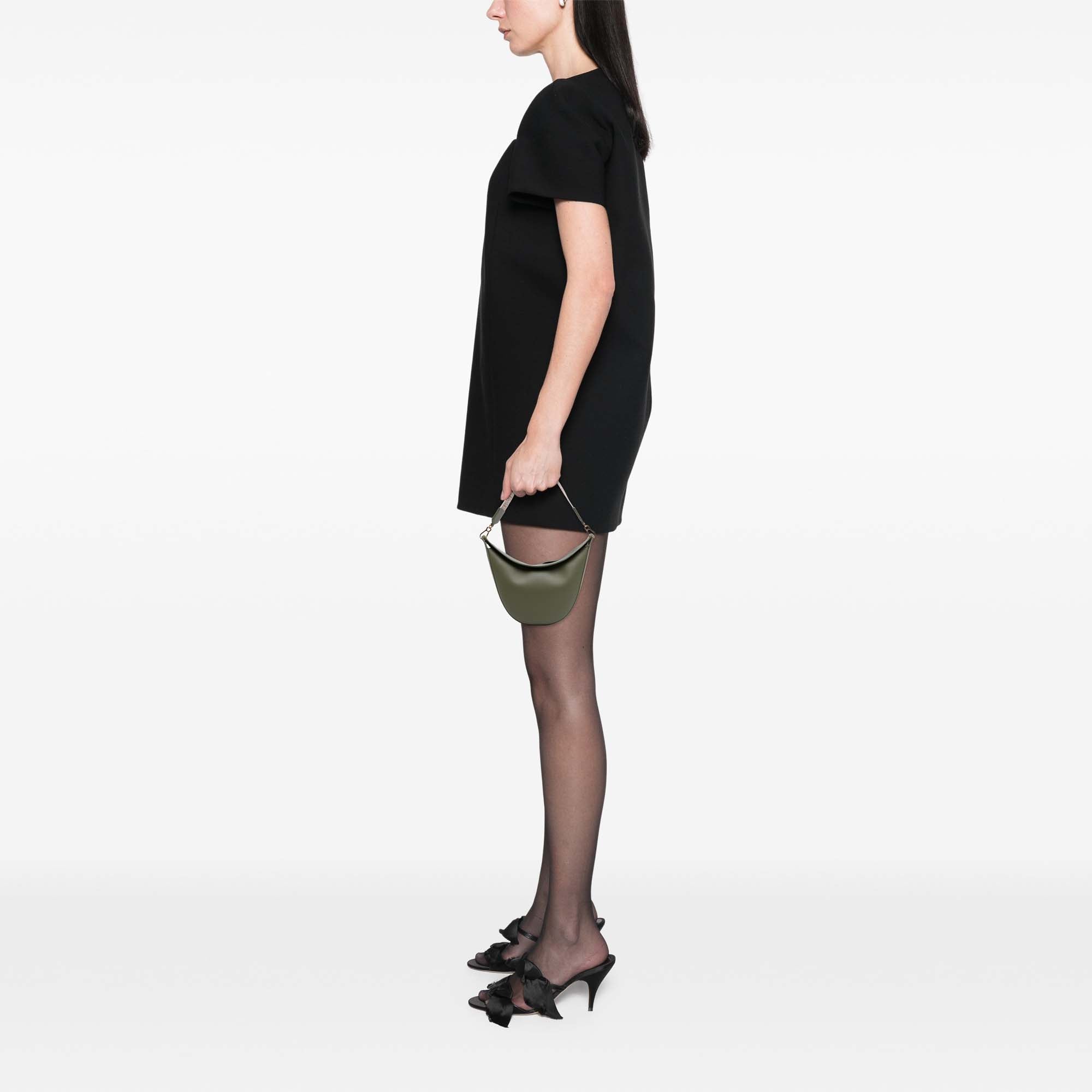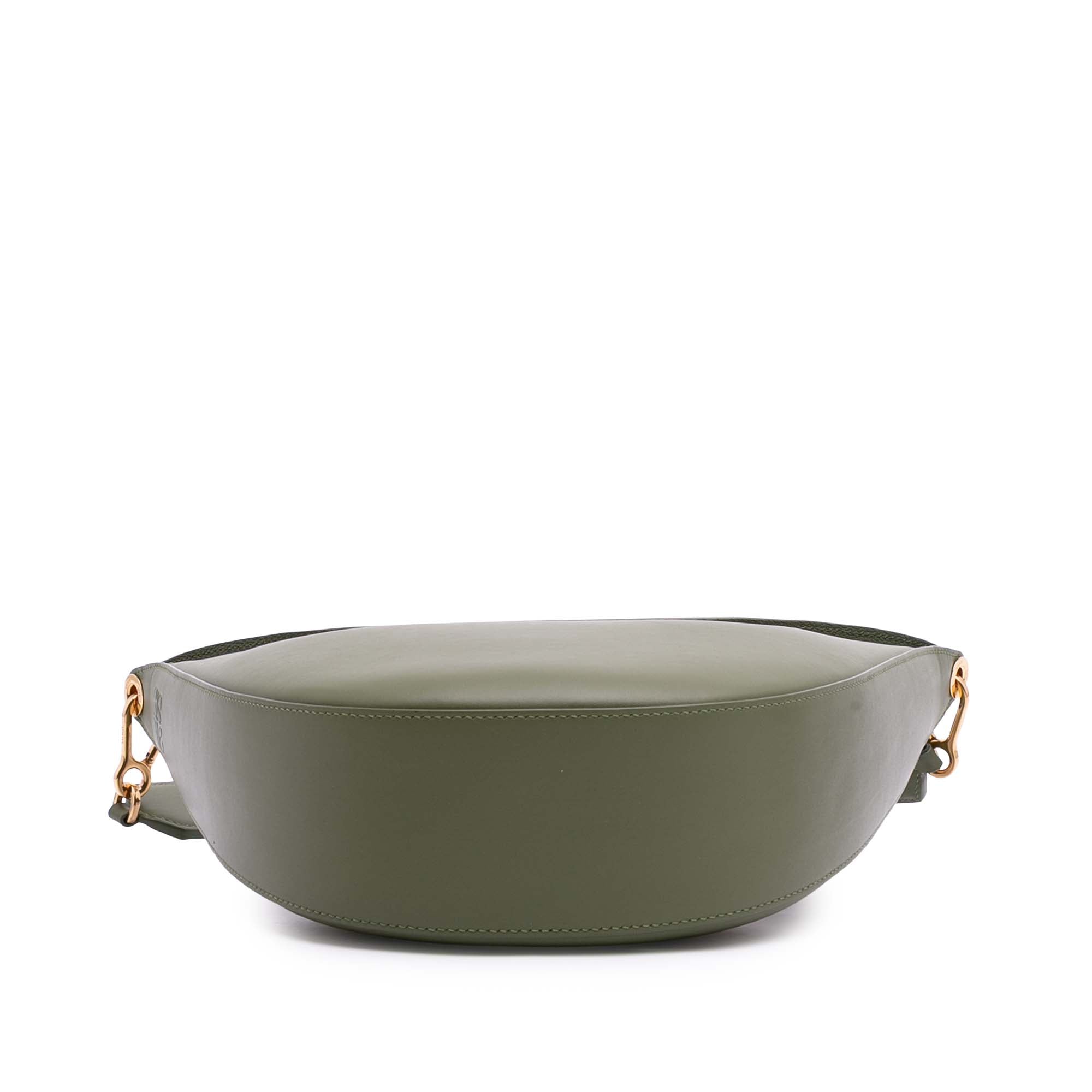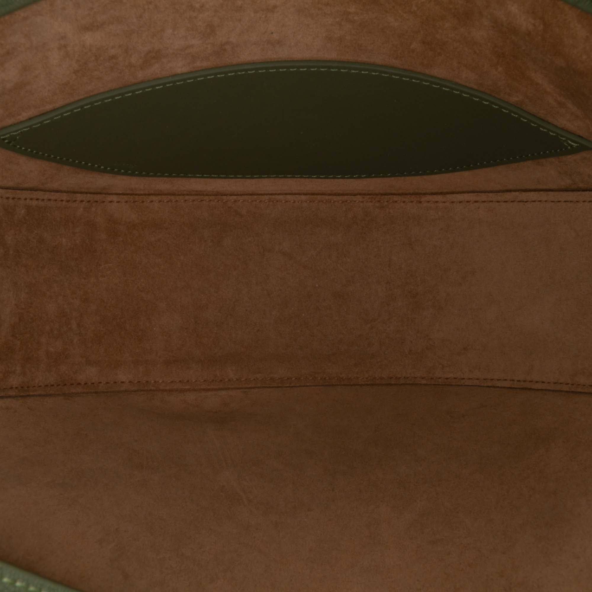 The Luna features a leather body, a detachable flat canvas strap, an open top with snap closure, and an interior slip pocket. Retail Price: 2100.00