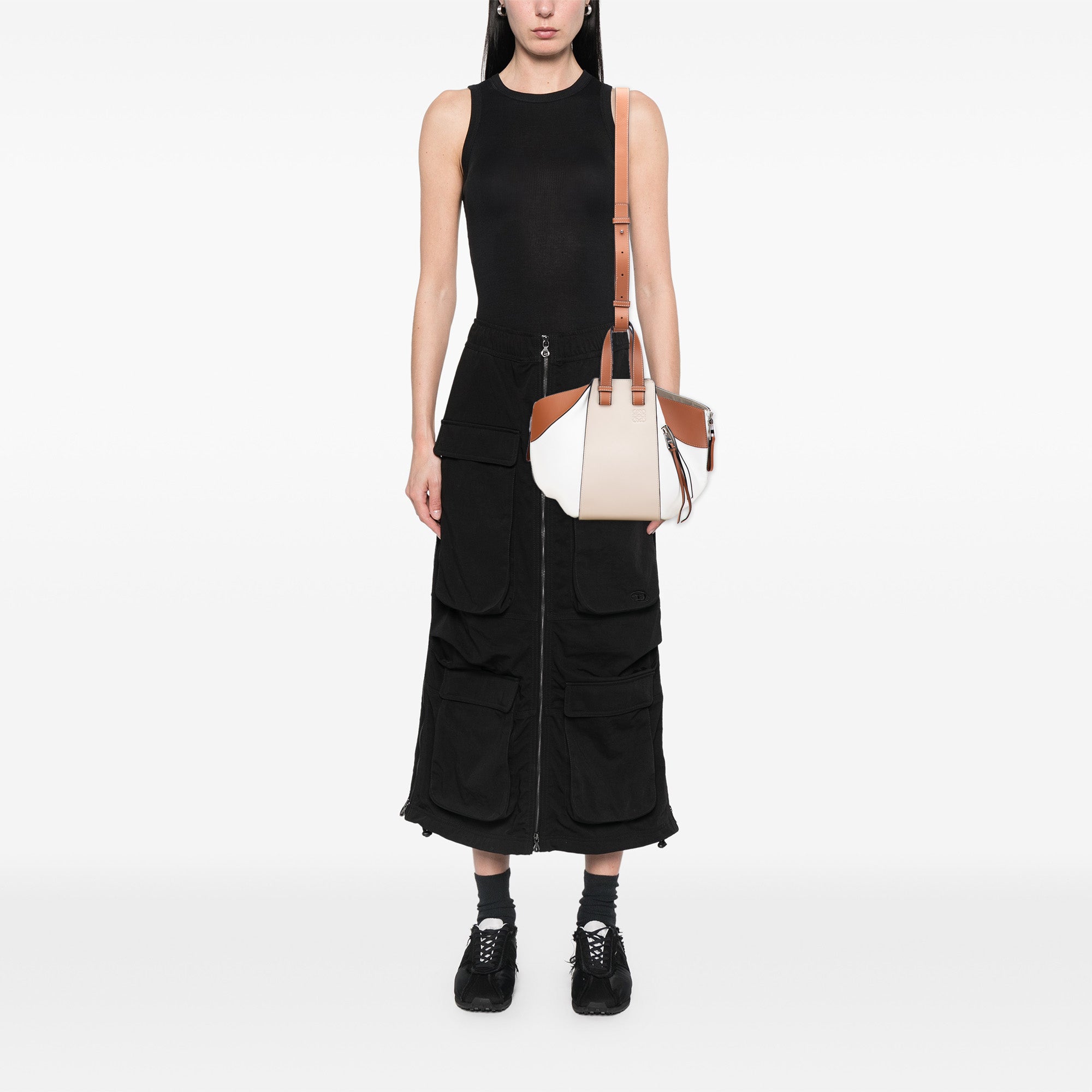 The Hammock features a leather body, flat leather top handles, a detachable and adjustable flat leather shoulder strap, an open top with lobster claw clasp closure, side zipper extenders, an exterior zip pocket, and interior slip pockets. Inclusion: Dust bag. Retail Price: 2650.00