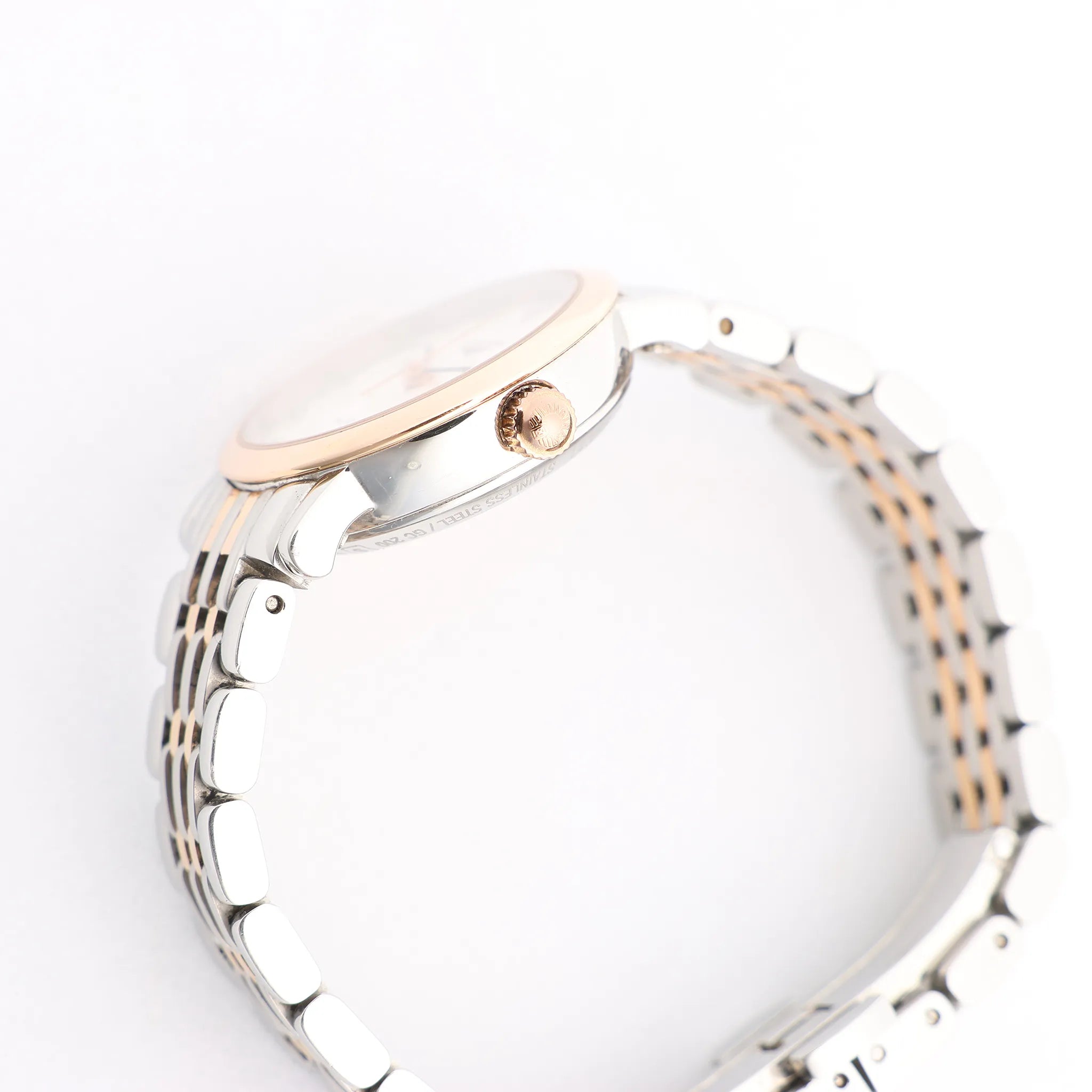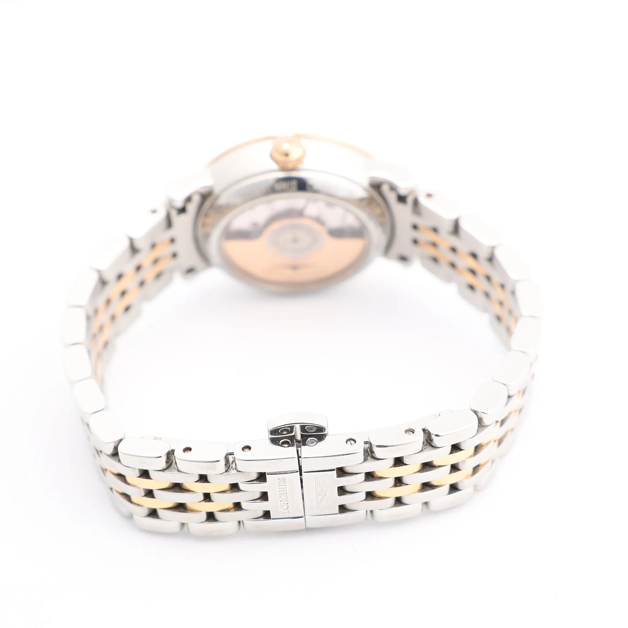 Brand: LonginesModel: ElegantReference: L4.309.5Serial No.: 44335825 Condition: Excellent Condition Details: Light signs of use, including subtle surface marks barely visible to the eye. Please see photos for the exact condition.Dial Colour: SilverCase Material: Stainless steel, Gold PlatedStarp Colour: Silver, GoldStrap material: Stainless steel, Gold PlatedMovement: AutomaticFace Diameter: 25 mm Approx. circumference: 19 cmComes With: Certificate, Service card, Extra links