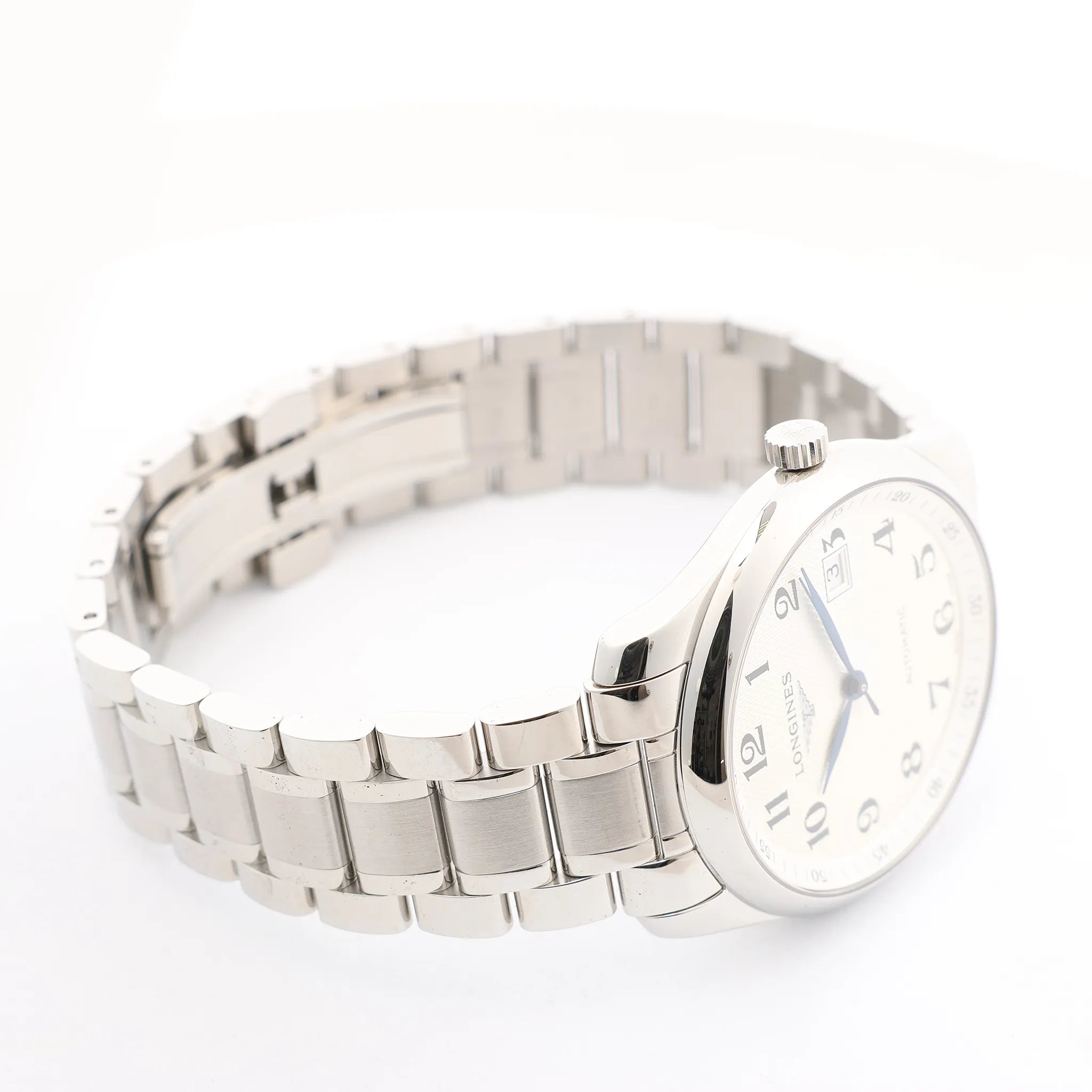 Brand: LonginesModel: Master CollectionReference: L2.793.4Serial No.: 48186073 Condition: Excellent Condition Details: Excellent overall condition with almost no visible signs of use. Barely noticeable hairline marks may be present, but they are not visible to the naked eye. Please see photos for details. Dial Colour: SilverCase Material: Stainless steel Starp Colour: SilverStrap material: Stainless steel Movement: AutomaticFace Diameter: 40 mm Approx. circumference: 21 cmComes With: Box (damaged inside), Brand booklet, service card