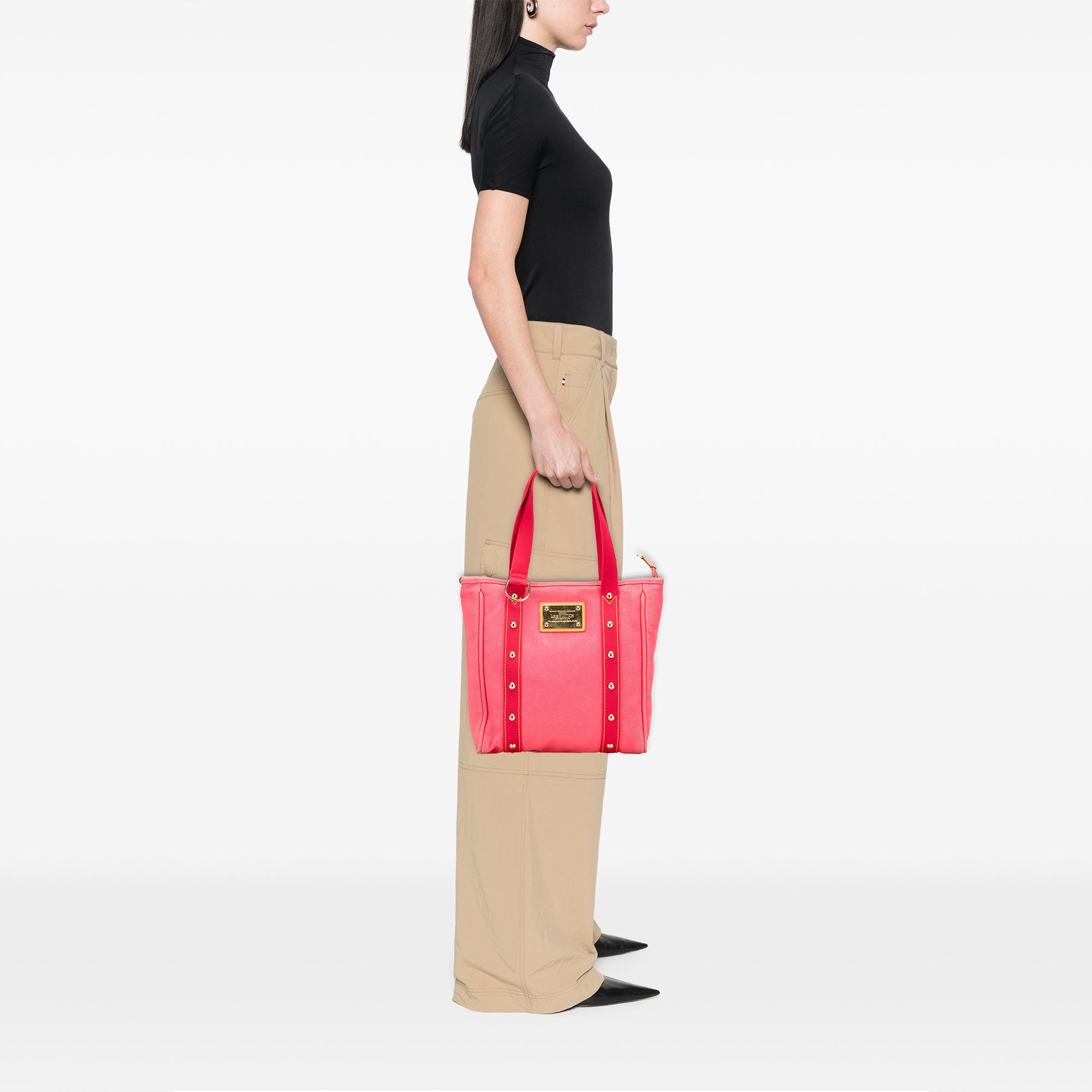 The Antigua Cabas MM features a canvas body, flat shoulder straps, a top zip closure, and an interior slip pocket. Retail Price: 620.00