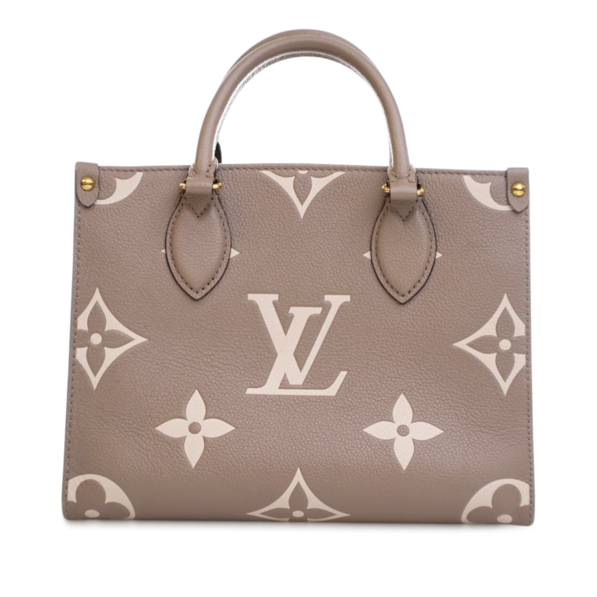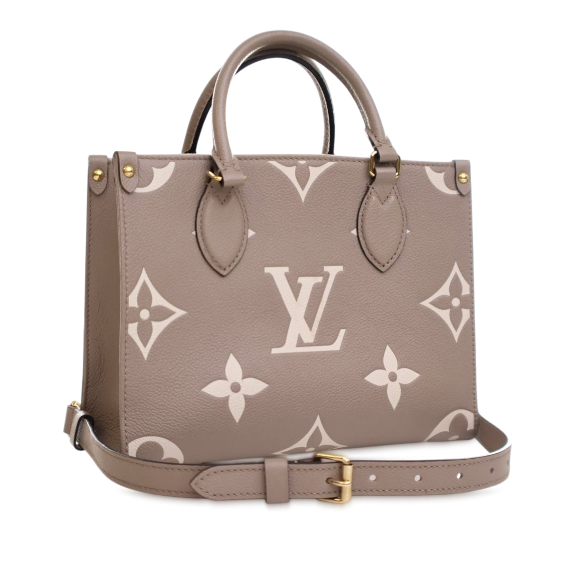 The OnTheGo features a monogram empreinte body, rolled handles, flat shoulder handles, a detachable flat strap, an open top with lobster clasp closure, and interior zip and slip pockets. Inclusion: Dust bag. Retail Price: 3220.00