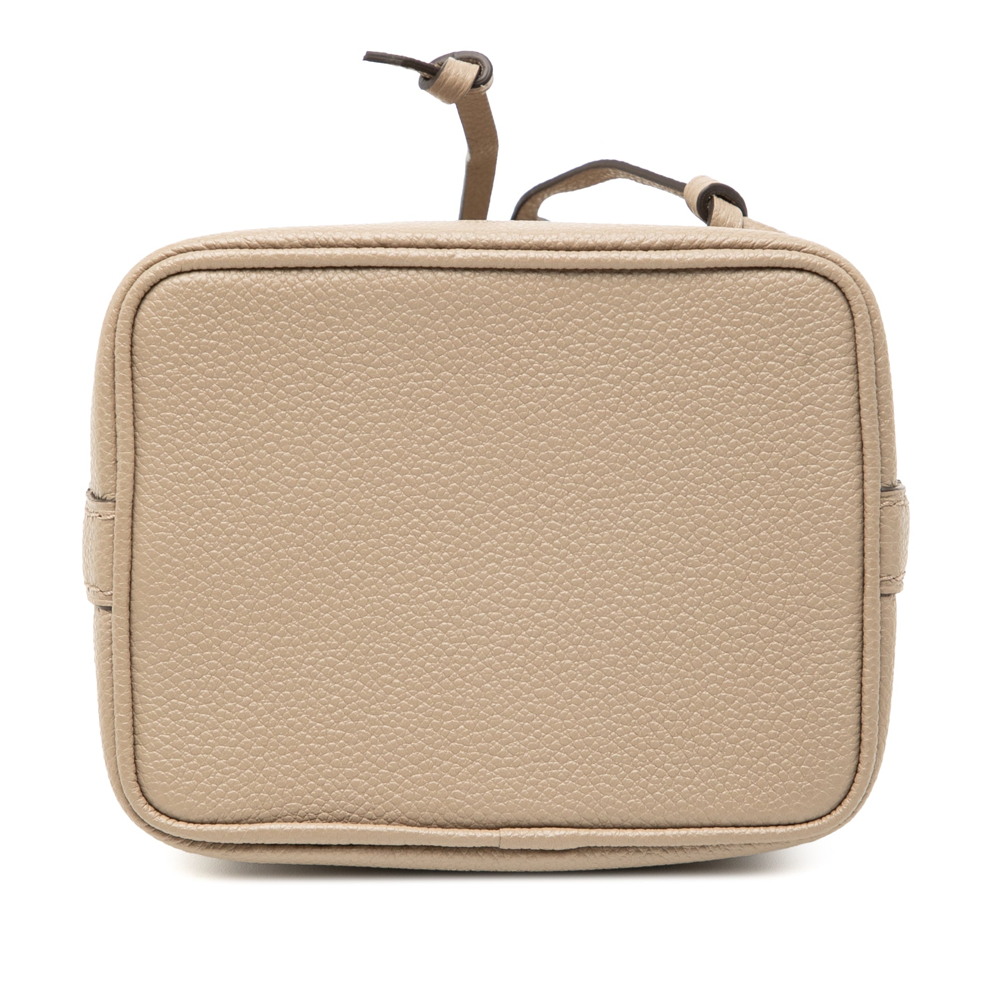 The Nano Noe features a monogram empreinte leather body, a flat leather top handle, a detachable flat leather shoulder strap, and an open top with a drawstring closure. Retail Price: 3100.00