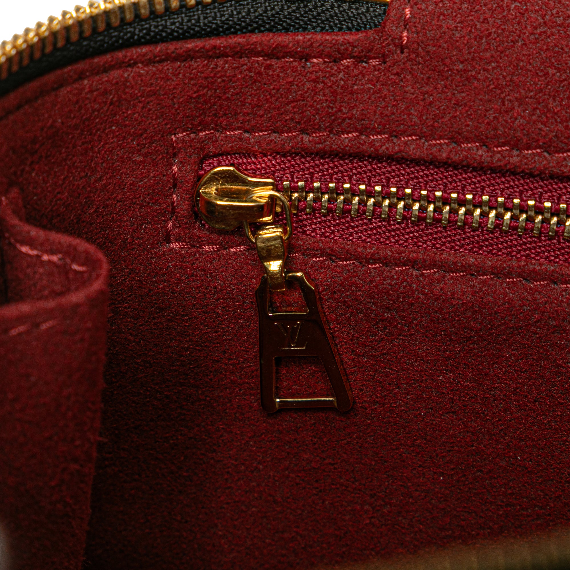 The Vanity PM features a monogram empreinte leather body, a flat top handle, a leather-woven chain strap with leather shoulder guard, a top zip-around closure, and interior zip and slip pockets. Inclusion: Dust bag, box. Retail Price: 3250.00