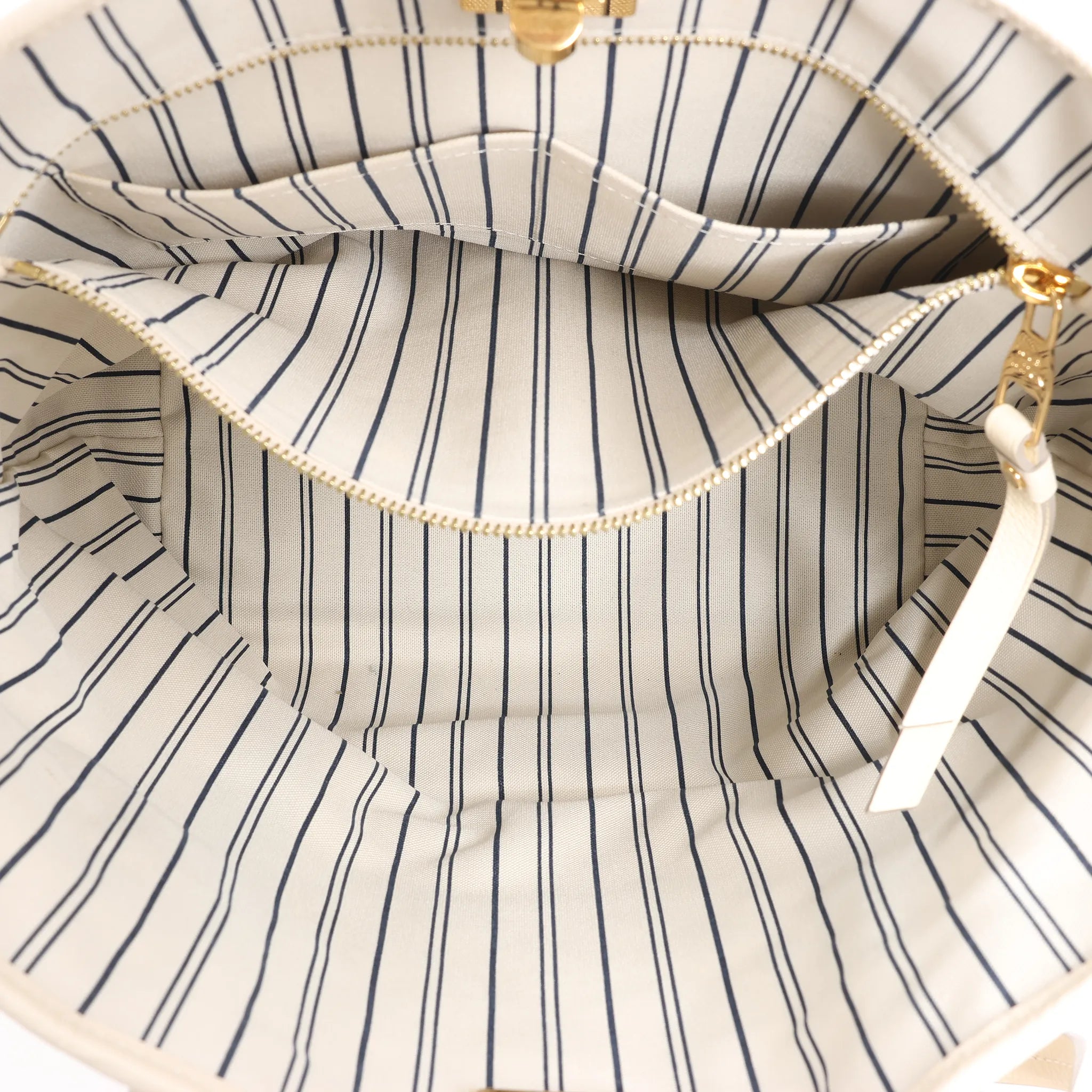 Brand: Louis Vuitton Model: CitadinSize: PMWidth: 27 cmHeight: 32.5 cmExterior Condition: ExcellentInterior Condition: ExcellentCondition Details: The exterior is clean and beautiful in excellent condition. The handles are in great condition. The hardware is bright and crisp, but has hairline scratches. The interior is inexcellent condition. Top width is 37.5 cm. The date code is CA0152.Colour: BeigeInterior Colour: BeigeHardware Colour: GoldMaterial: LeatherComes With: Dustbag, brand paper