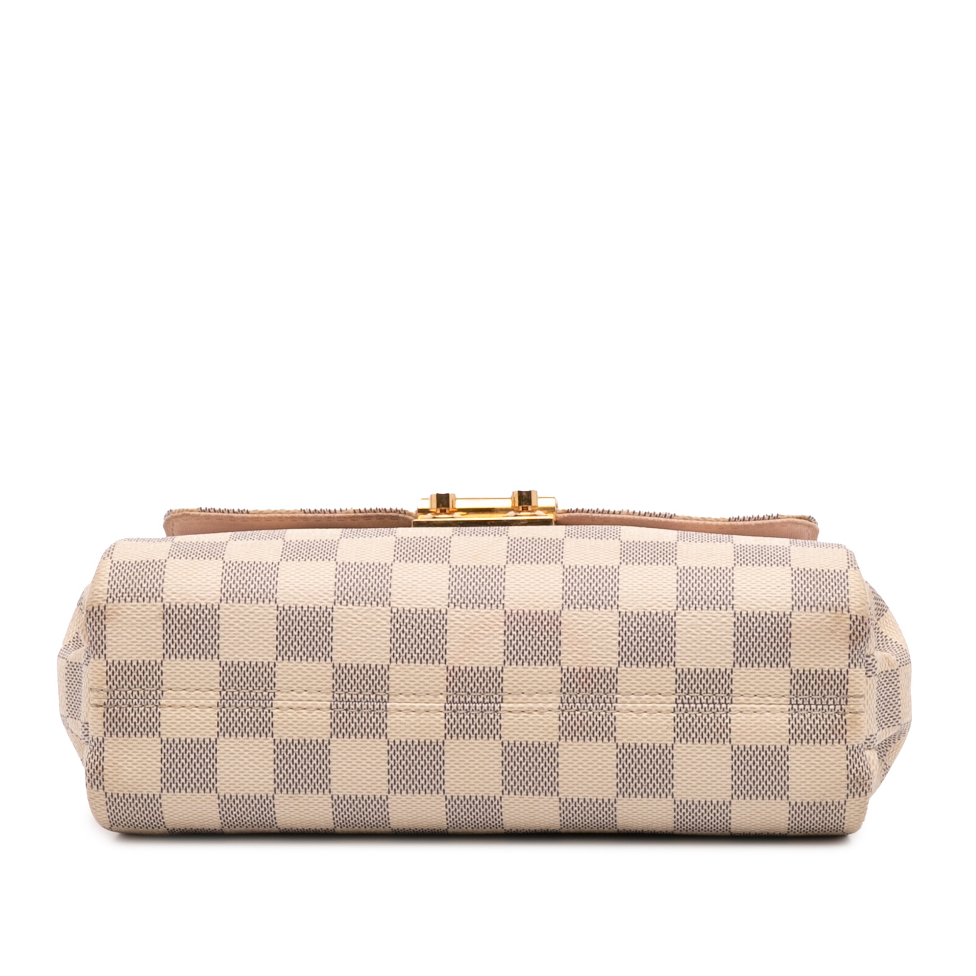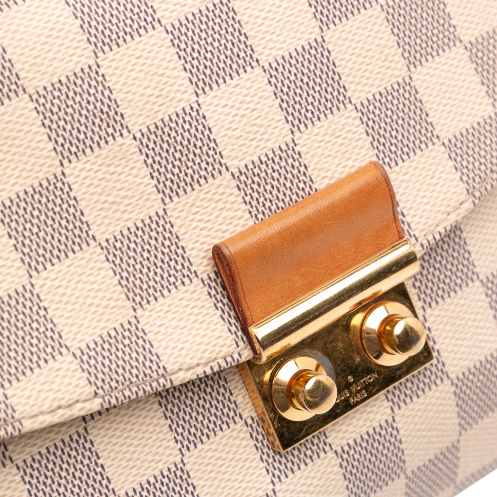 The Croisette features a damier canvas body with vachetta leather trim, a leather tassel detail, a flat vachetta leather top handle, a detachable flat vachetta leather strap, a front flap with a gold-tone push-lock closure, and an interior slip pocket. Retail Price: 1960.00