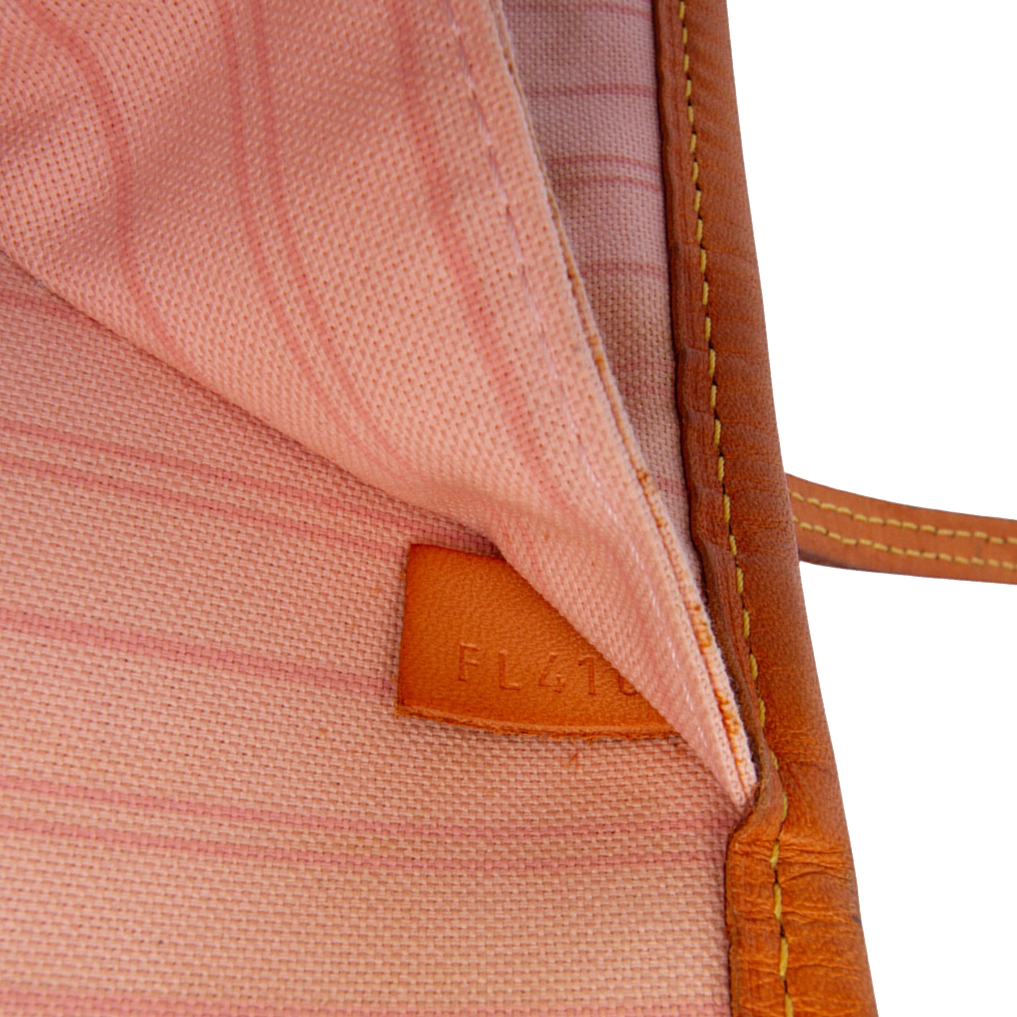 The Neverfull MM features a damier azur canvas body with vachetta leather trim, flat vachetta leather handles, an open top with a lobster clasp closure, and an interior zip pocket. Retail Price: 1963.00
