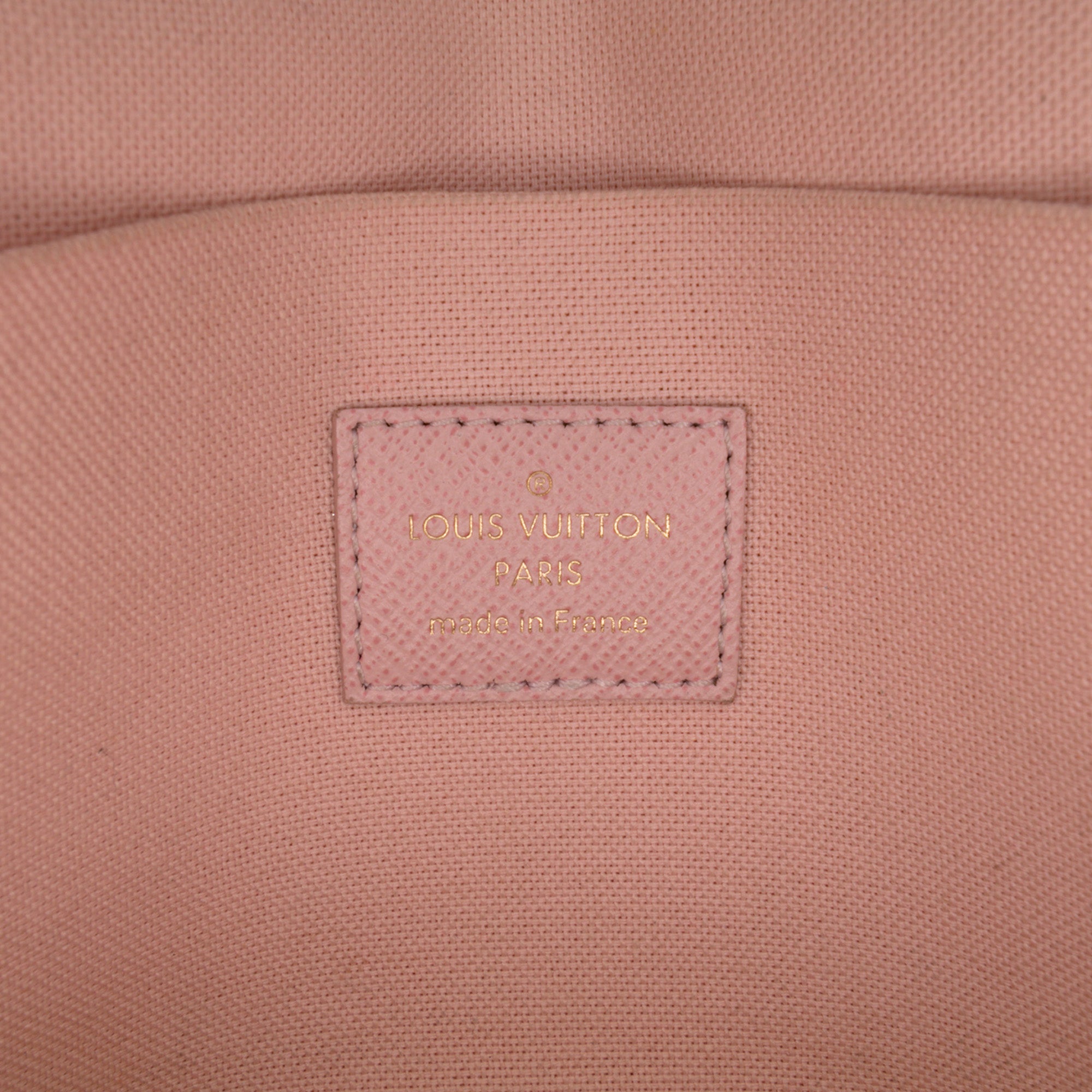The Pochette Felicie crossbody bag features a damier azur canvas body, a detachable chain link shoulder strap, a front flap with a snap button closure, pouch inclusions, and an interior slip pocket. Retail Price: 2145.00