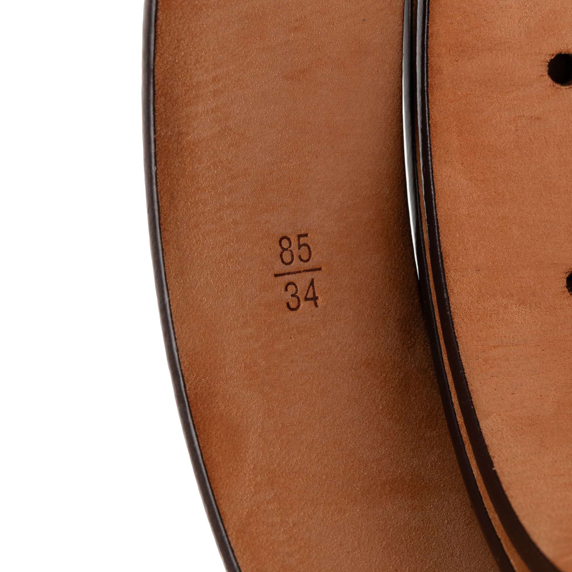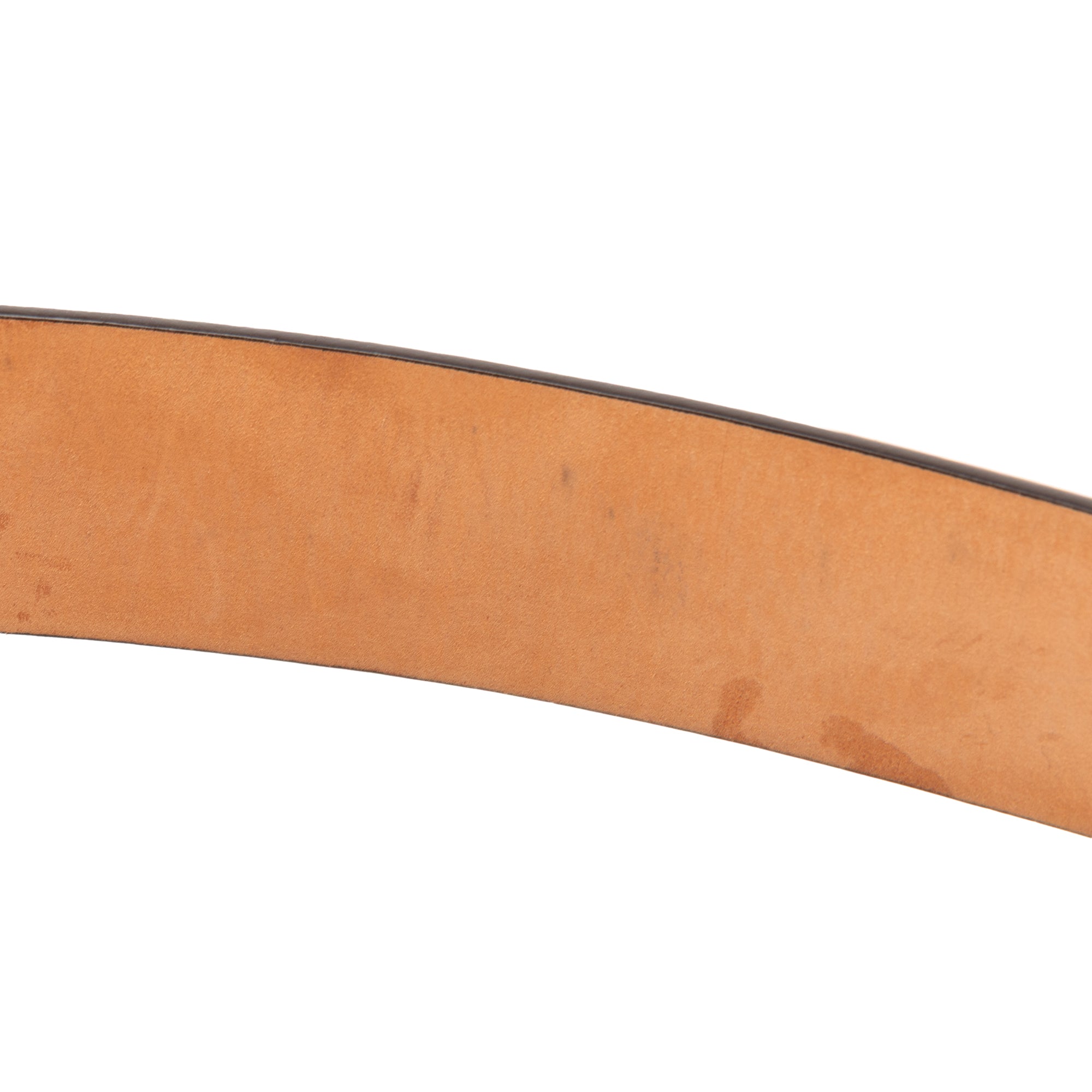 This belt features a leather body with a damier ebene canvas body and a brass buckle with peg-in hole closure. Inclusion: box. Retail Price: 575.00
