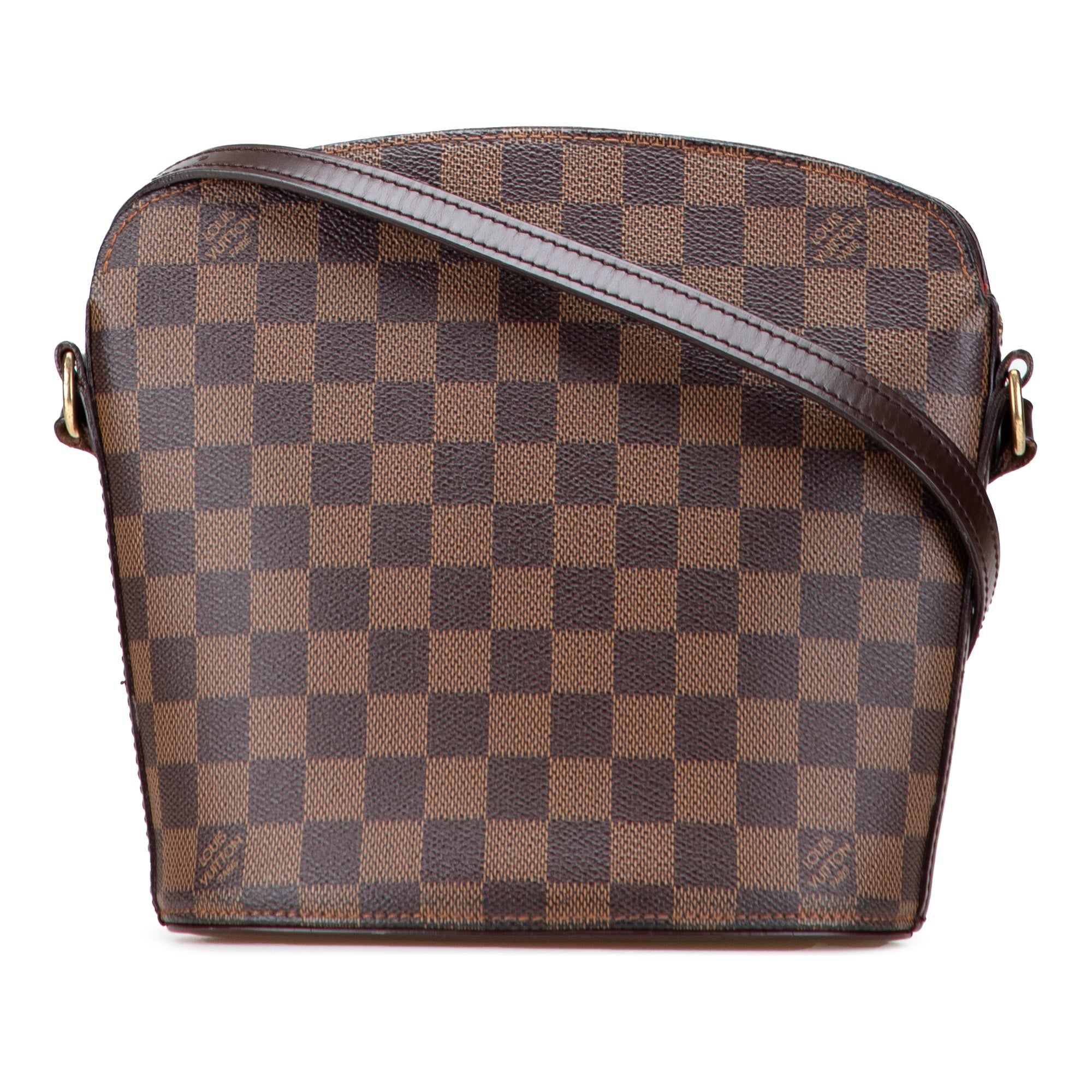 The Drouot features a damier canvas body, an adjustable leather shoulder strap, a top zip closure, and an interior slip pocket. Retail Price: 1075.00