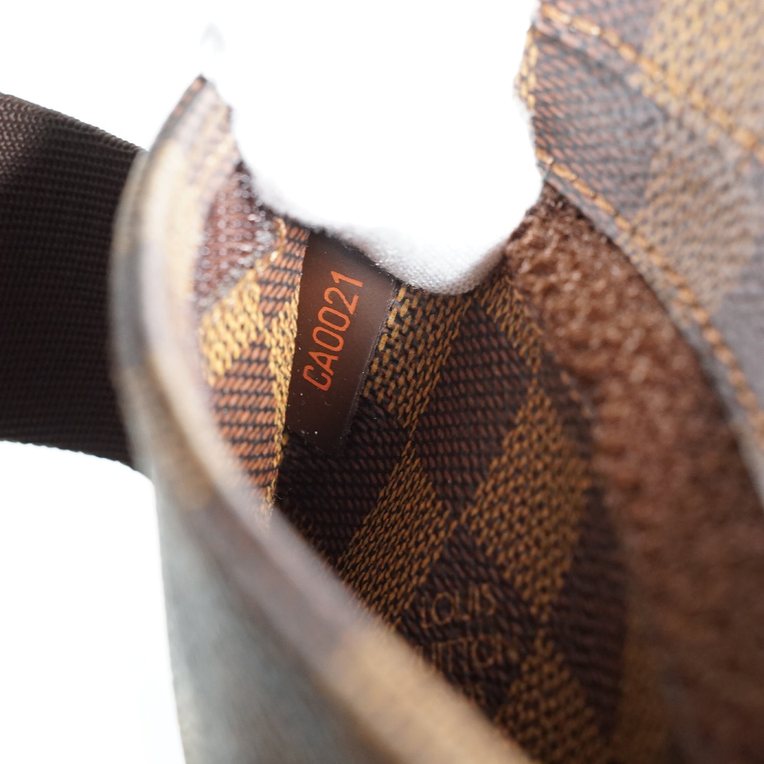 Damier Ebene Geronimos Brown Canvas, LeatherDepth: 5cmHeight: 12.5cmWidth: 20cmWidth at Top: 40cmDiscoloration: Some hardware tarnishScratch: Some scratches on the hardwareInclude: Dust bagSerial code: CA0021