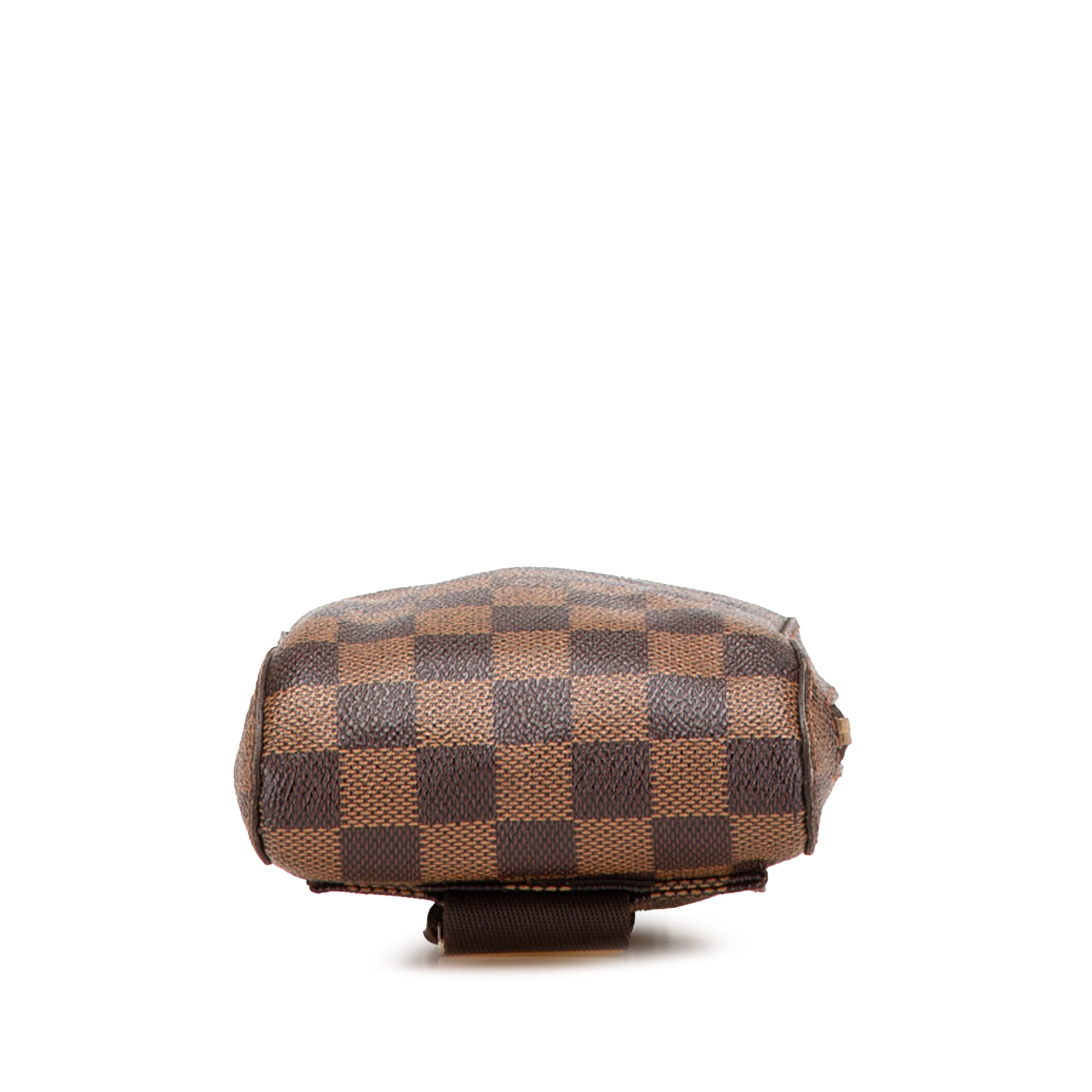 The Geronimos features a damier canvas body, an adjustable flat strap, and dual top zip closure. Retail Price: 1650.00